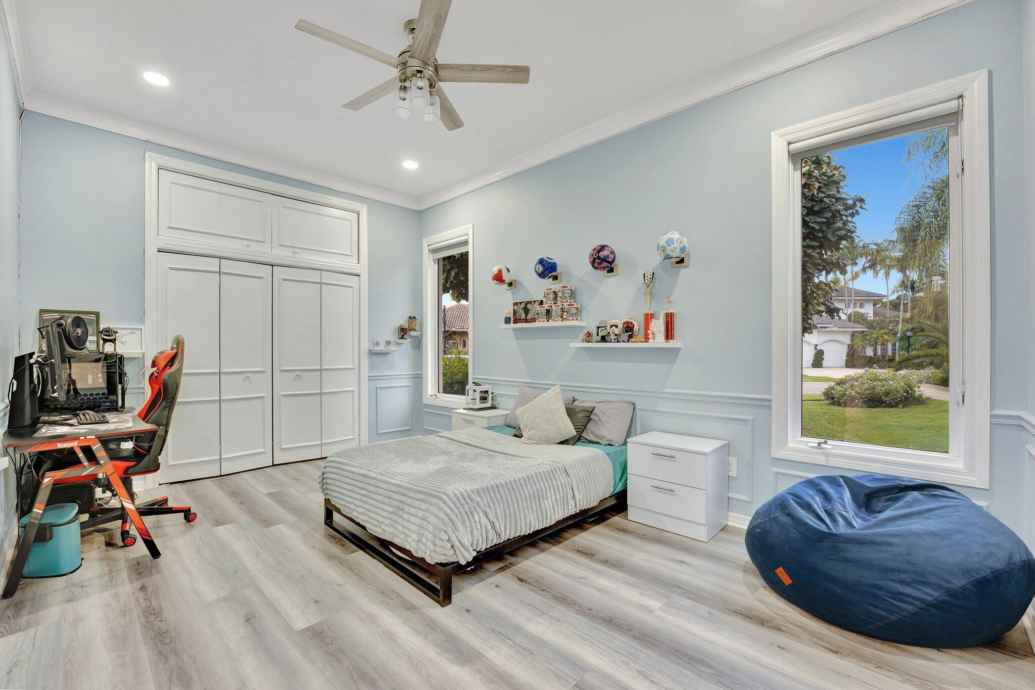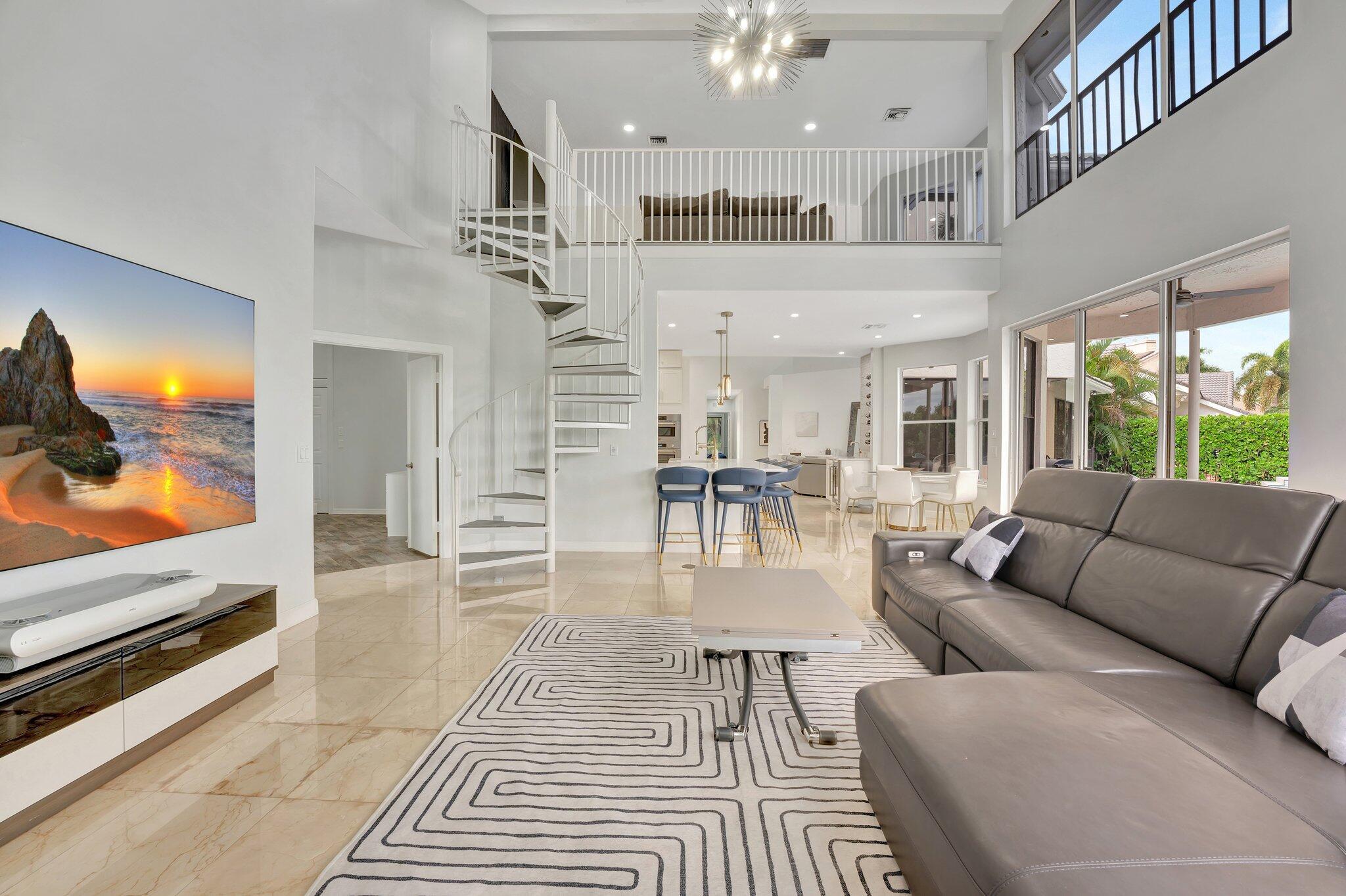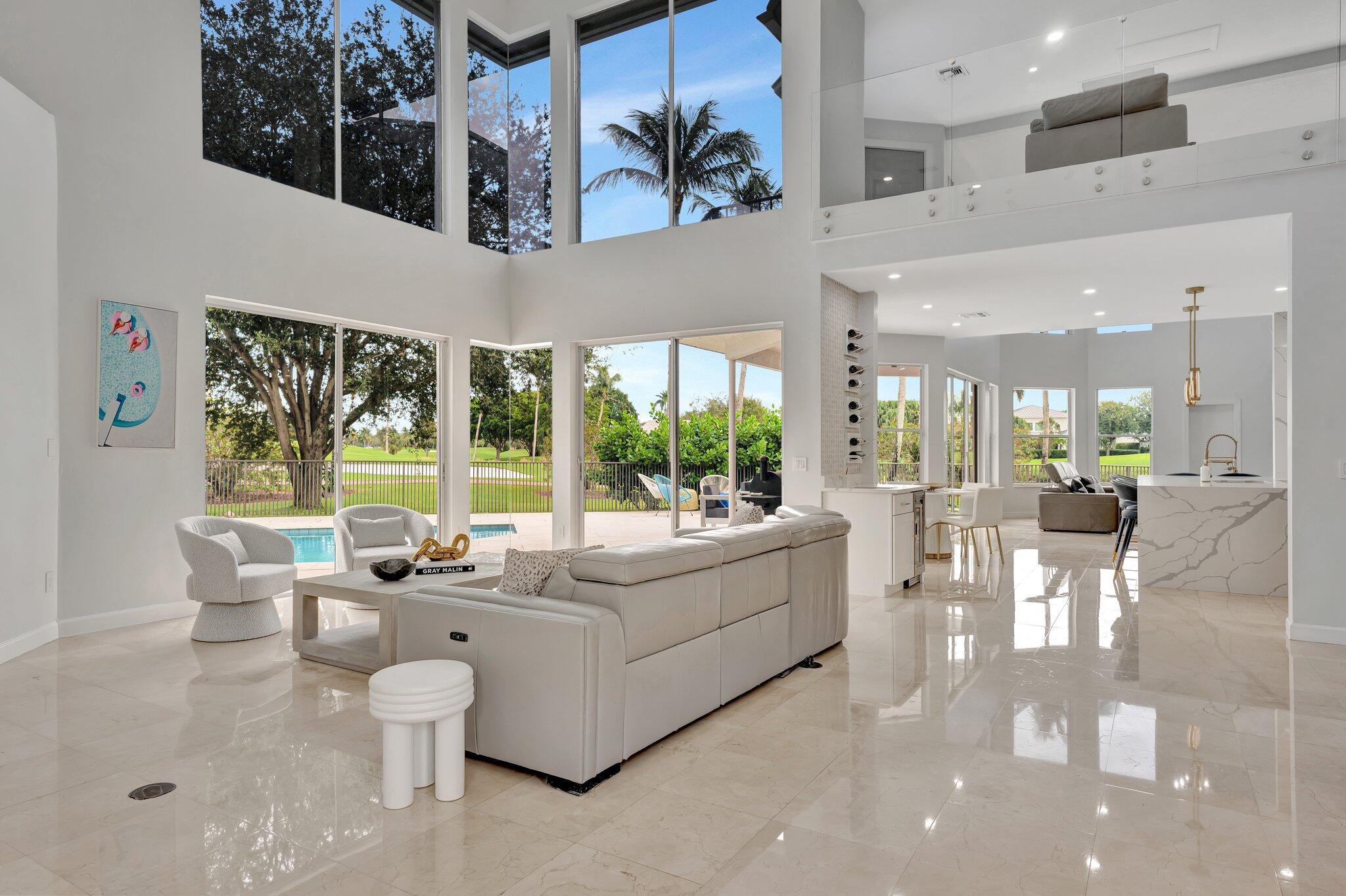Luxury living in this magnificent gem nestled in the prestigious Boca Grove community! This rarely available beauty features a stunning renovated modern kitchen with beautiful waterfall quartz counter, perfect for your culinary enthusiasts. With 4 Br 5 Bth plus additional office/gym and amazing loft, this gorgeous home offers plenty of space for relaxation and entertainment. The beautiful vaulted ceilings create an airy ambiance, while large windows overlook your stunning outdoor pool and serene golf course. Boca Grove is renowned as a prestigious, members only golf, and country club. This is a must see property that combines elegance and comfort in an exclusive setting. Don't miss your chance to own this exceptional home!