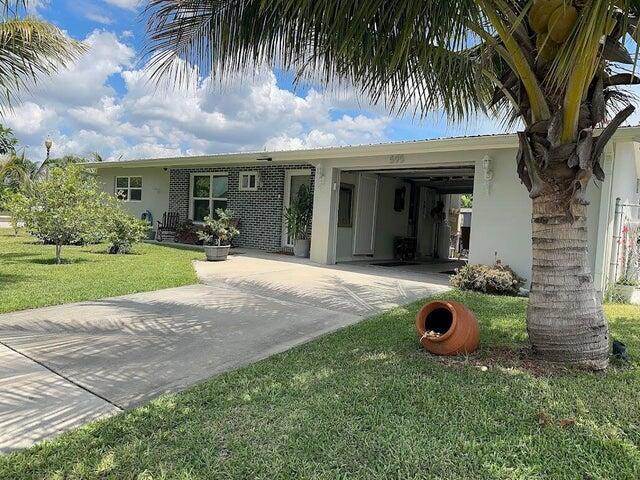 M:r clean live here. CBS home on a corner private lot with driveway on side street. Tile flooring throughout. Florida room leads to privacy fenced yard. Garage features front and rear doors. Impact windows, metal roof, a lots of fruit tress, well water sprinklers, workshop, bring your toys, utility room ,water softener and more ,do not miss this opportunity