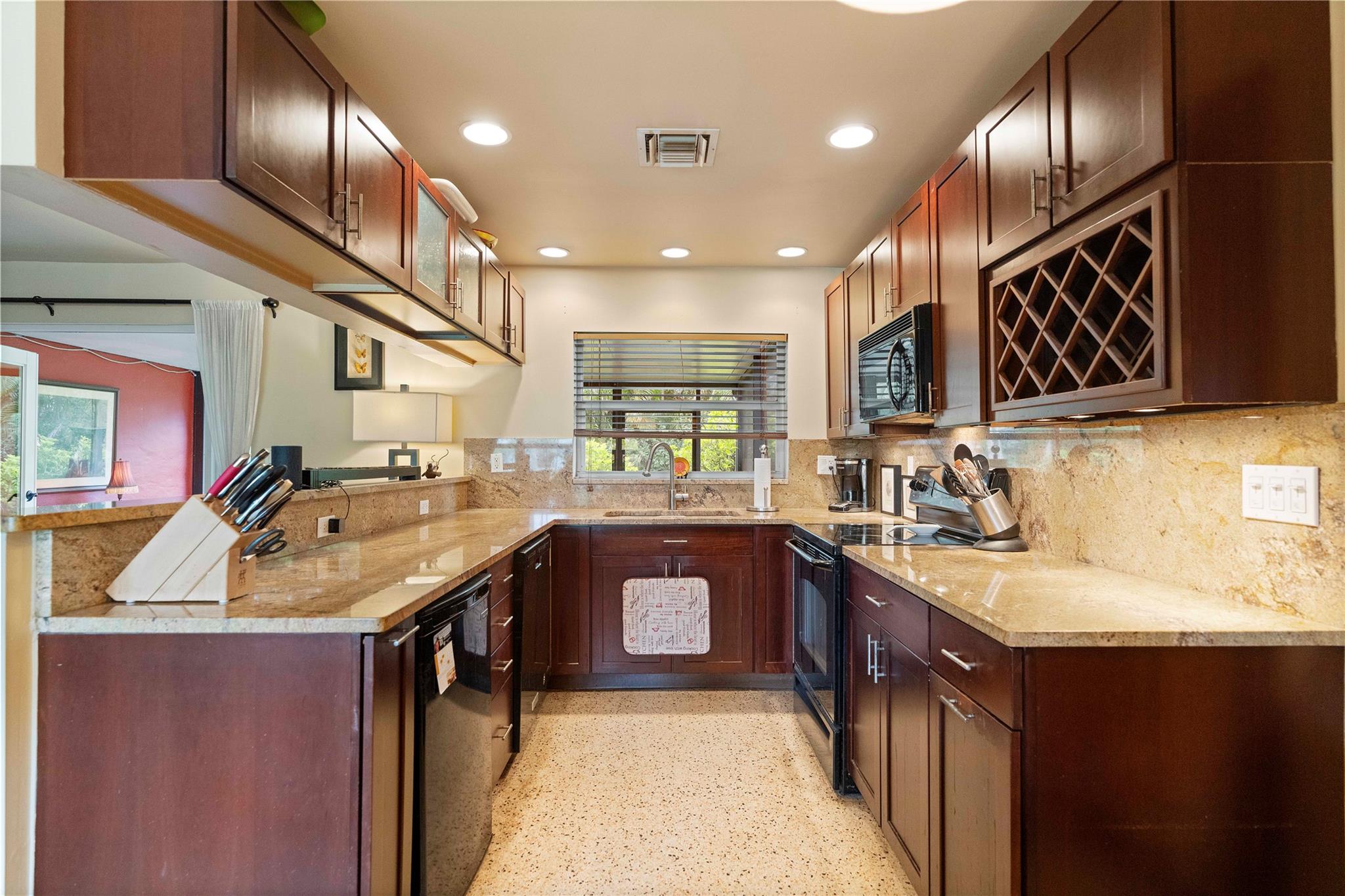 This spacious 2-bedroom, 2-bath home features a large open floor plan with terrazzo flooring throughout. The modern "U-shaped" kitchen offers ample counter space, perfect for cooking and entertaining. Enjoy the huge screened porch and a fully fenced backyard ideal for pets or relaxation. Additional highlights include impact windows, a carport with a washer and dryer, and plenty of storage space. This home combines comfort, style, and practicality, making it a must-see. 10 minutes to Downtown Las/Olas, 15 Minutes to Airport, Hardrock Resort, Universities! RV/ Boat Parking allowed, Launch your boat 3 minutes away on New River. Walk to schools & 3 parks! Schedule a tour today!