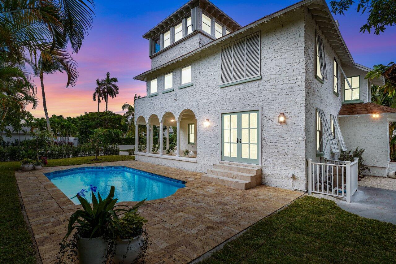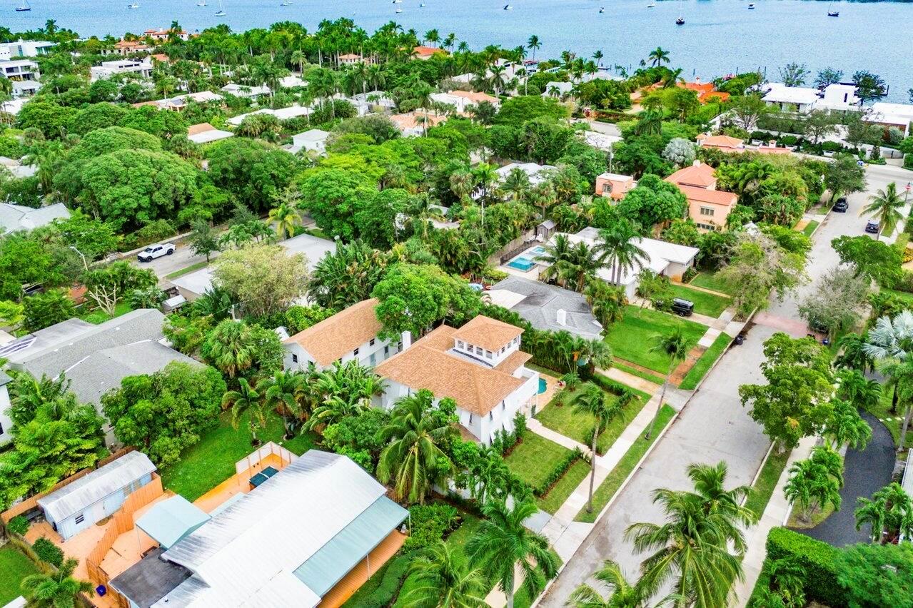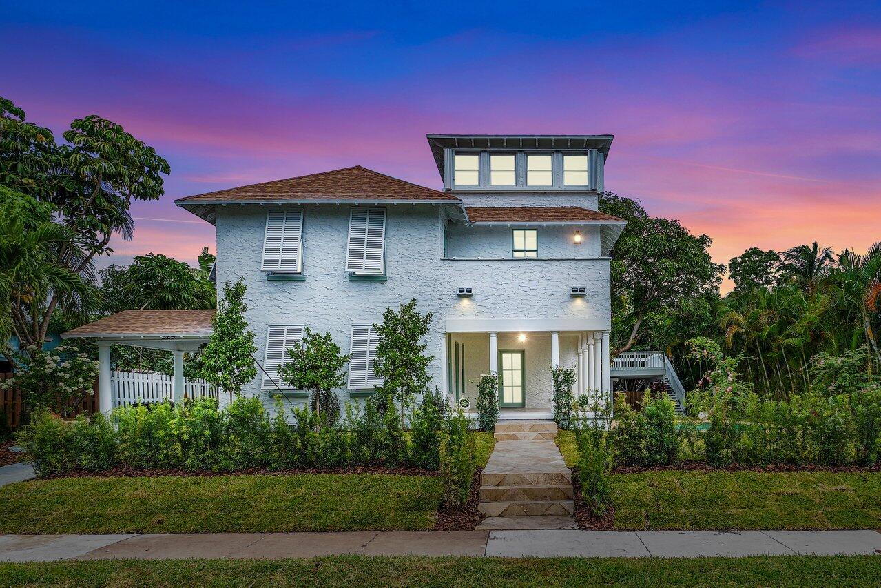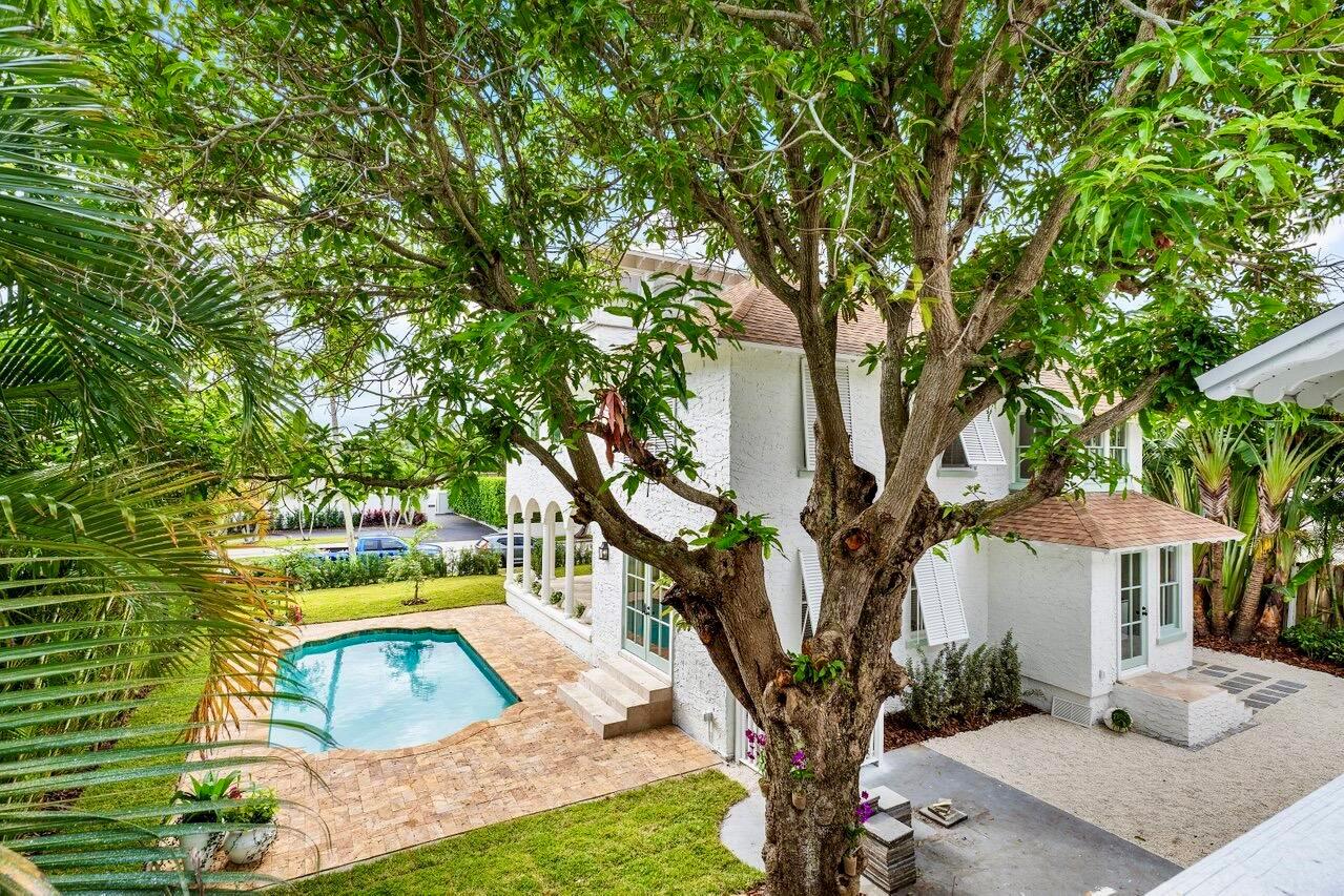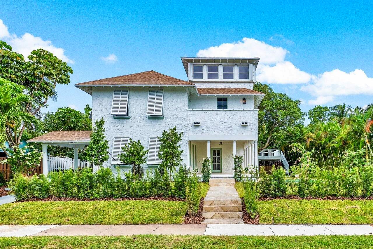Charming Mediterranean influenced home situated on a high lot just off Flagler Drive in Northwood Shores. The 3-story main house built in 1917, features 3 bedrooms, 2 1/2 bath with expansive views of the intracoastal from the 3rd floor tower room. Original wood floors, 2022 roof and 2015 pool. There is an auxiliary 2-story building located in the back of the main house built in 1926 with 2 apartments, additional storage and laundry room. First floor unit is a fully equipped studio apartment and top floor unit is a 2 bedroom, 1 bathroom with approx. 760SF of living space and a 323SF deck. New landscaping, sod and irrigation system installed. Few blocks to Northwood Village and short drive to Palm Beach Island, Downtown West Palm Beach and PBIA.