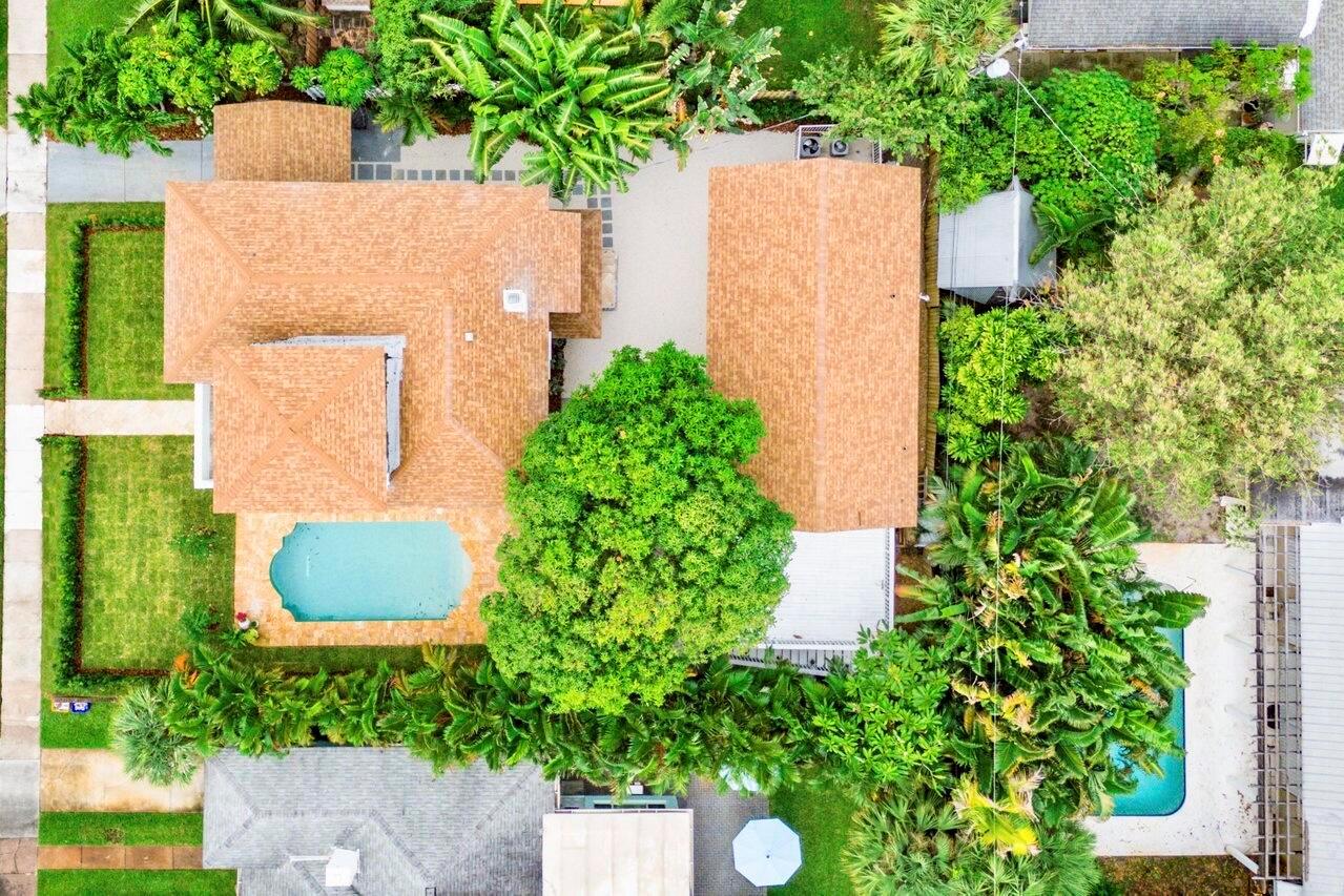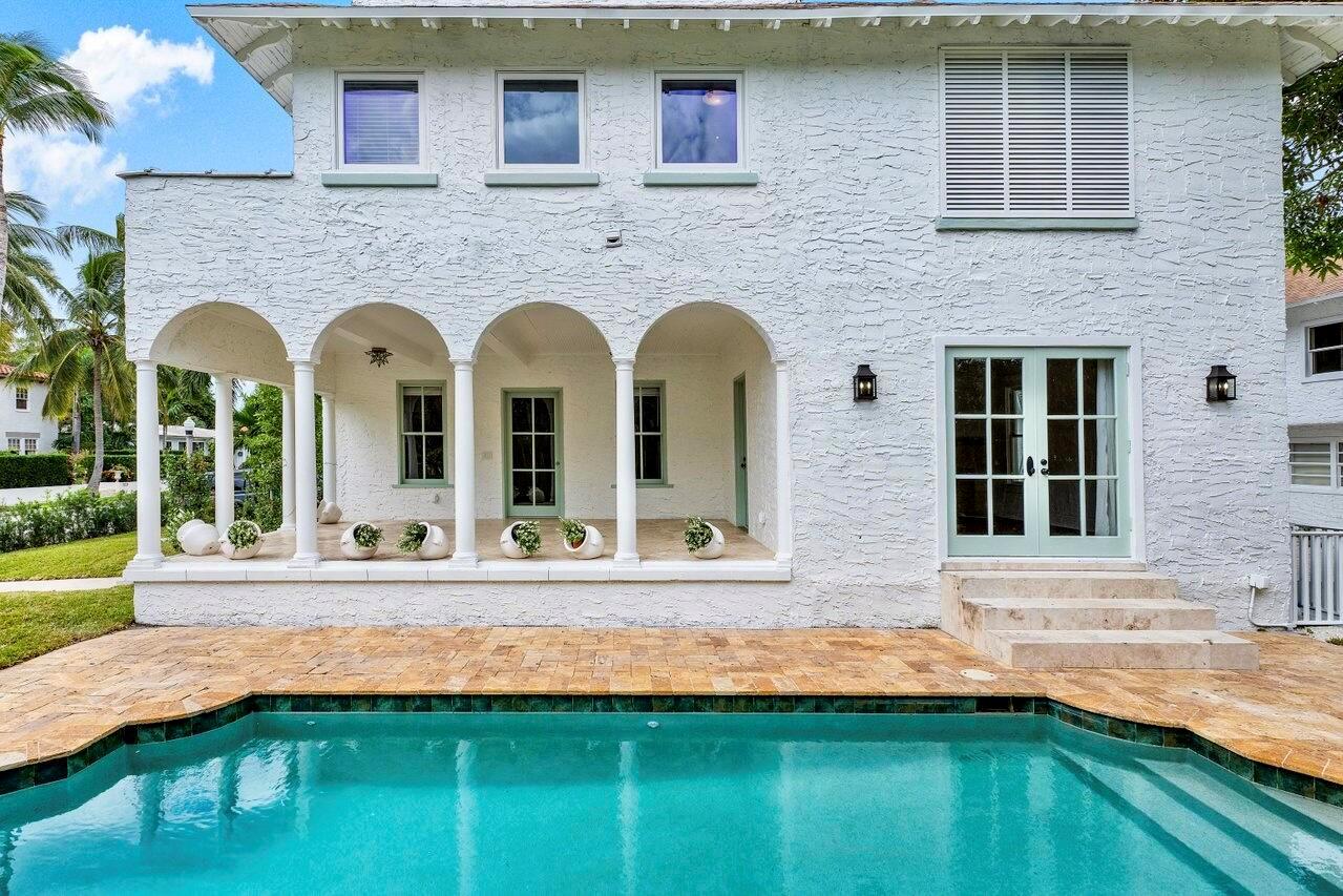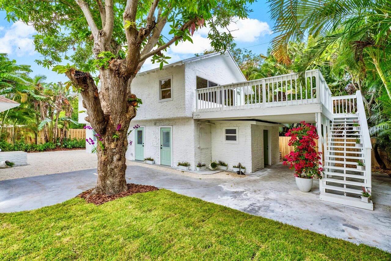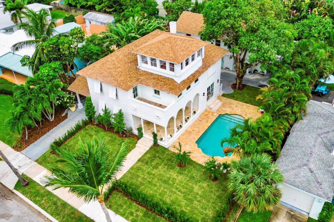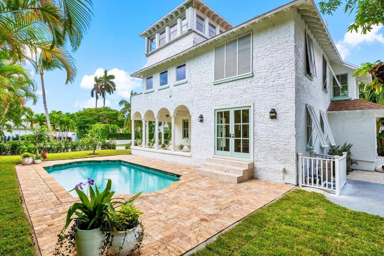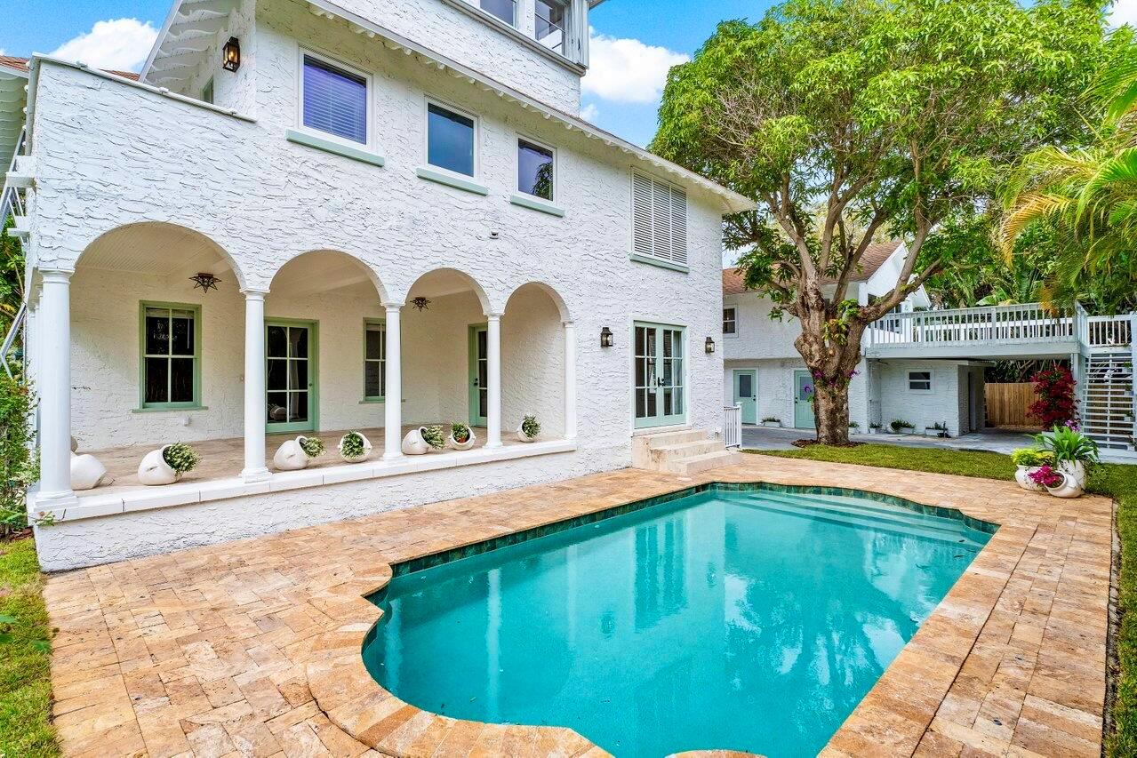 Charming Mediterranean influenced home situated on a high lot just off Flagler Drive in Northwood Shores. The 3-story main house built in 1917, features 3 bedrooms, 2 1/2 bath with expansive views of the intracoastal from the 3rd floor tower room. Original wood floors, 2022 roof and 2015 pool. There is an auxiliary 2-story building located in the back of the main house built in 1926 with 2 apartments, additional storage and laundry room. First floor unit is a fully equipped studio apartment and top floor unit is a 2 bedroom, 1 bathroom with approx. 760SF of living space and a 323SF deck. New landscaping, sod and irrigation system installed. Few blocks to Northwood Village and short drive to Palm Beach Island, Downtown West Palm Beach and PBIA.