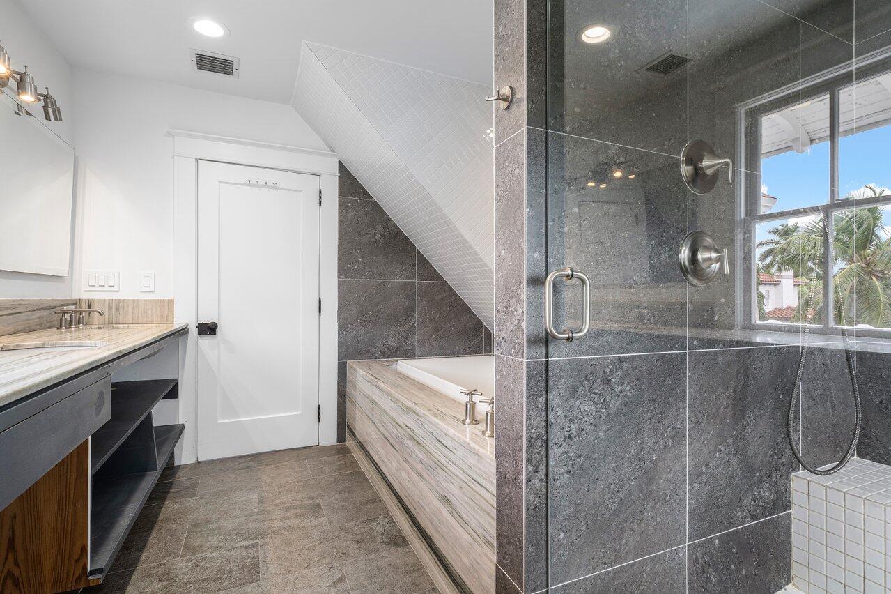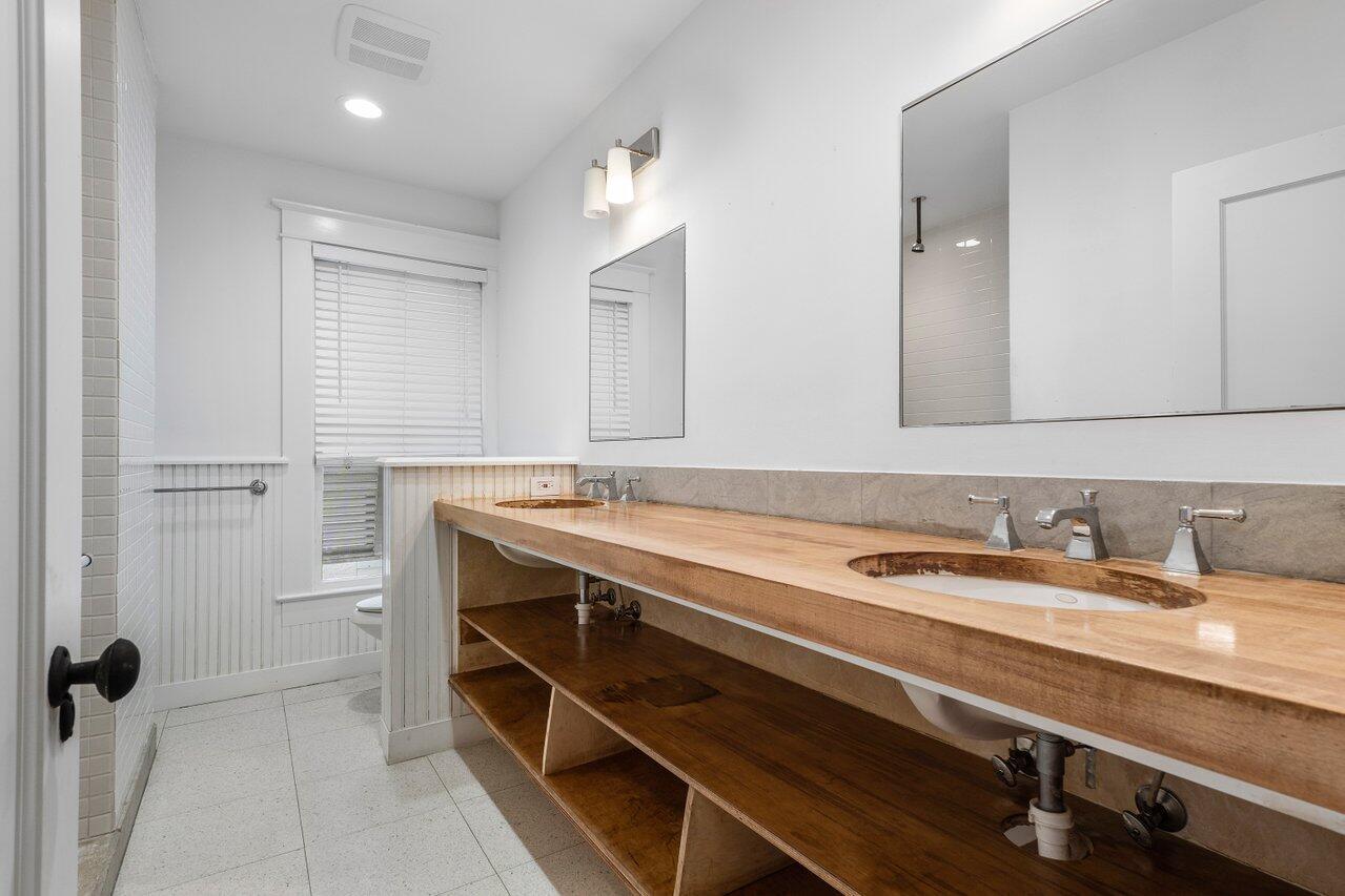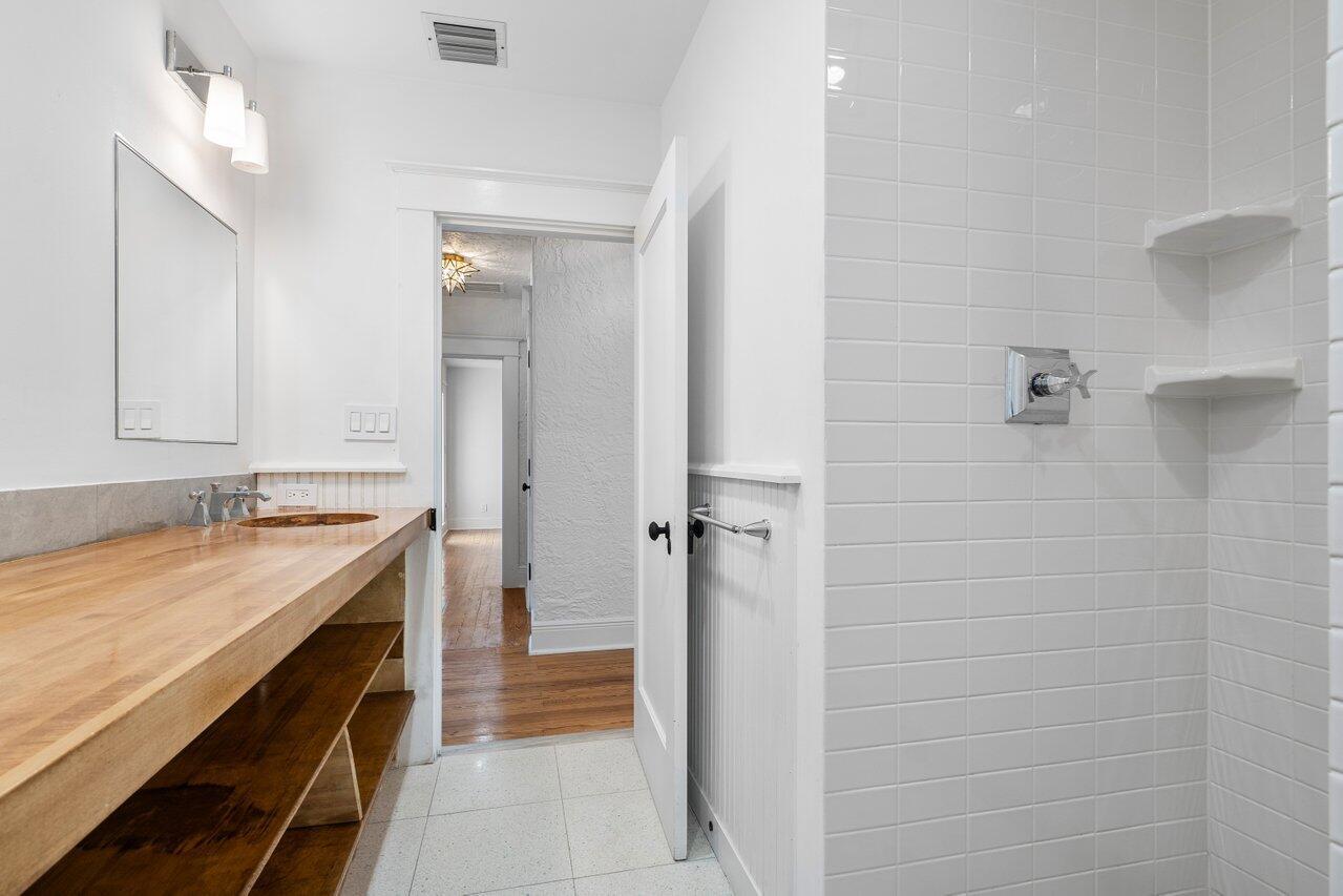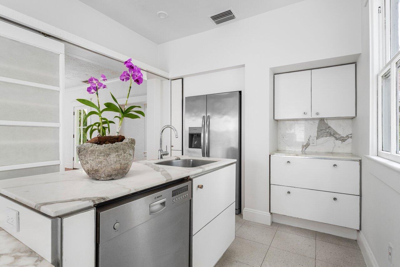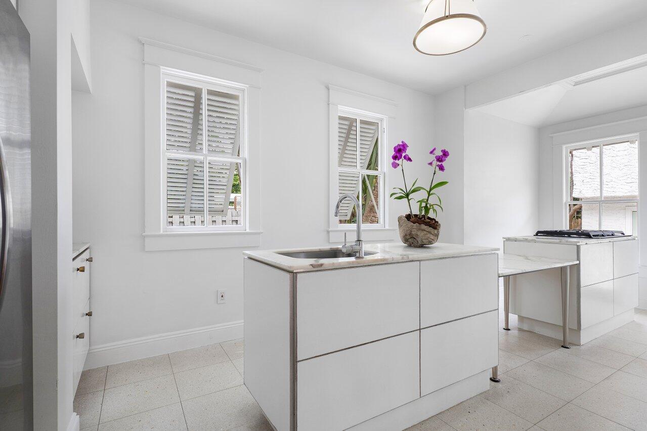Charming Mediterranean influenced home situated on a high lot just off Flagler Drive in Northwood Shores. The 3-story main house built in 1917, features 3 bedrooms, 2 1/2 bath with expansive views of the intracoastal from the 3rd floor tower room. Original wood floors, 2022 roof and 2015 pool. There is an auxiliary 2-story building located in the back of the main house built in 1926 with 2 apartments, additional storage and laundry room. First floor unit is a fully equipped studio apartment and top floor unit is a 2 bedroom, 1 bathroom with approx. 760SF of living space and a 323SF deck. New landscaping, sod and irrigation system installed. Few blocks to Northwood Village and short drive to Palm Beach Island, Downtown West Palm Beach and PBIA.