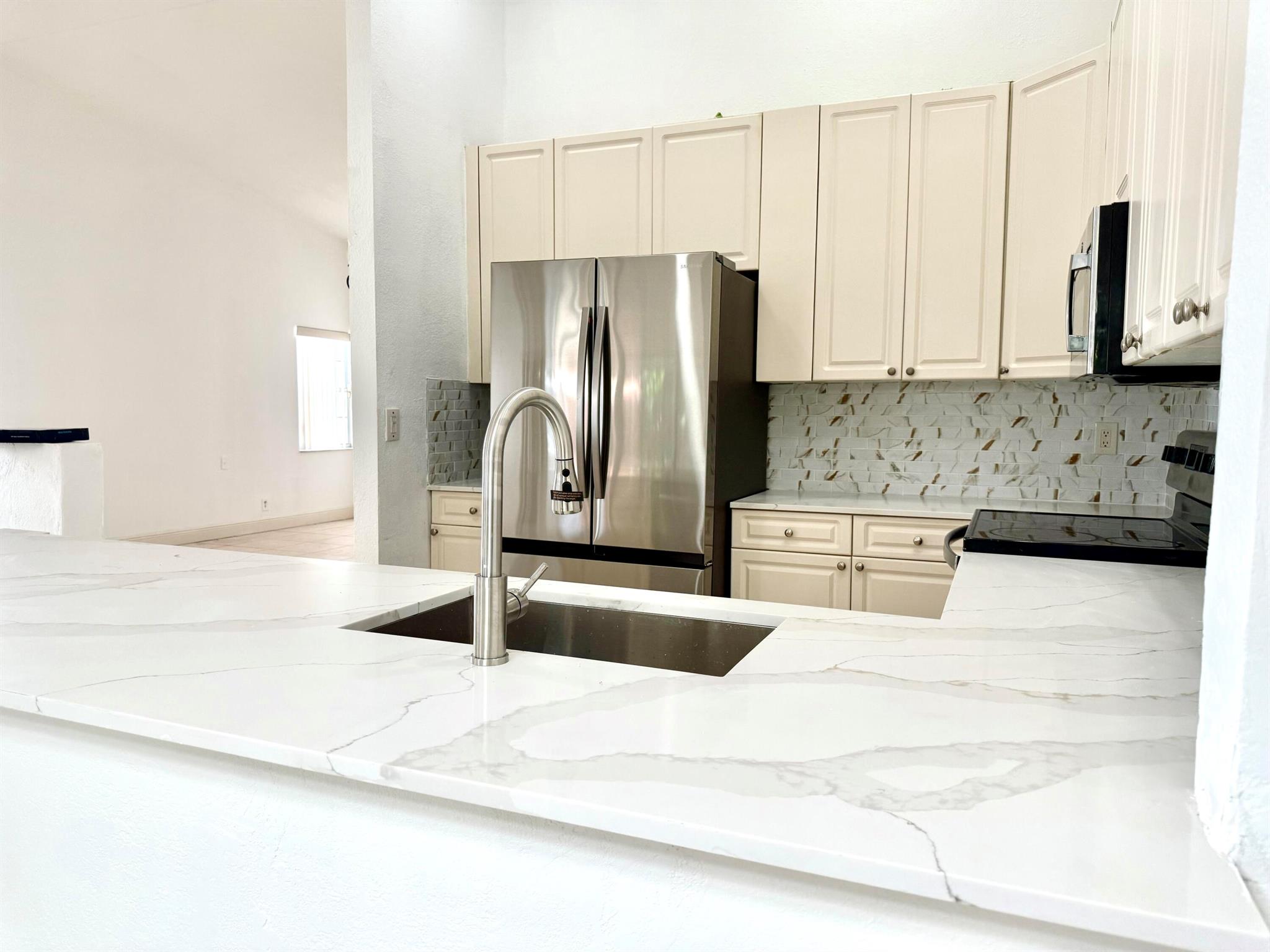 Welcome to this beautiful 3-bedroom, 2-bathroom single-family home, nestled in a charming community Boca Springs. New Roof (2020) and AC (2023) spacious modern design with volume ceilings and a desirable split-bedroom layout. Upgraded kitchen featuring quartz countertops, stainless steel appliances, and upgraded bathrooms with a two-car garage providing convenience and extra storage.Bright and inviting living spaces with very large screened patio with nice garden view, perfect for relaxation or entertaining.Low HOA fees covering common area maintenance, a large pool, playground, tennis courts, basketball and volleyball courts, and well-maintained sidewalks throughout the community.Don't miss the chance to own this wonderful home and become part of a welcoming and active community.