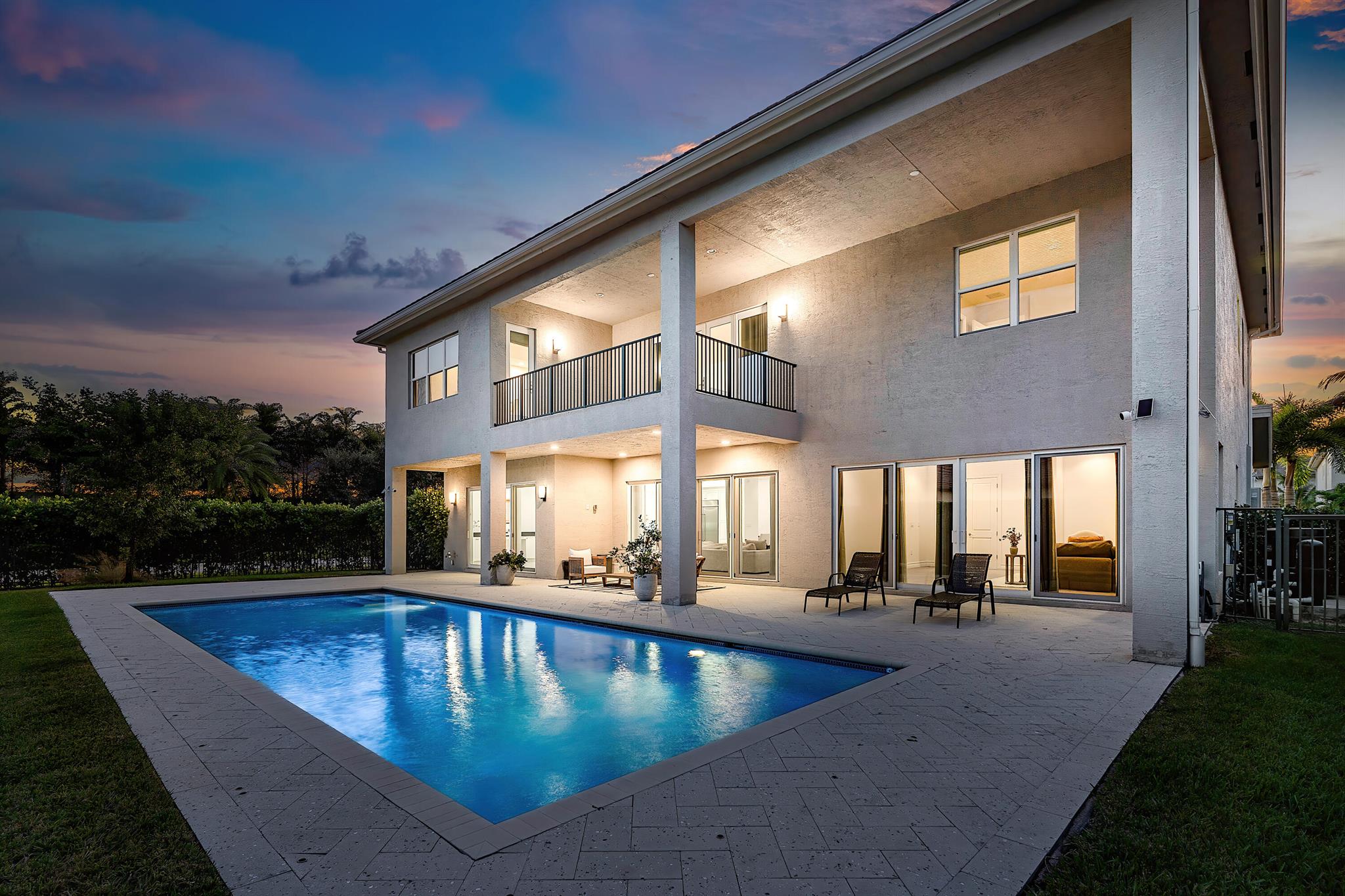 Welcome to 19894 Meadowside Lane, an exceptional residence located on an oversized corner lot in the prestigious gated community of Berkeley in Boca Raton. This luxurious Riverside model built by GL Homes in 2020 offers 5,752 sq ft of elegant living space, including 5 bedrooms, a media room, a loft, 5.1 baths, and a 4-car garage (2 separate 2-car garages). With its impeccable craftsmanship and thoughtful design, this home is a masterpiece of contemporary living. The grand entryway flows seamlessly into spacious, light-filled living areas. The gourmet kitchen is a chef's dream, featuring custom cabinetry, quartz countertops, a center island with bar seating, top-of-the-line appliances (gas cooktop), and a breakfast nook, all open to the Great Room, perfect for entertaining.