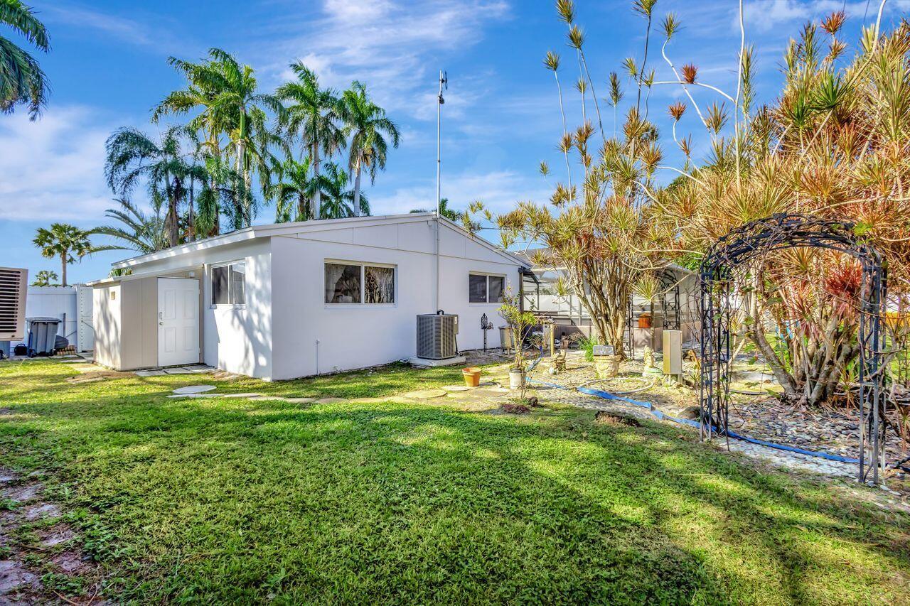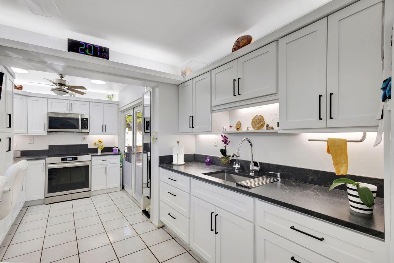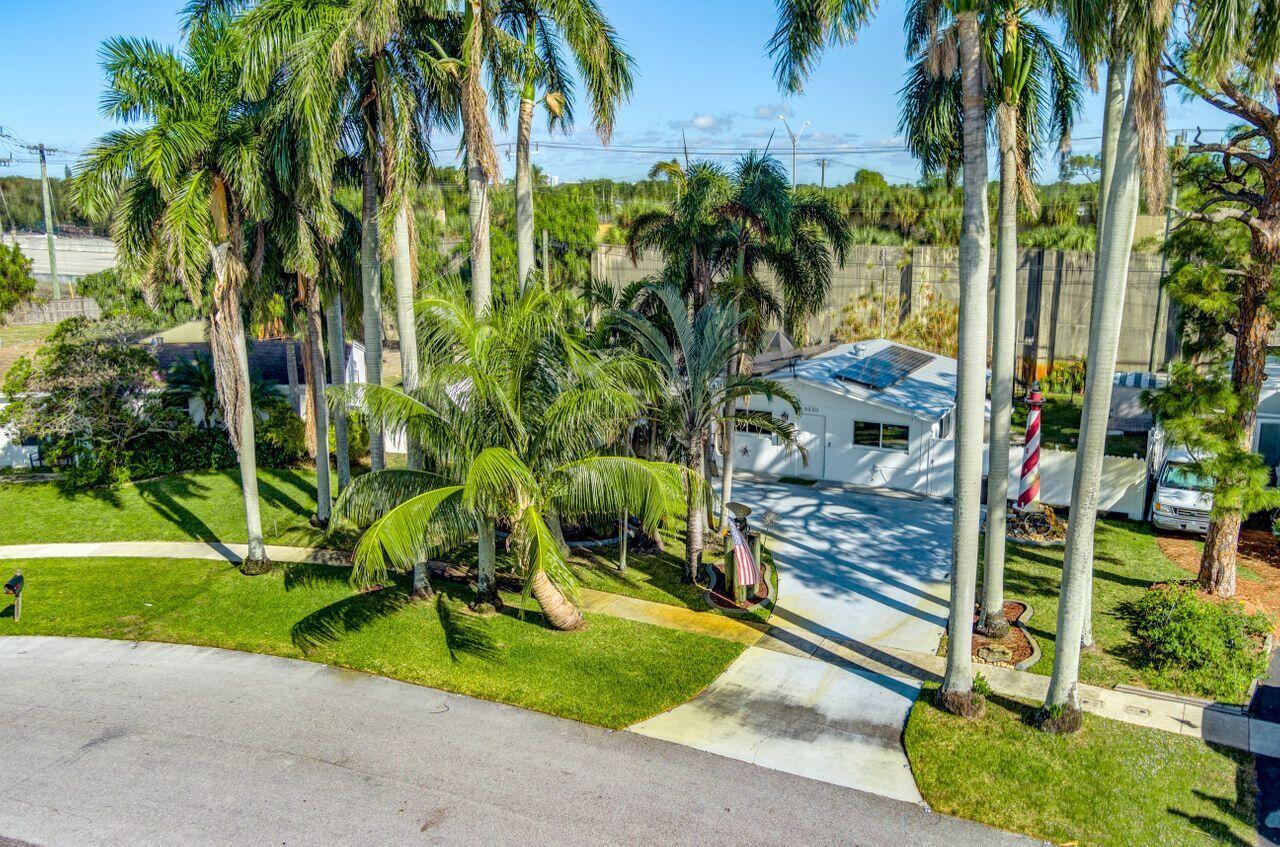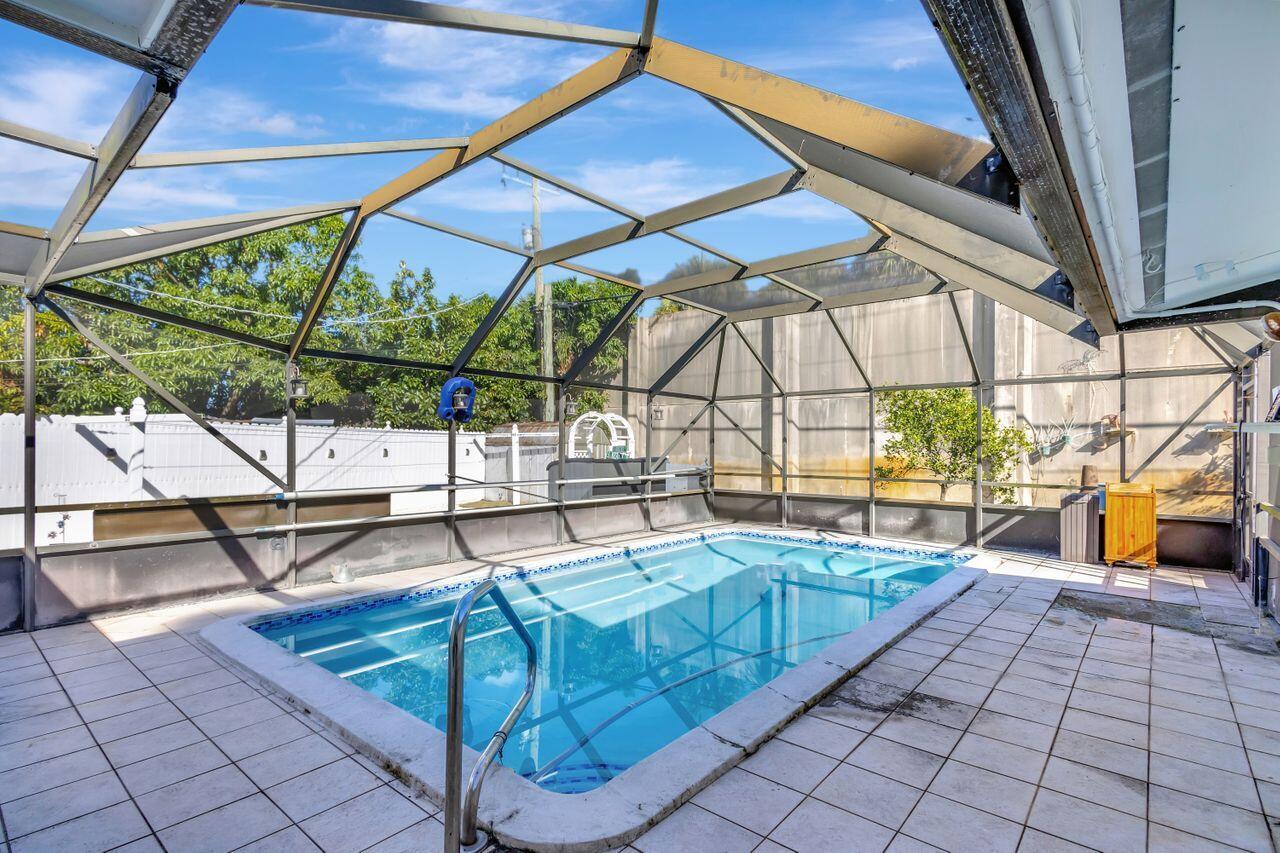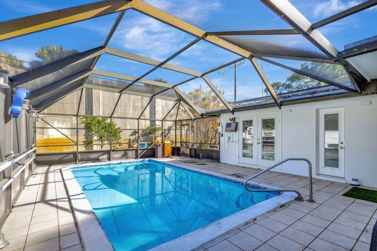 Welcome to your dream home! This beautiful 2-bedroom, 1-bathroom gem is nestled on a spacious 1/5 of an acre in The Palm Beach Square Community in Palm Beach Gardens. Offering ample space and privacy. Enjoy cooking in the newly renovated kitchen, designed with both style and functionality in mind. It features modern appliances, elegant countertops, and plenty of storage. Feel safe and secure with impact windows installed throughout the home, providing protection against extreme weather while adding a touch of modern elegance. The metal roof, equipped with solar panels, is less than three years old. Benefit from energy efficiency and lower utility bills while contributing to a sustainable environment. Dive into your private screened-in pool, perfect for relaxation and entertaining guests,
