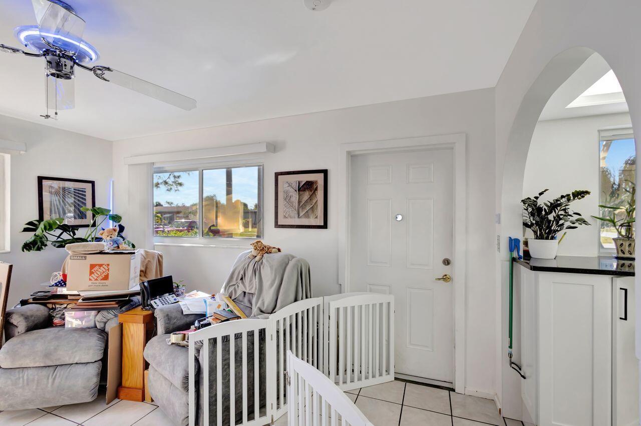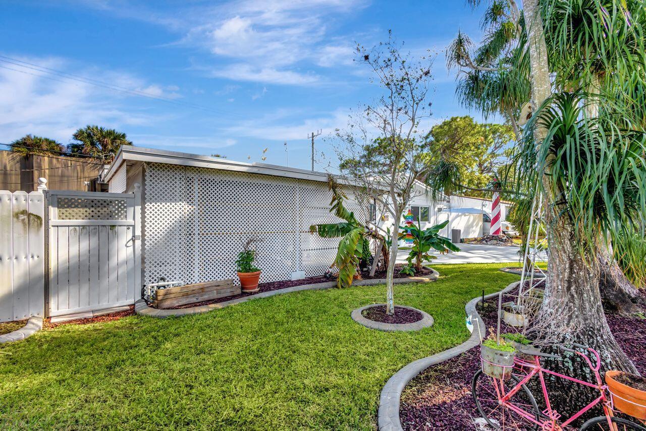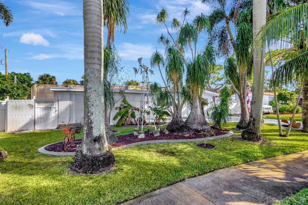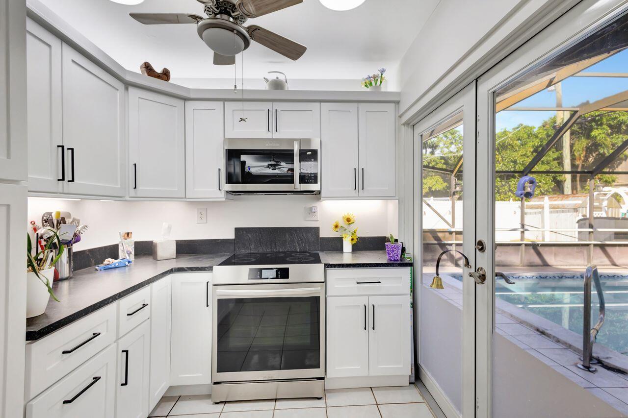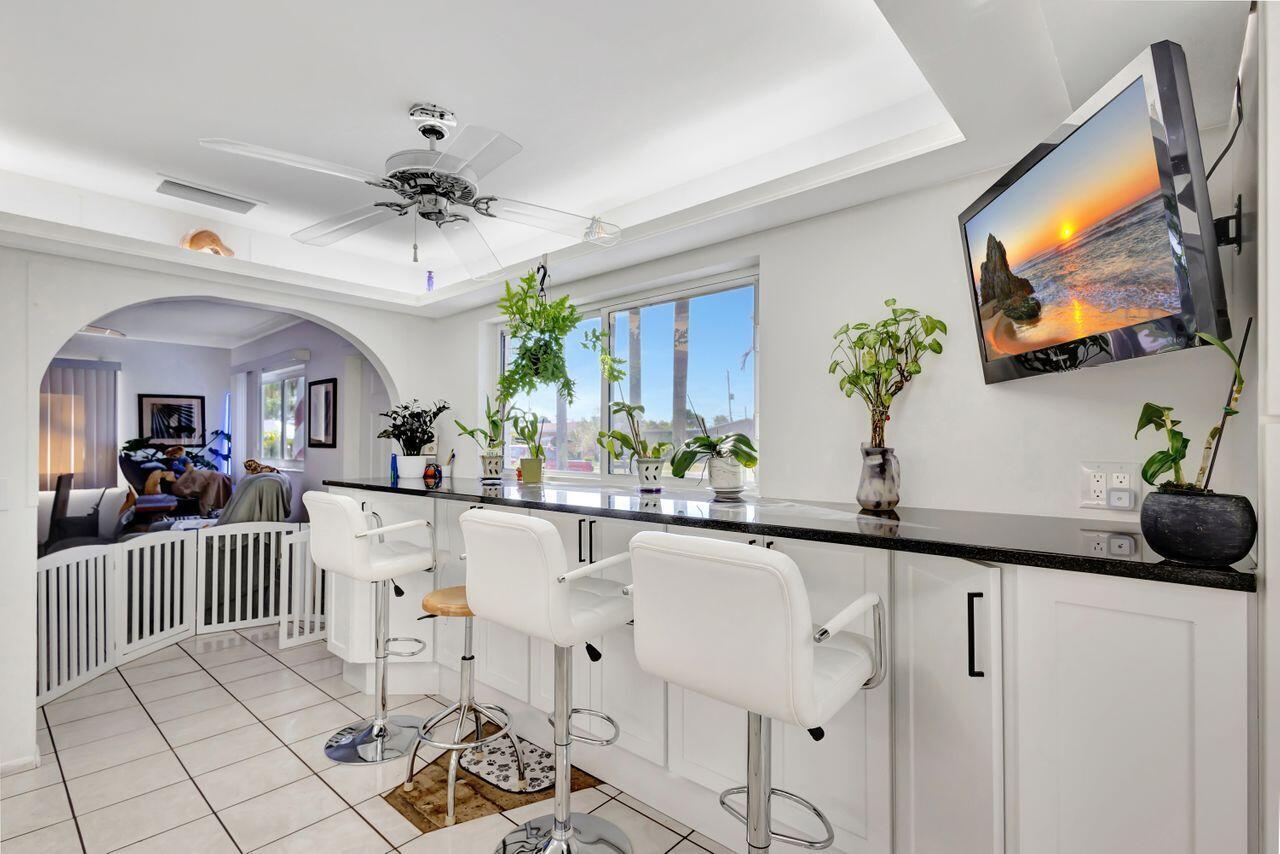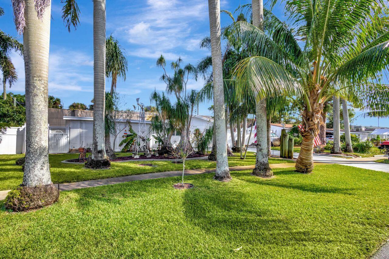 Welcome to your dream home! This beautiful 2-bedroom, 1-bathroom gem is nestled on a spacious 1/5 of an acre in The Palm Beach Square Community in Palm Beach Gardens. Offering ample space and privacy. Enjoy cooking in the newly renovated kitchen, designed with both style and functionality in mind. It features modern appliances, elegant countertops, and plenty of storage. Feel safe and secure with impact windows installed throughout the home, providing protection against extreme weather while adding a touch of modern elegance. The metal roof, equipped with solar panels, is less than three years old. Benefit from energy efficiency and lower utility bills while contributing to a sustainable environment. Dive into your private screened-in pool, perfect for relaxation and entertaining guests,