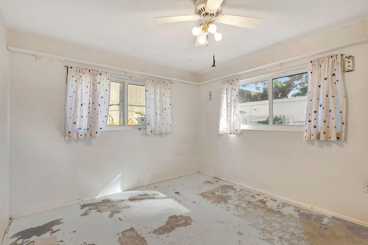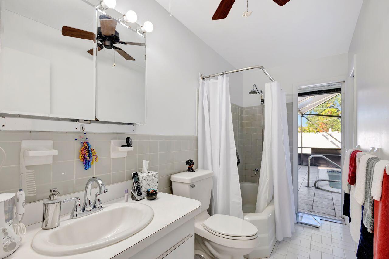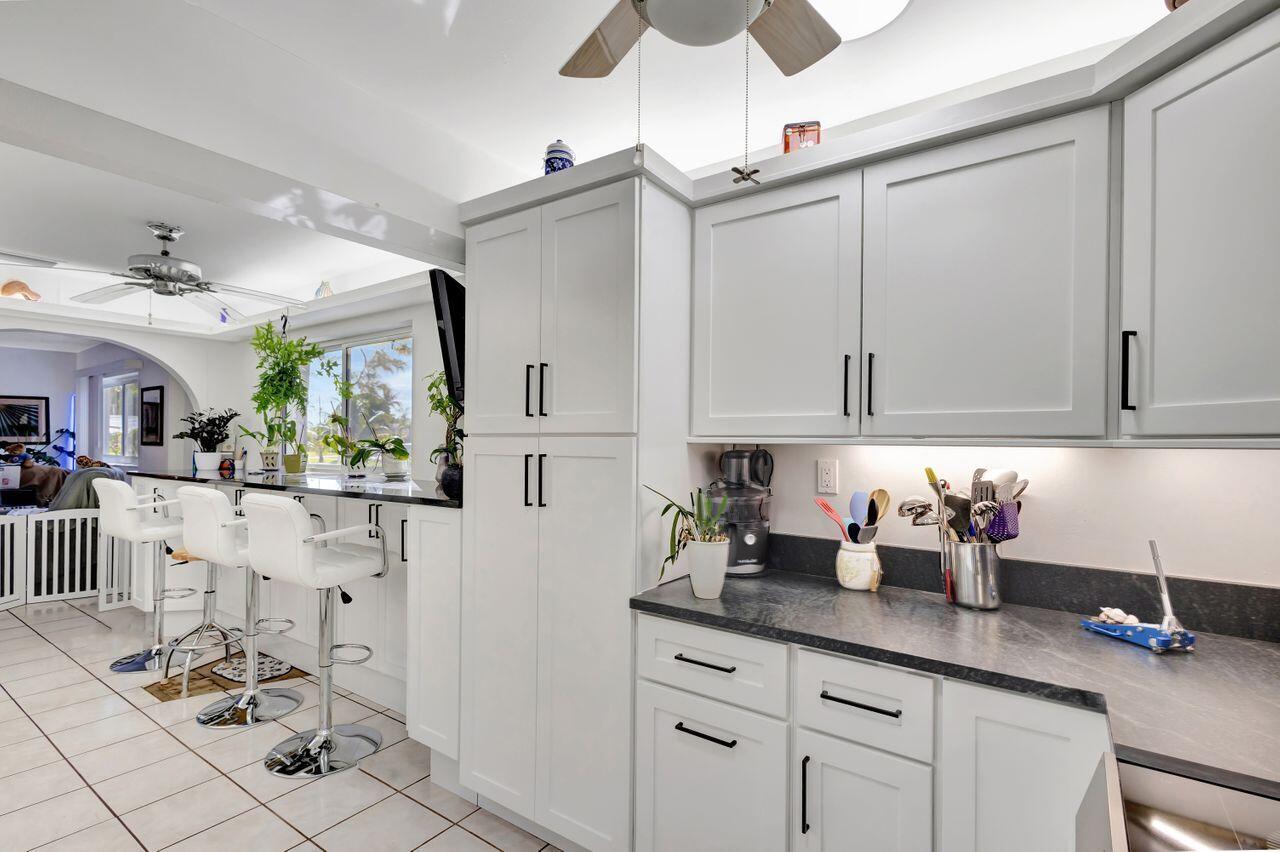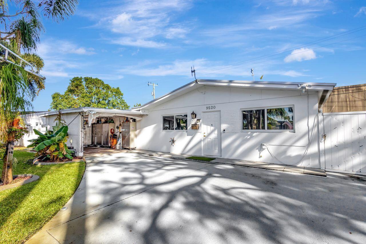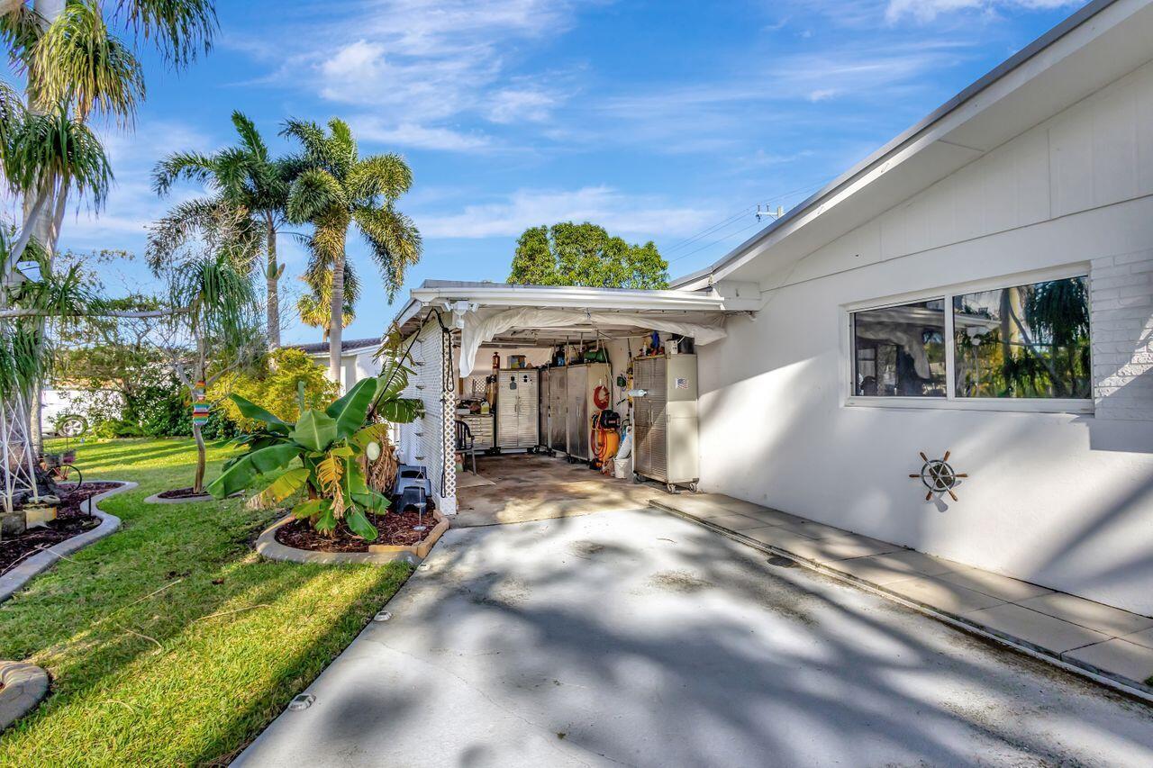 Welcome to your dream home! This beautiful 2-bedroom, 1-bathroom gem is nestled on a spacious 1/5 of an acre in The Palm Beach Square Community in Palm Beach Gardens. Offering ample space and privacy. Enjoy cooking in the newly renovated kitchen, designed with both style and functionality in mind. It features modern appliances, elegant countertops, and plenty of storage. Feel safe and secure with impact windows installed throughout the home, providing protection against extreme weather while adding a touch of modern elegance. The metal roof, equipped with solar panels, is less than three years old. Benefit from energy efficiency and lower utility bills while contributing to a sustainable environment. Dive into your private screened-in pool, perfect for relaxation and entertaining guests,