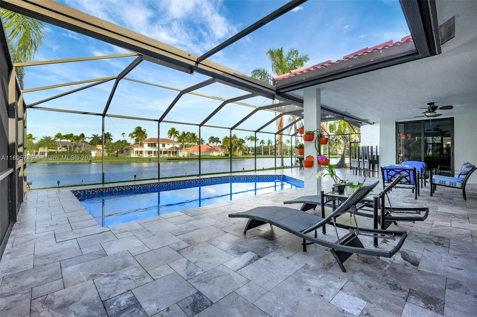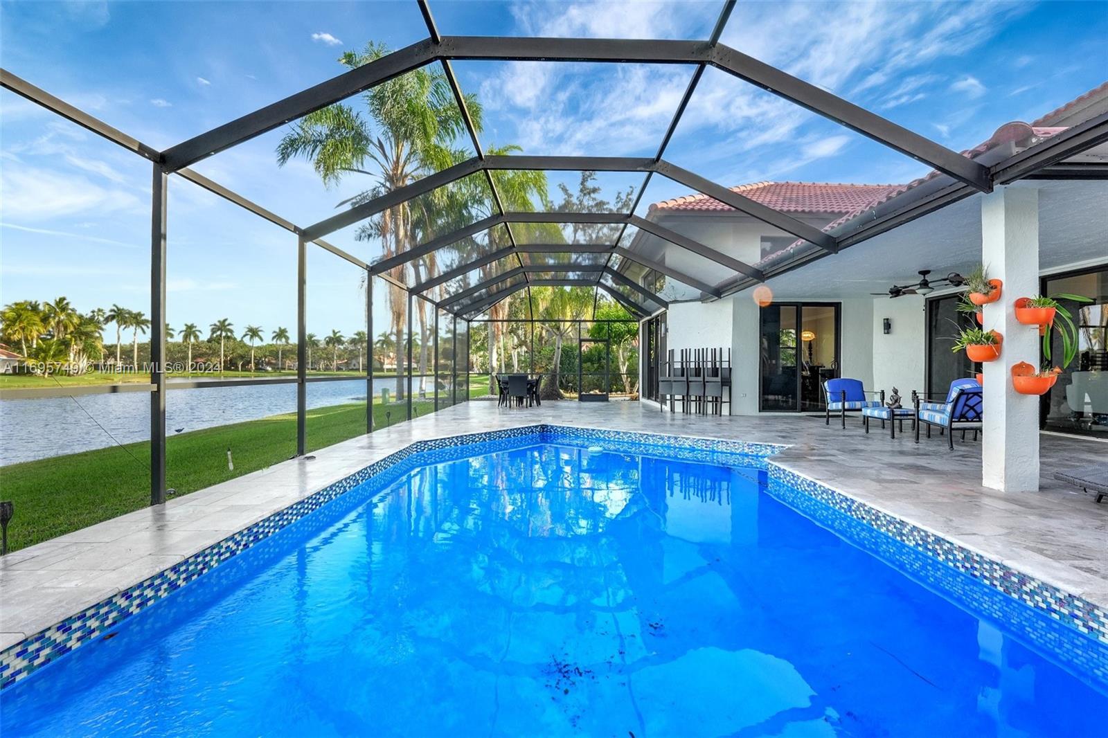 Gorgeous Renovated 1 story Home w/ Amazing Wide Lake View and Pool in Tequesta. In 2020 Owners completely Renovated The Large Waterfall White Quartz Kitchen, All New Porcelain Flooring Throughout, new Bathrooms, Bar, Lighting, Pool Deck. Impact Windows / Sliding Doors in main areas. Roof 2012. Wonderful OPen Floor plan with lots of natural light, Split Floor Plan, 4th bed is office off Primary Bedroom, Tall Ceilings, Newer Pool pump, Professionally Decorated, oversize Laundry Room. You will not be disappointed with the quality of this home in a guard gated community in Weston.