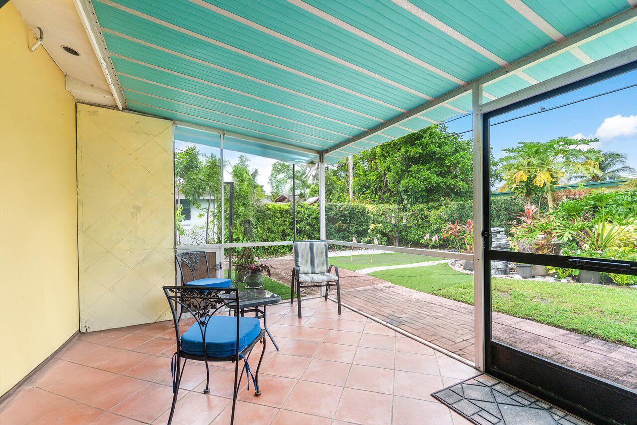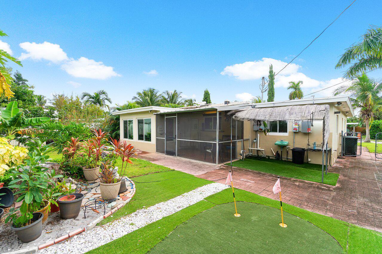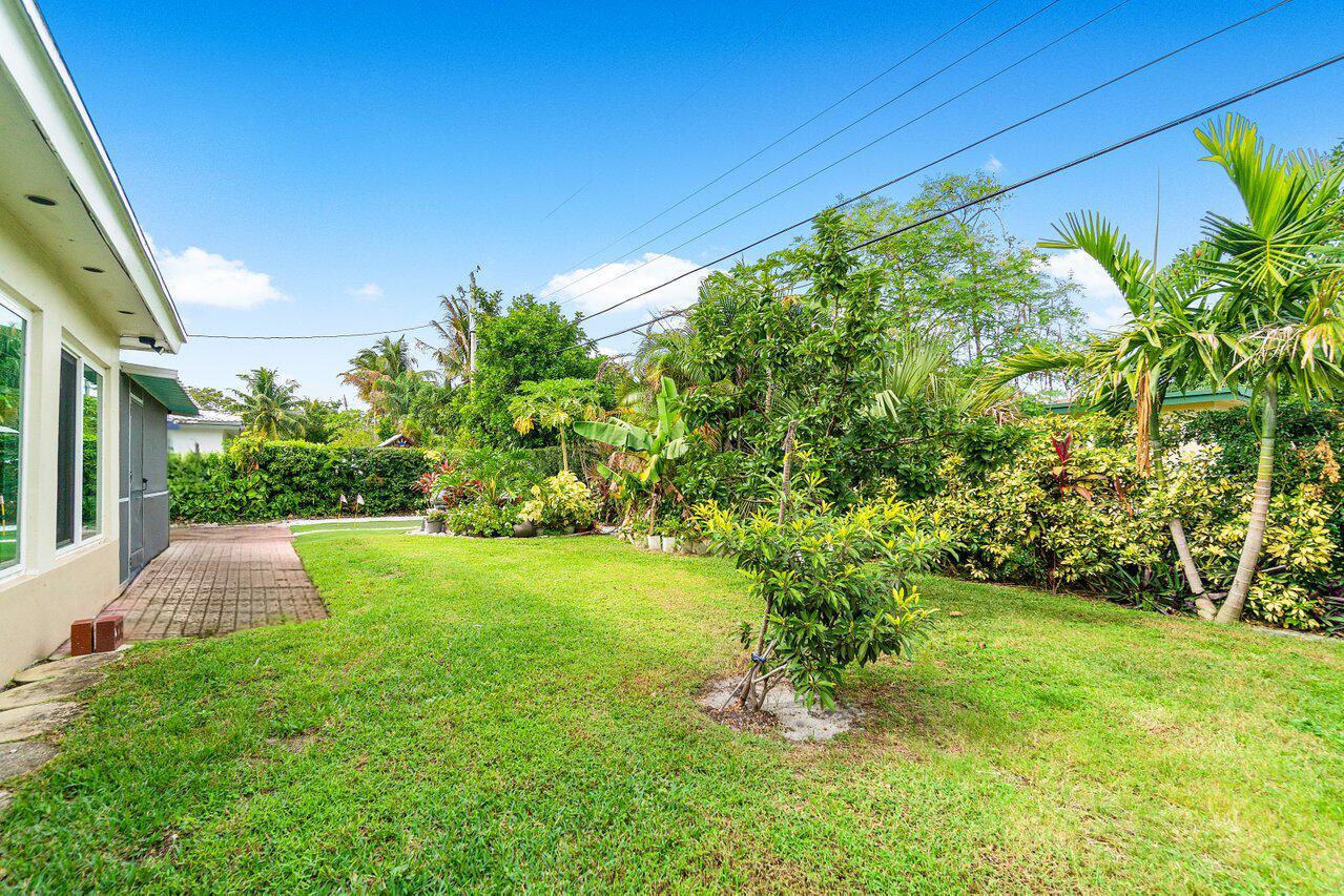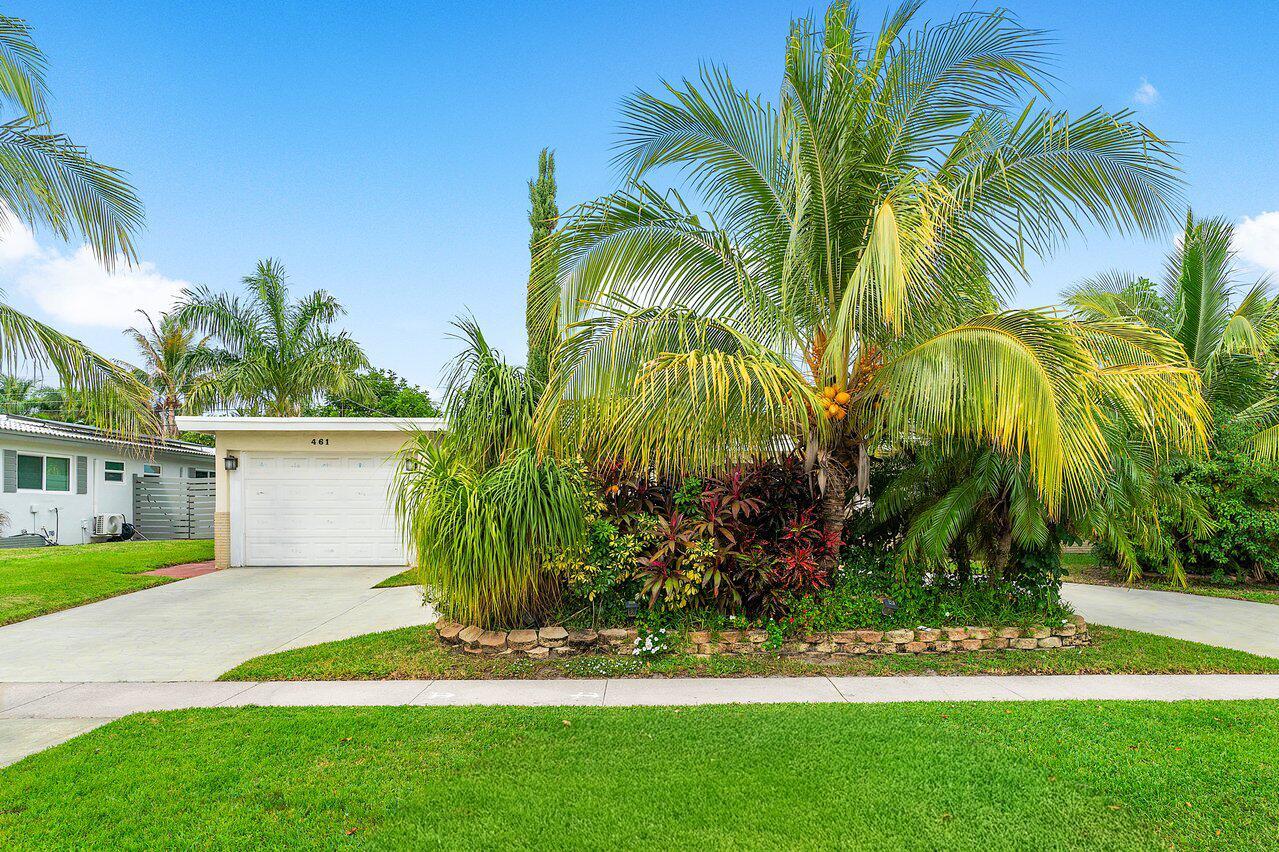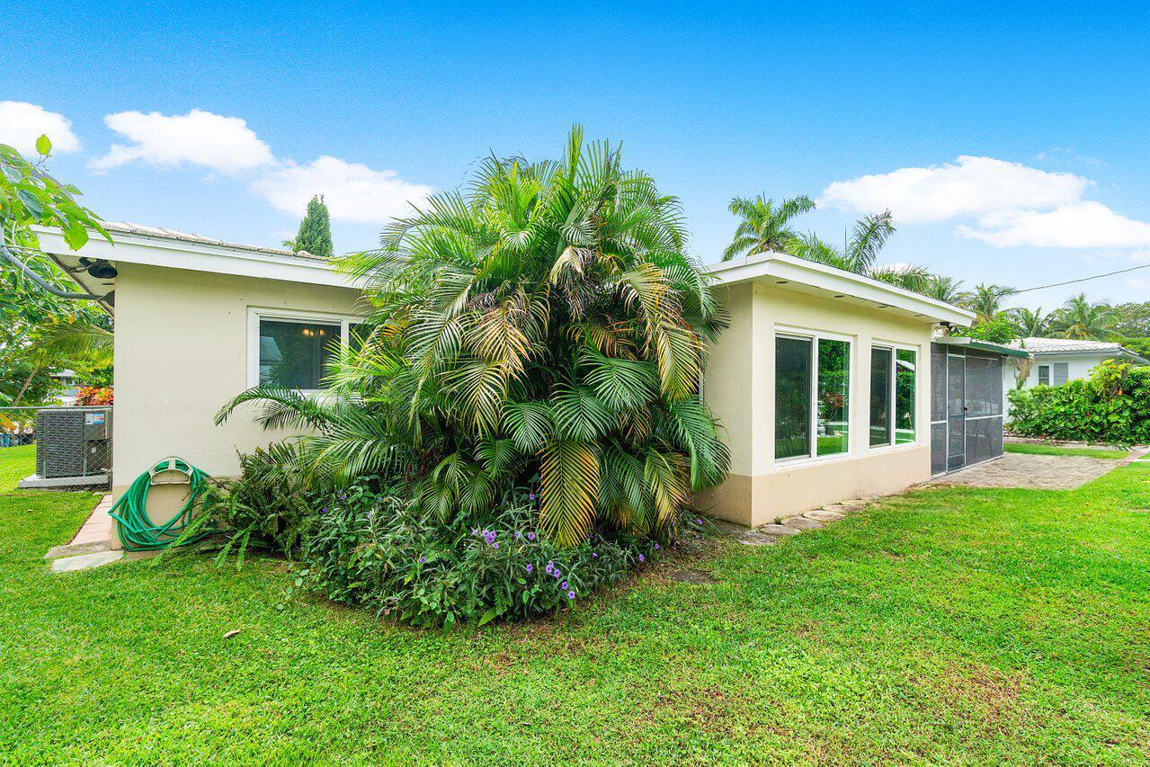 Situated on a tropical lot in East Boca just a 3-4 minute drive to the beach, this charming one-story ranch-style home is a true oasis, centrally located and surrounded by lush, vibrant landscaping. A circular driveway welcomes you, leading to a cozy front porch where you can relax and take in the sunny southern views. Inside, the open-concept granite kitchen features stainless steel appliances, an abundance of cabinetry, and a functional utility room with laundry and ample storage, all seamlessly connecting to a one-car garage. The beautifully designed backyard is a tropical paradise, perfect for entertaining or unwinding, with a spacious screened-in lanai that overlooks the serene setting. The home offers a large family room and dining area that flow effortlessly into the outdoor