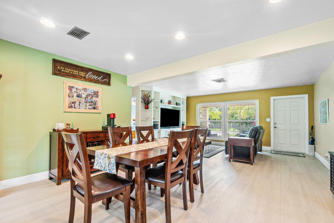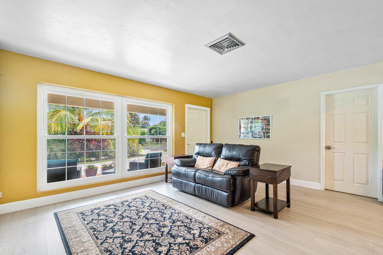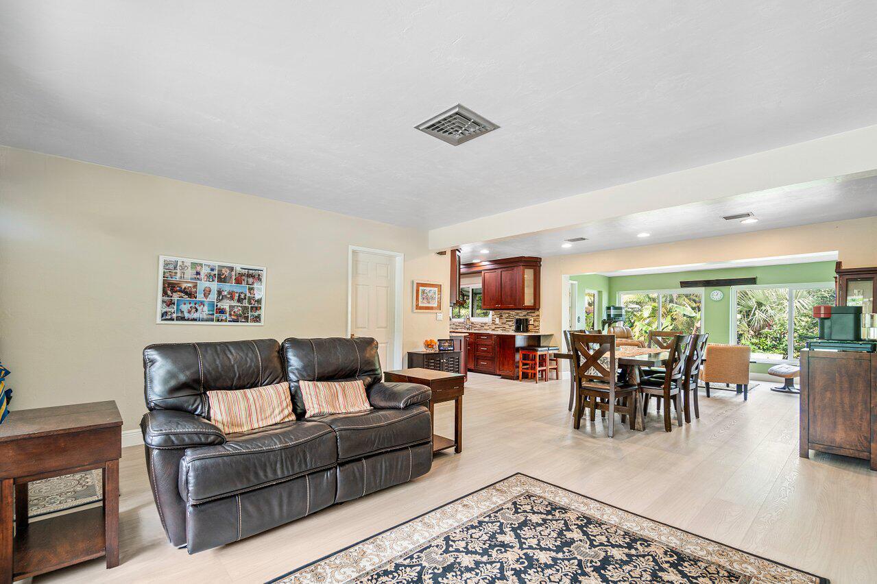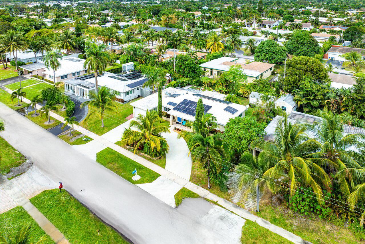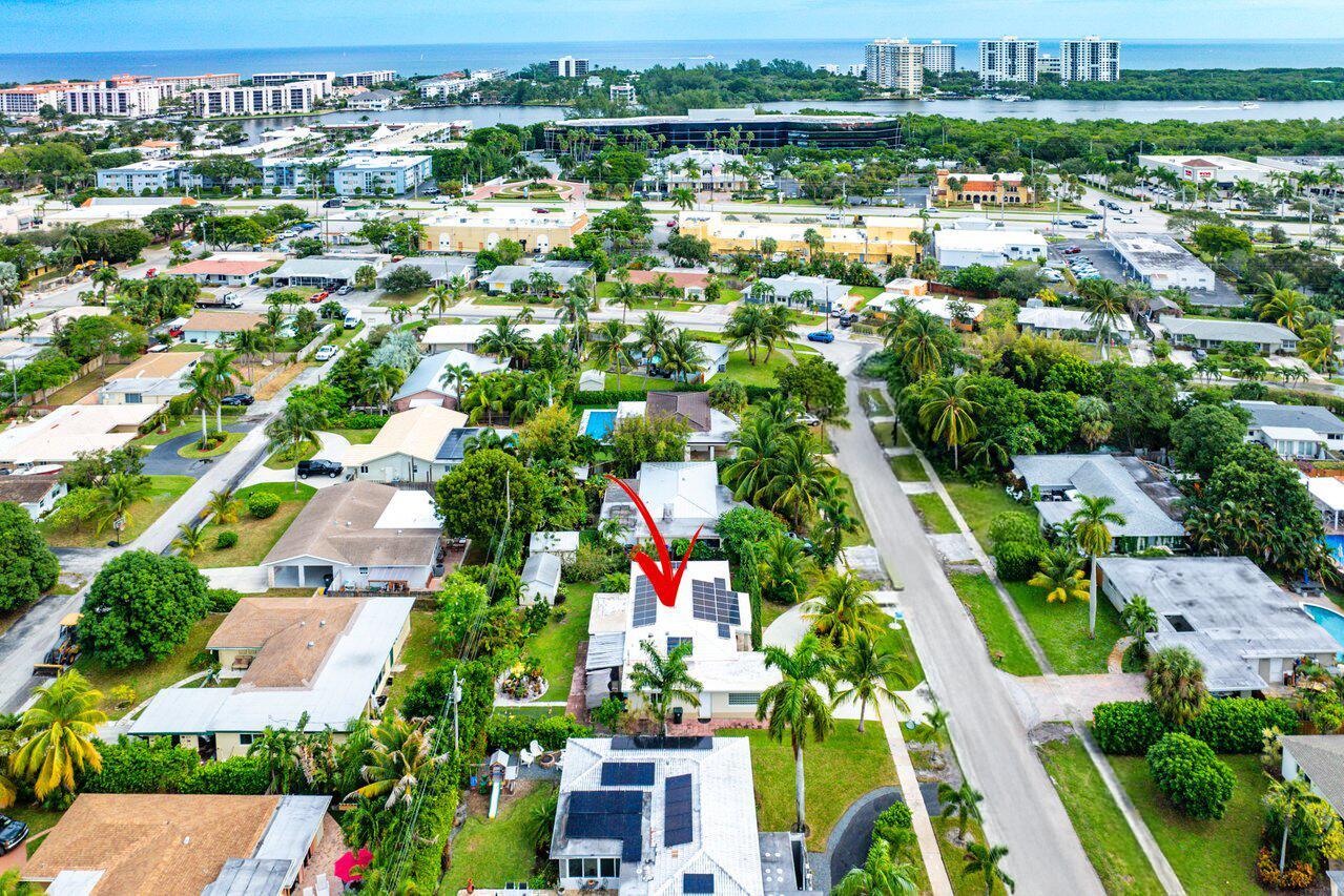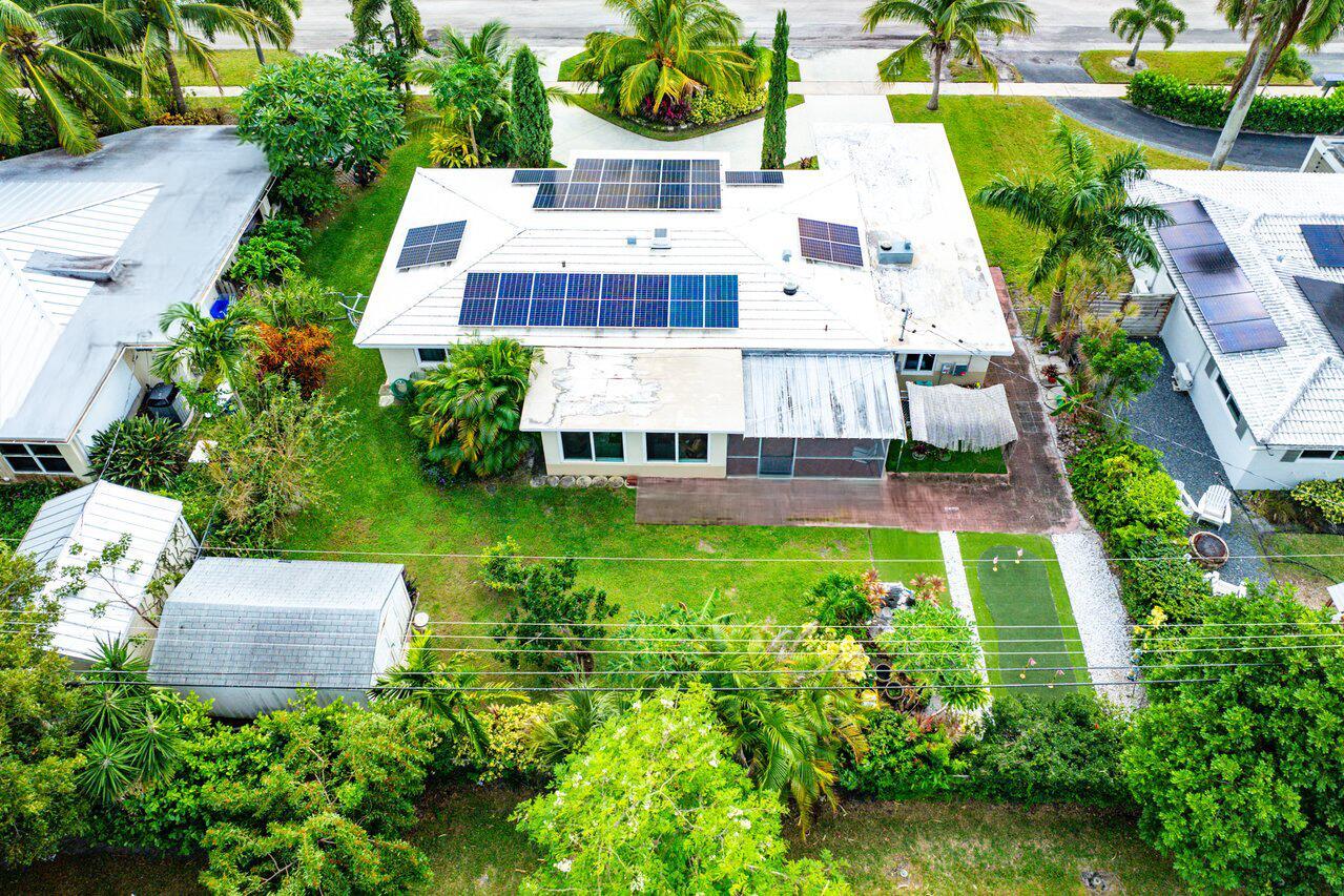 Situated on a tropical lot in East Boca just a 3-4 minute drive to the beach, this charming one-story ranch-style home is a true oasis, centrally located and surrounded by lush, vibrant landscaping. A circular driveway welcomes you, leading to a cozy front porch where you can relax and take in the sunny southern views. Inside, the open-concept granite kitchen features stainless steel appliances, an abundance of cabinetry, and a functional utility room with laundry and ample storage, all seamlessly connecting to a one-car garage. The beautifully designed backyard is a tropical paradise, perfect for entertaining or unwinding, with a spacious screened-in lanai that overlooks the serene setting. The home offers a large family room and dining area that flow effortlessly into the outdoor