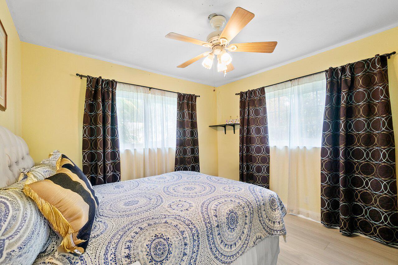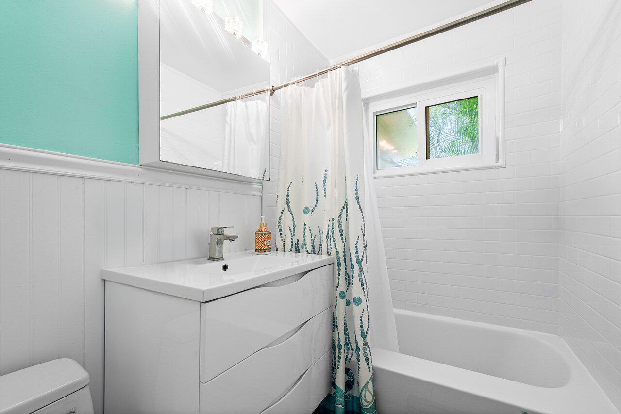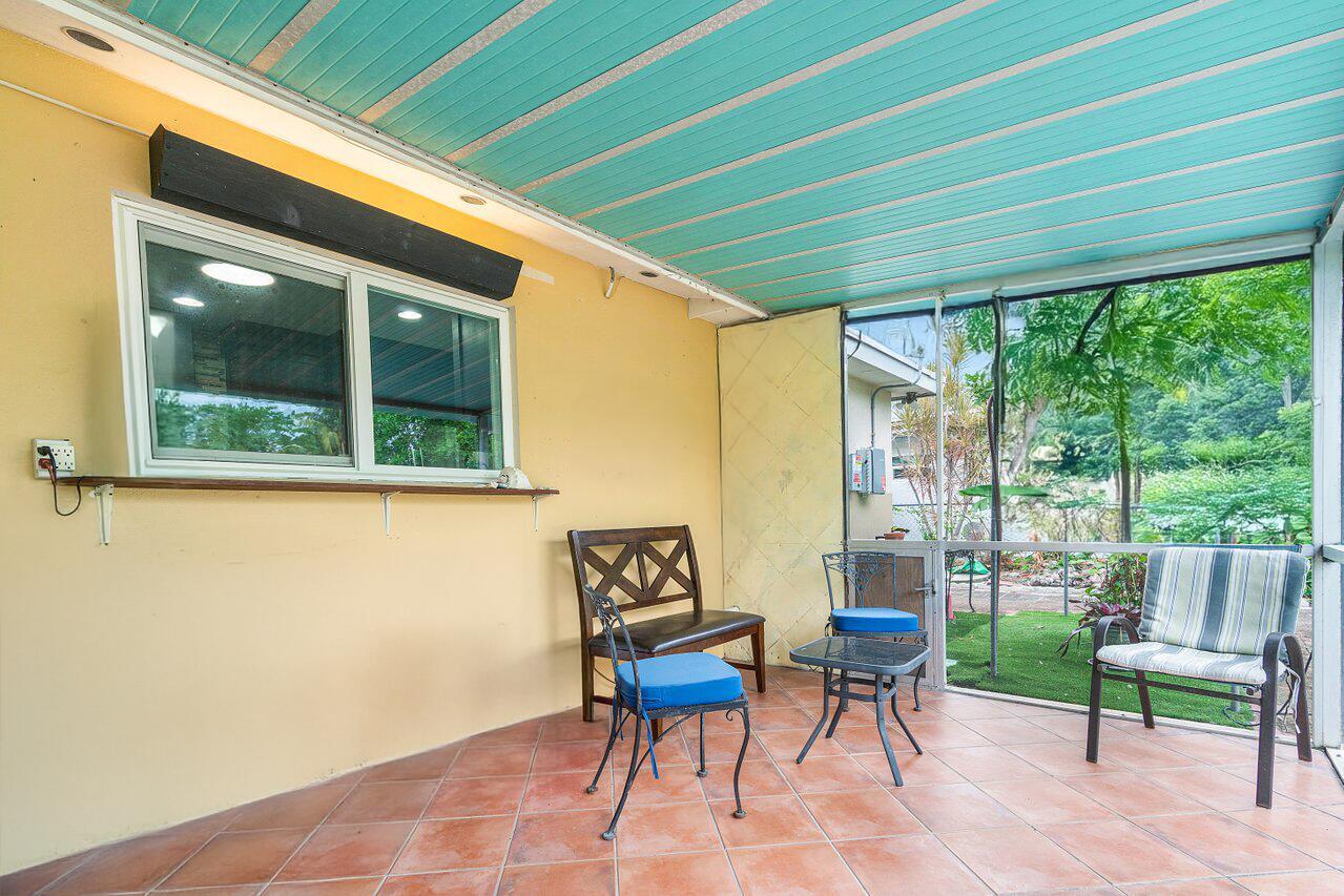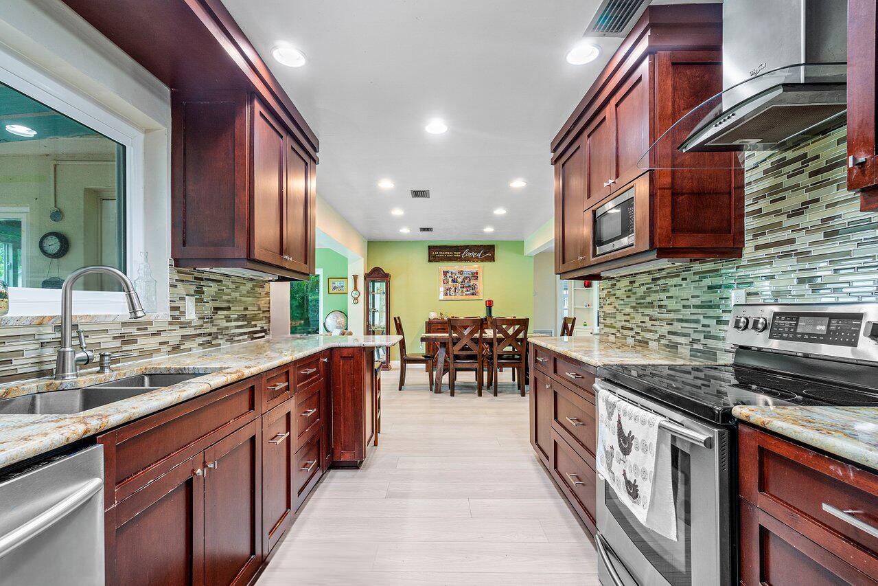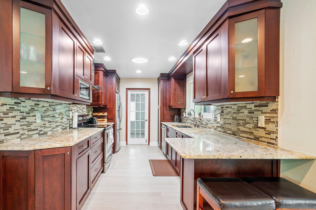 Situated on a tropical lot in East Boca just a 3-4 minute drive to the beach, this charming one-story ranch-style home is a true oasis, centrally located and surrounded by lush, vibrant landscaping. A circular driveway welcomes you, leading to a cozy front porch where you can relax and take in the sunny southern views. Inside, the open-concept granite kitchen features stainless steel appliances, an abundance of cabinetry, and a functional utility room with laundry and ample storage, all seamlessly connecting to a one-car garage. The beautifully designed backyard is a tropical paradise, perfect for entertaining or unwinding, with a spacious screened-in lanai that overlooks the serene setting. The home offers a large family room and dining area that flow effortlessly into the outdoor