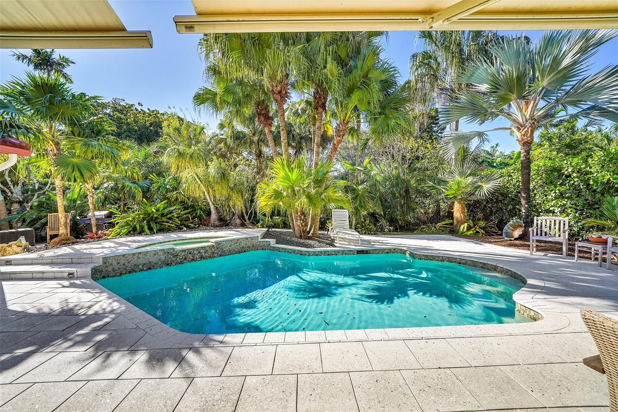 Step into a dream in this remarkably upgraded, beautifully appointed home. No room untouched, no detail spared! Clean, neutral tones complimented by gorgeous 30x30 newer flooring throughout. Custom blinds. The gourmet kitchen is a chef's delight complete with granite counters, rich cabinetry, organizers and a newer refrigerator. Time to make culinary masterpieces. Charming formal dining room. Formal living room & a large family room adjoining the kitchen. Spacious master bedroom includes a deep walk in closet plus a luxurious master bath. Custom stylish designer bedroom doors! Newer washer and dryer in bedroom hall behind decorative barn door. Lush, tropical backyard oasis rivals a private resort! Heated pool. NEWER ROOF IN 2020! FULL IMPACT WINDOWS AND DOORS! So much more to love. Really!