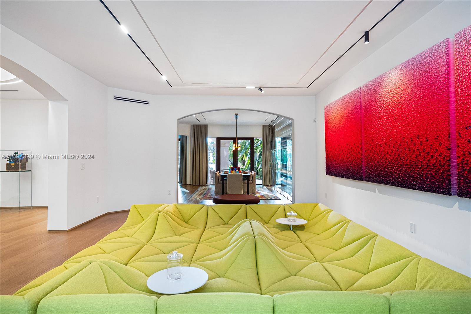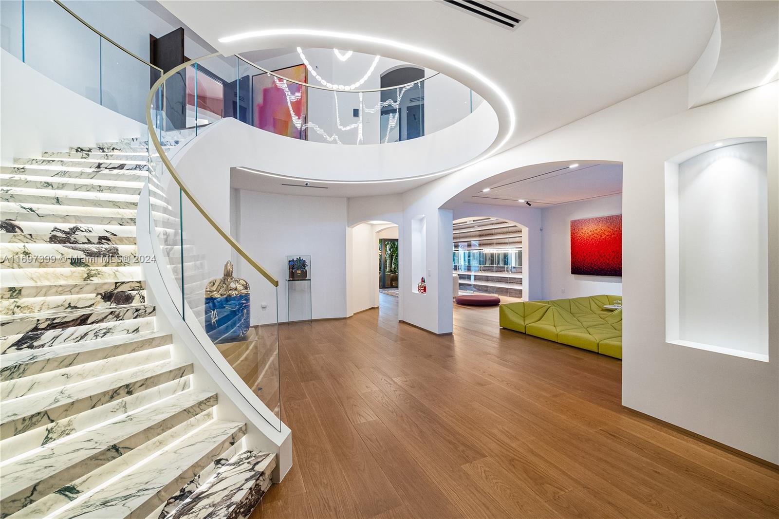 Experience unparalleled luxury in this 6,924 sqft waterfront estate on the exclusive, gated Allison Island in Miami Beach. Boasting 75 ft of open bay frontage on a sprawling 16,200 sqft lot, this two story masterpiece offers breathtaking Miami sunset views. Remodeled to perfection, it features double-height ceilings, a formal dining room, a state-of-the-art movie theater, a bespoke speakeasy, a gym & a luxurious sauna. The principal suite includes dual walk-in closets, a private balcony & panoramic water views. Designed for entertaining, enjoy a marble pool, jacuzzi, detached summer kitchen, covered dining area & private dock with a boat lift. Advanced home automation, custom finishes & unique details like marble bathrooms & a starry theater ceiling make this home a rare find.
