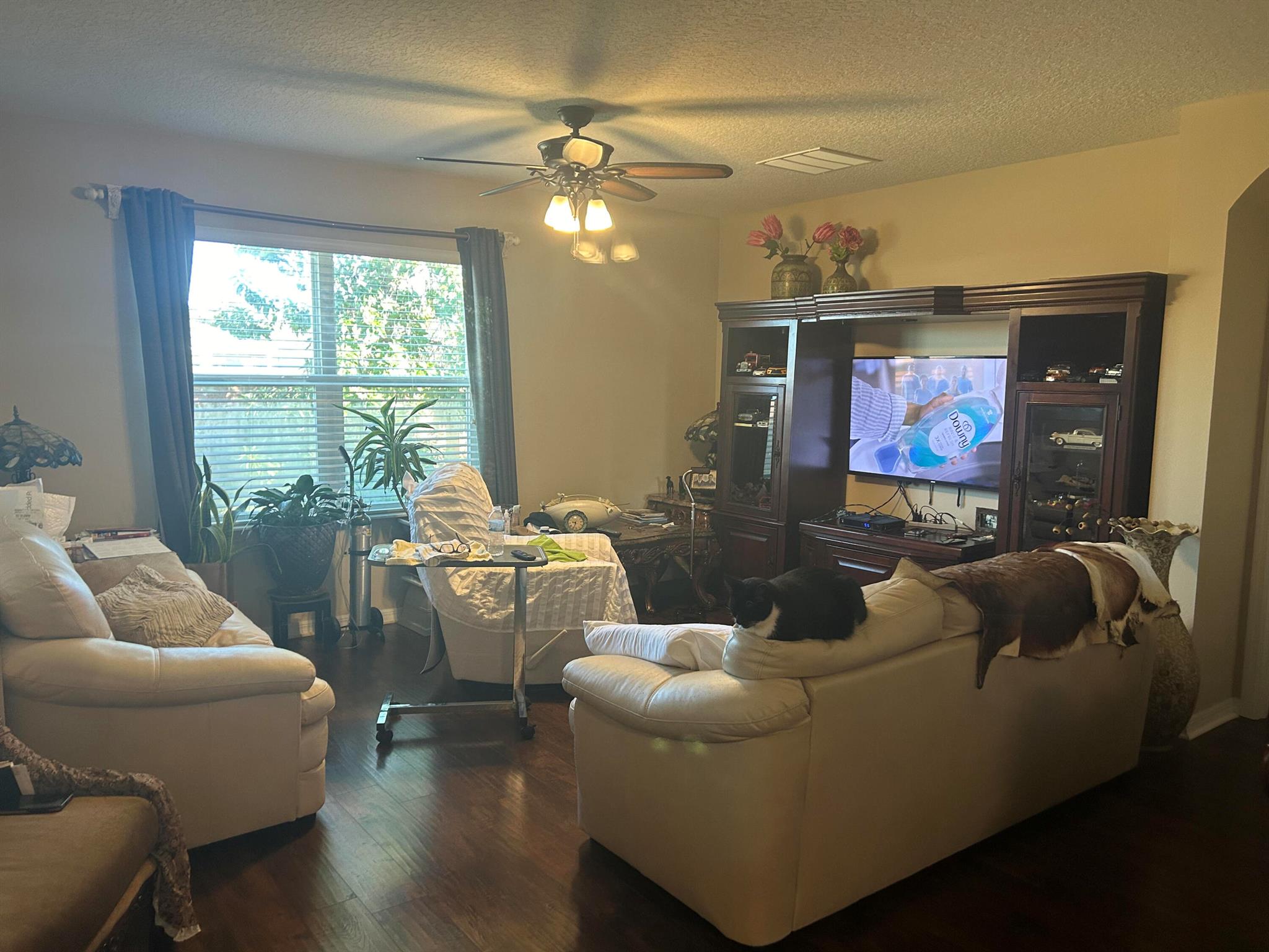 PRICE TO SELL! charming 4-bedroom, 2-bathroom single-family home with a 2-car garage, located in the vibrant city of Clermont. Inside, you'll find tile flooring throughout the main living areas, laminate flooring in most bedrooms, and plush carpet in the 3rd bedroom. Volume ceilings enhance the open feel, and the family room seamlessly blends with the kitchen and dining area, creating a perfect flow for everyday living and entertaining. The kitchen is equipped with well-kept appliances and a pantry with ample storage. Enjoy the open back patio and lush green lawn, ideal for outdoor gatherings or quiet moments. This beautiful home is just a short drive from Clermont's top attractions, including Downtown Clermont, the iconic Citrus Tower, Waterfront Park, and much more. Come See Today