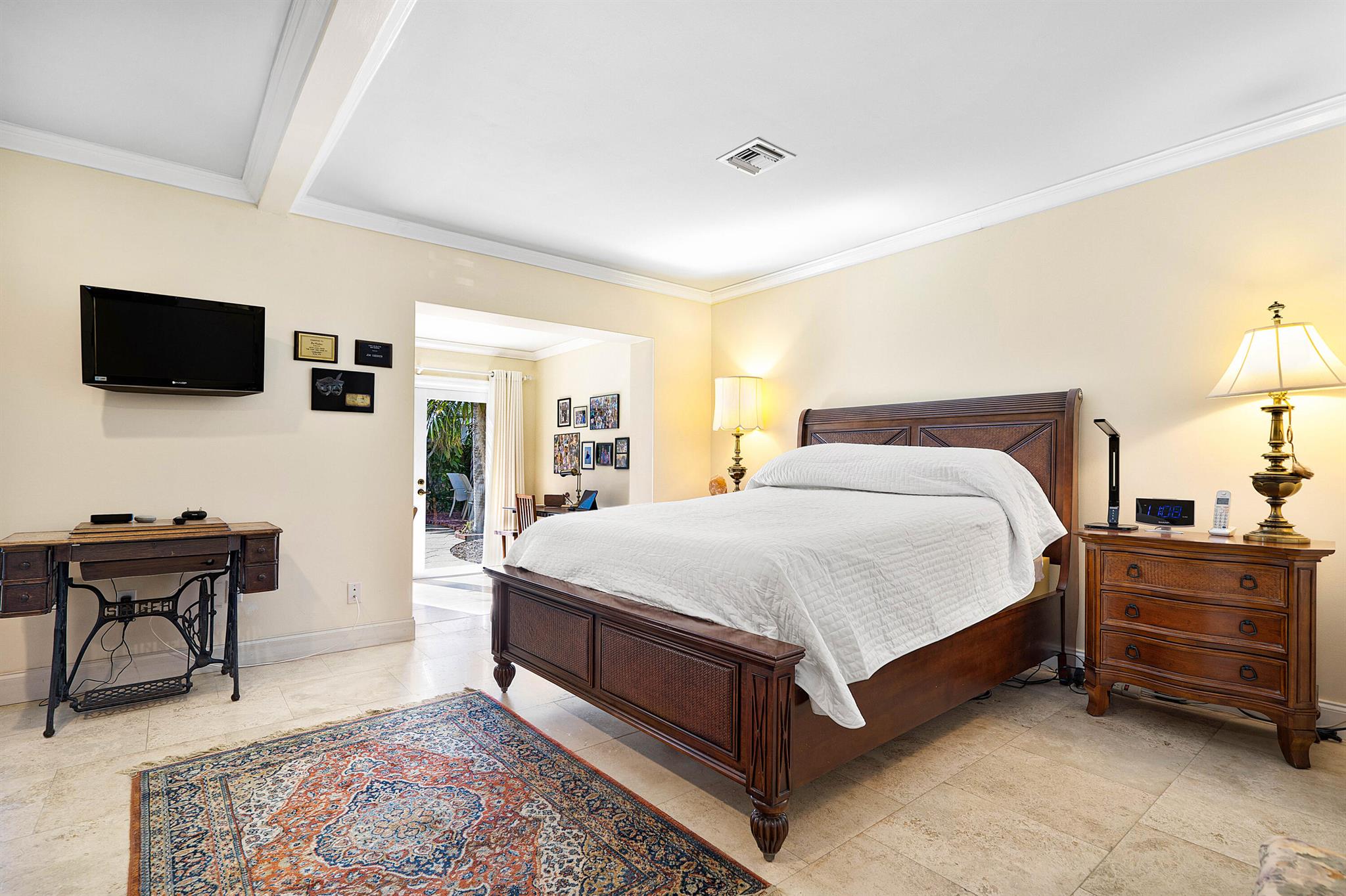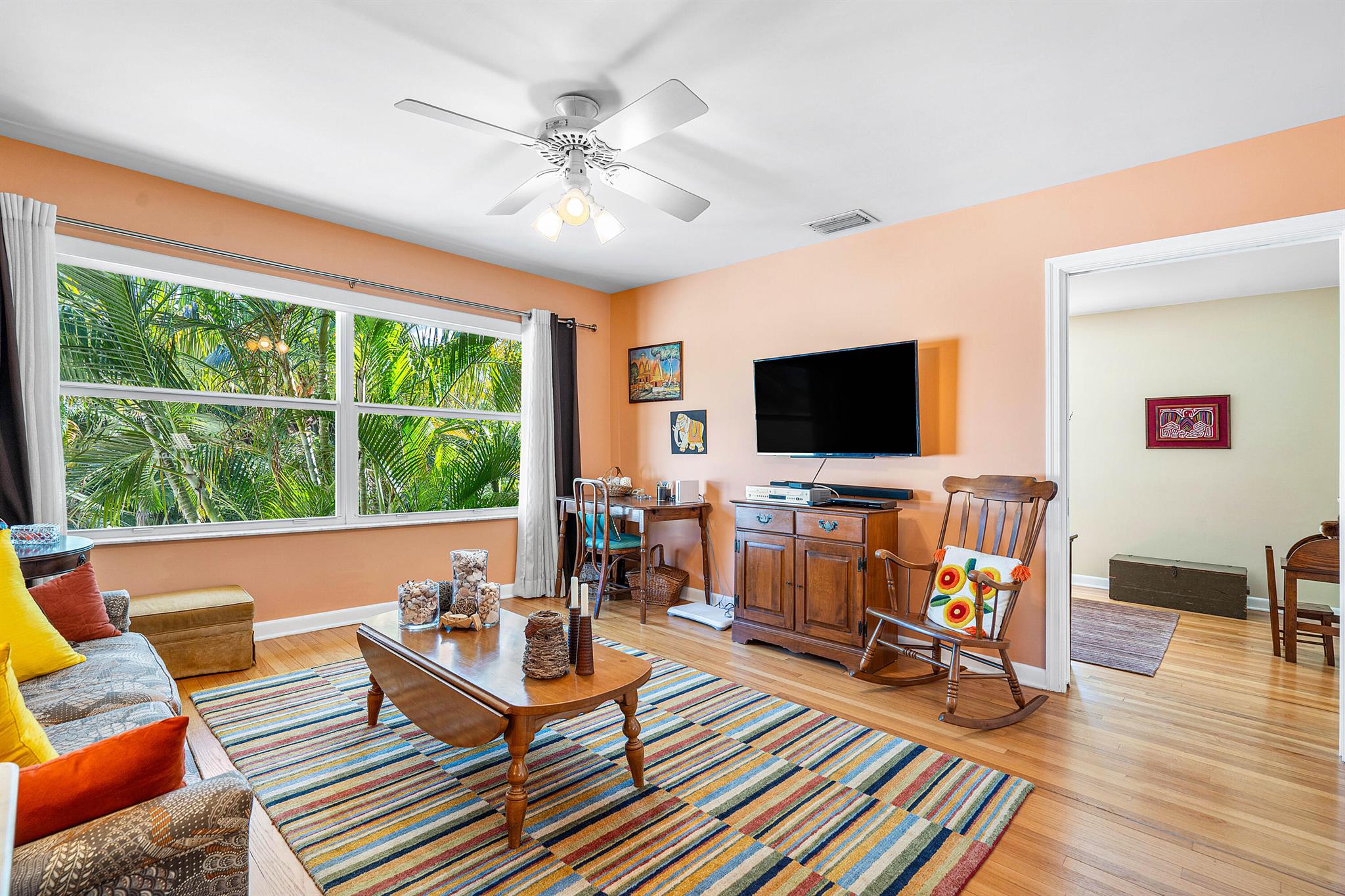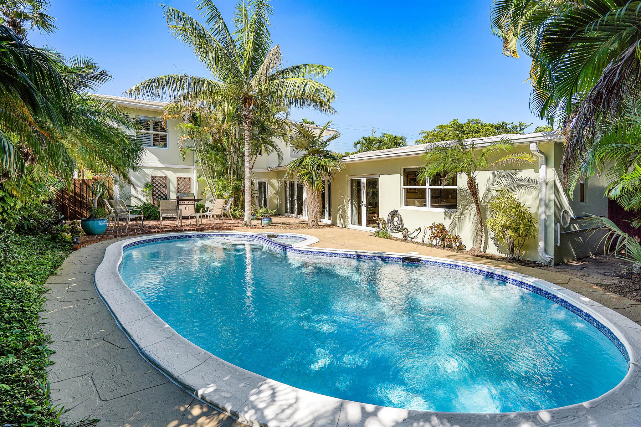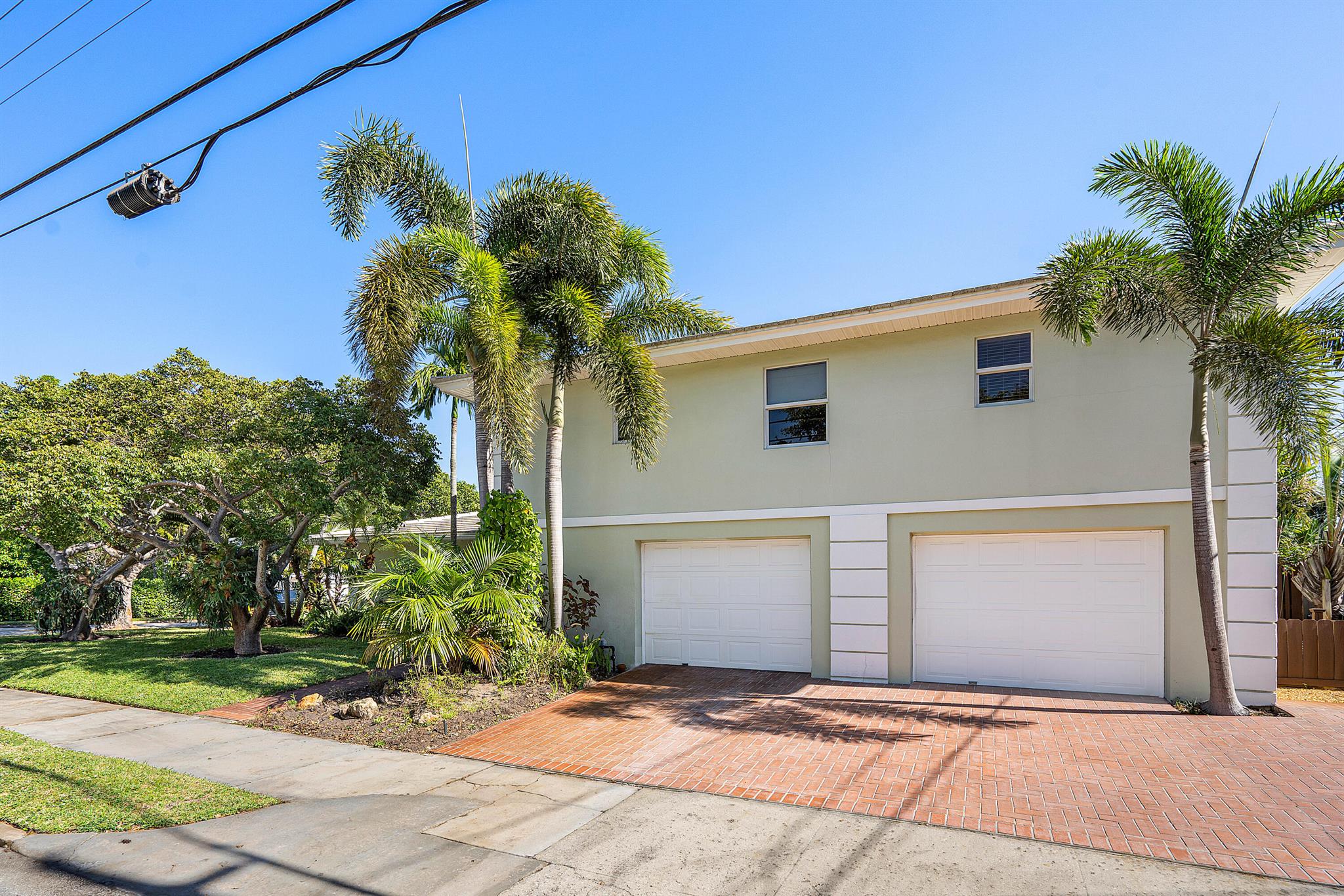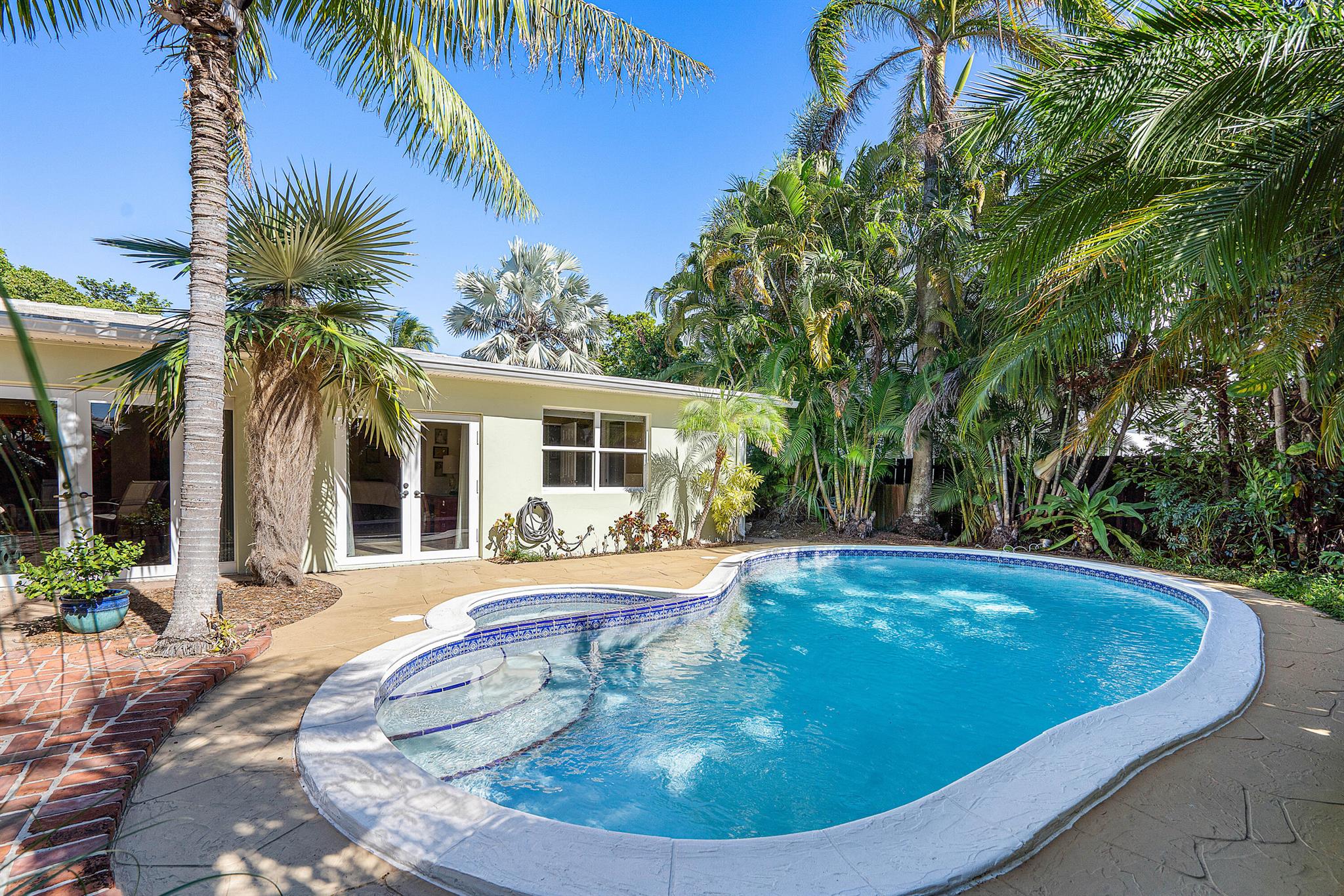 Charming pool home in lake block prime location in SoSo. A corner lot on an attractive street with sidewalks just steps from the Intracoastal Waterway. Convenient to downtown West Palm Beach and Palm Beach, in the South Olive school district. Ground floor primary bedroom suite has it all: walk in closet, en suite bathroom and den/sitting area opening out to the pool area. The home offers a second bedroom with en suite bathroom on ground floor. The upstairs will surprise you, with two bedrooms and bathrooms, a spacious family room and kitchen: perfect for guests, mother-in-law suite, older children. Solid CBS construction, with a cement tile roof, and original terrazzo floors in ground floor living areas. Two-car garage, impact windows and so much more.