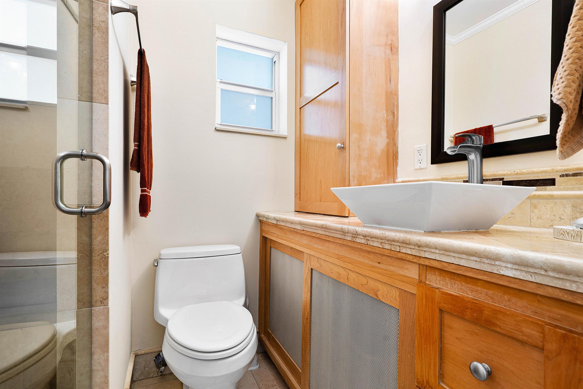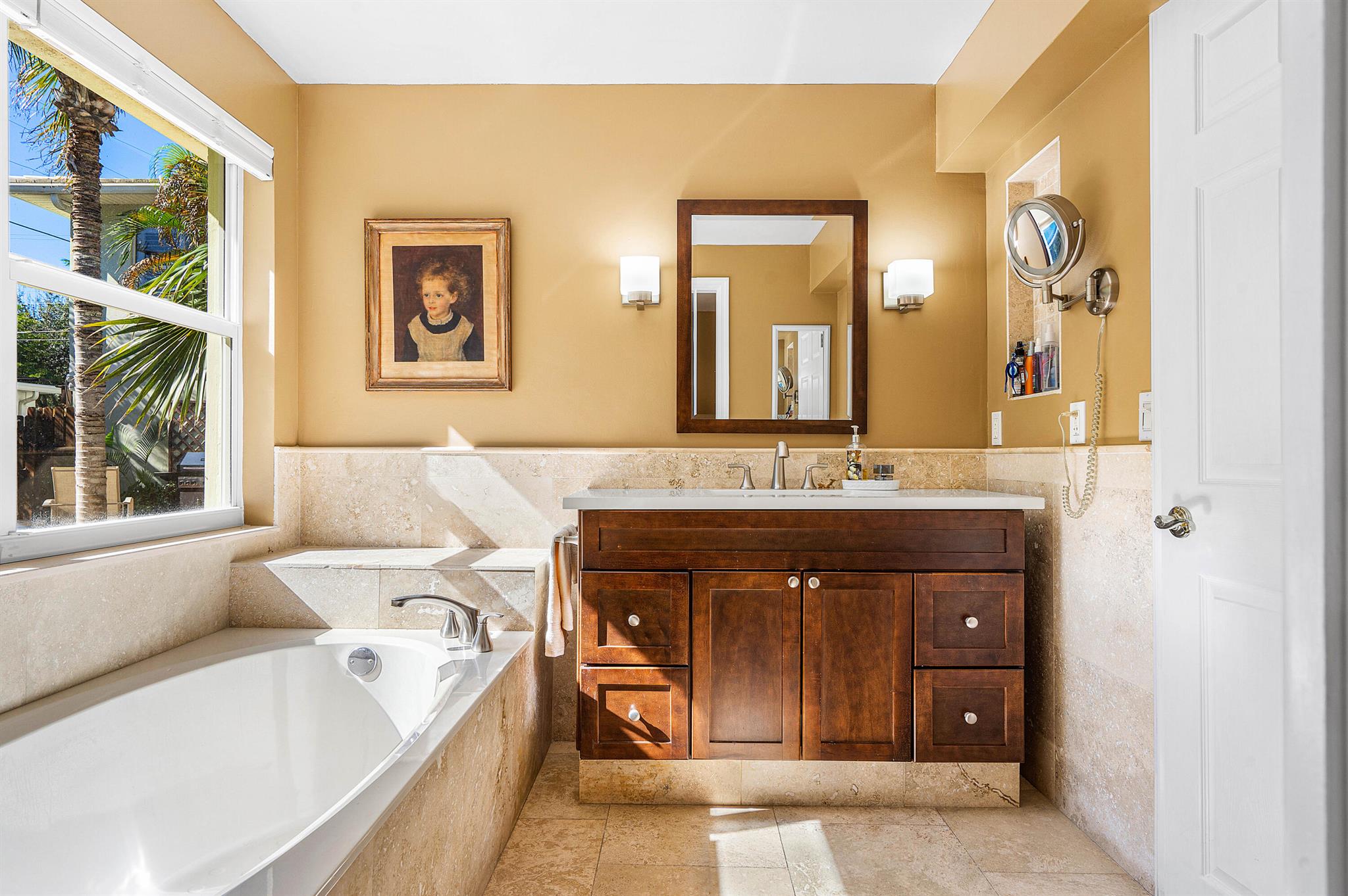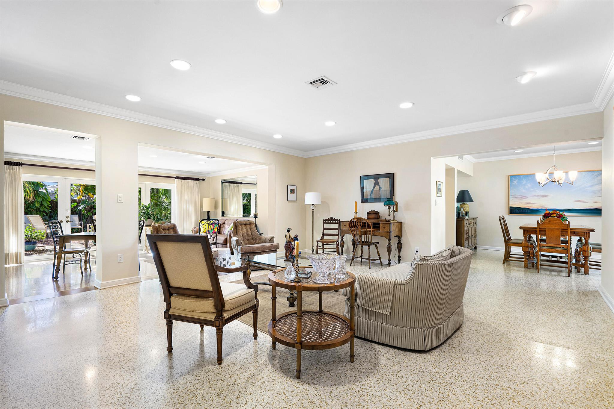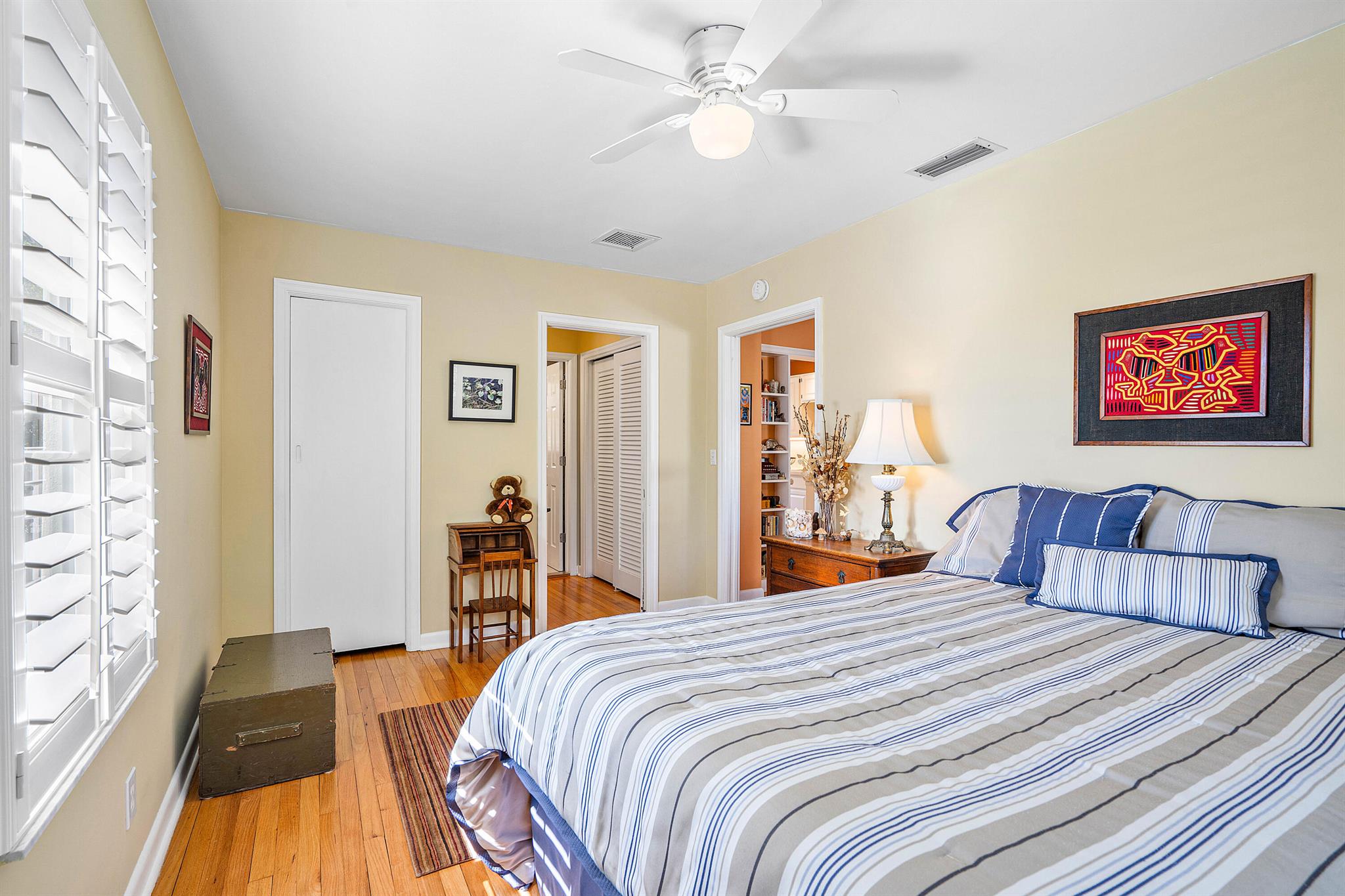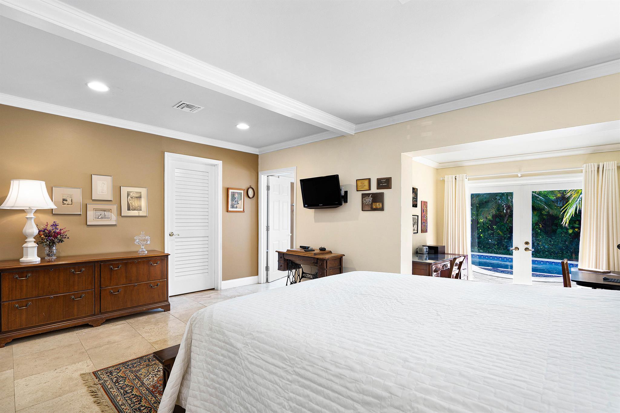 Charming pool home in lake block prime location in SoSo. A corner lot on an attractive street with sidewalks just steps from the Intracoastal Waterway. Convenient to downtown West Palm Beach and Palm Beach, in the South Olive school district. Ground floor primary bedroom suite has it all: walk in closet, en suite bathroom and den/sitting area opening out to the pool area. The home offers a second bedroom with en suite bathroom on ground floor. The upstairs will surprise you, with two bedrooms and bathrooms, a spacious family room and kitchen: perfect for guests, mother-in-law suite, older children. Solid CBS construction, with a cement tile roof, and original terrazzo floors in ground floor living areas. Two-car garage, impact windows and so much more.