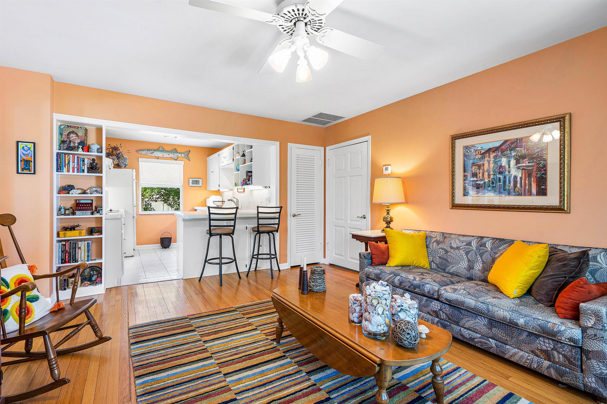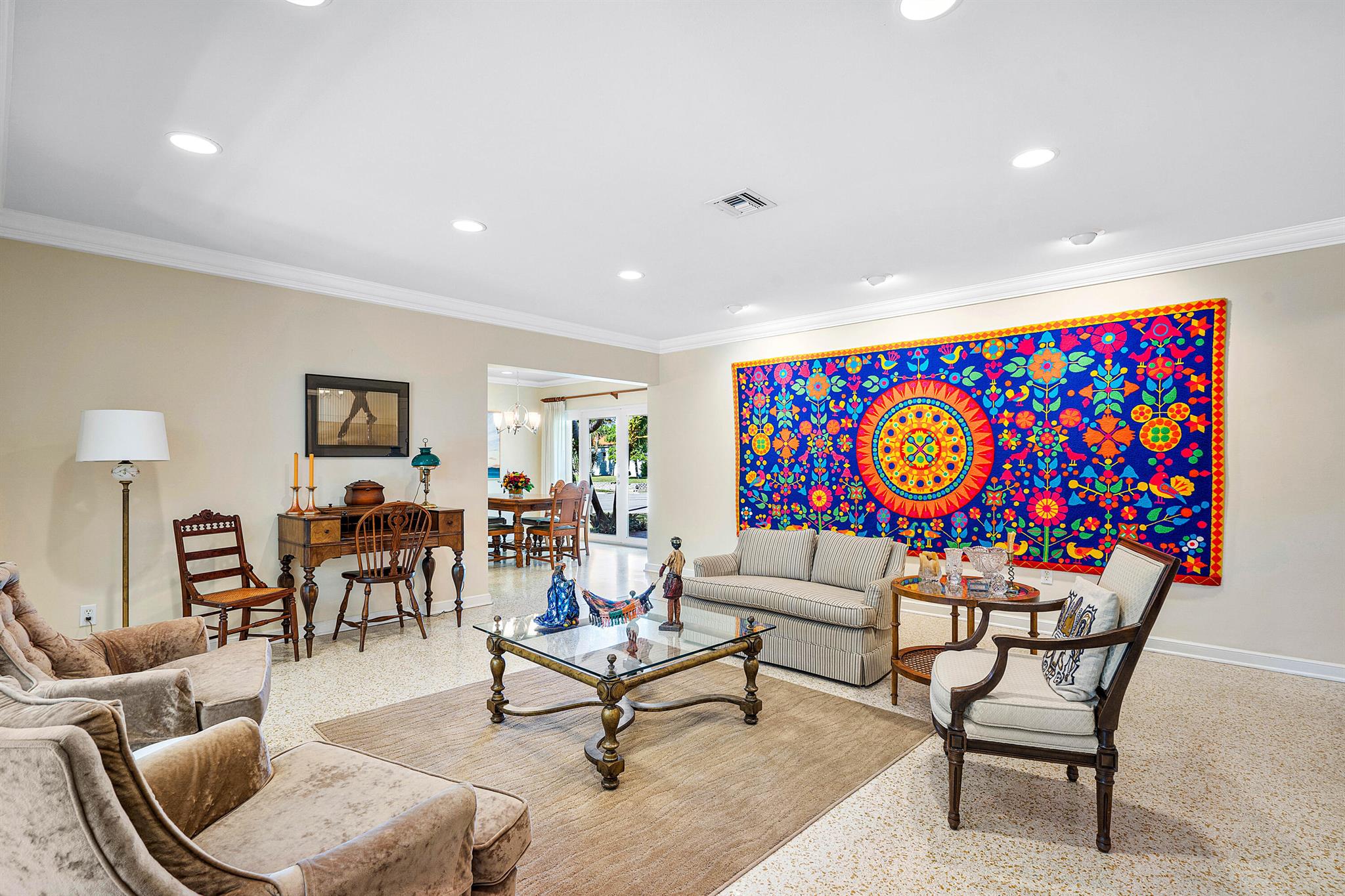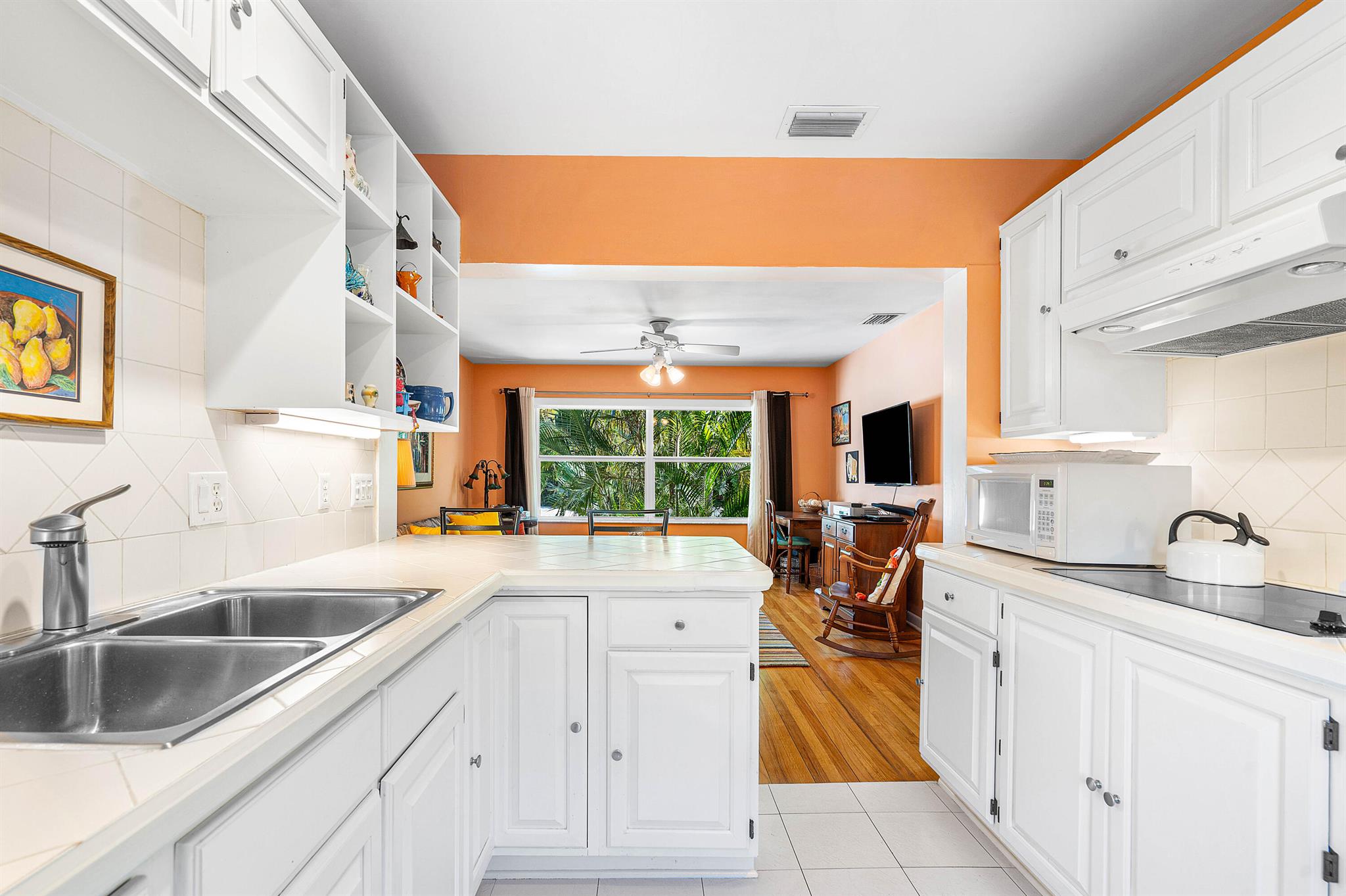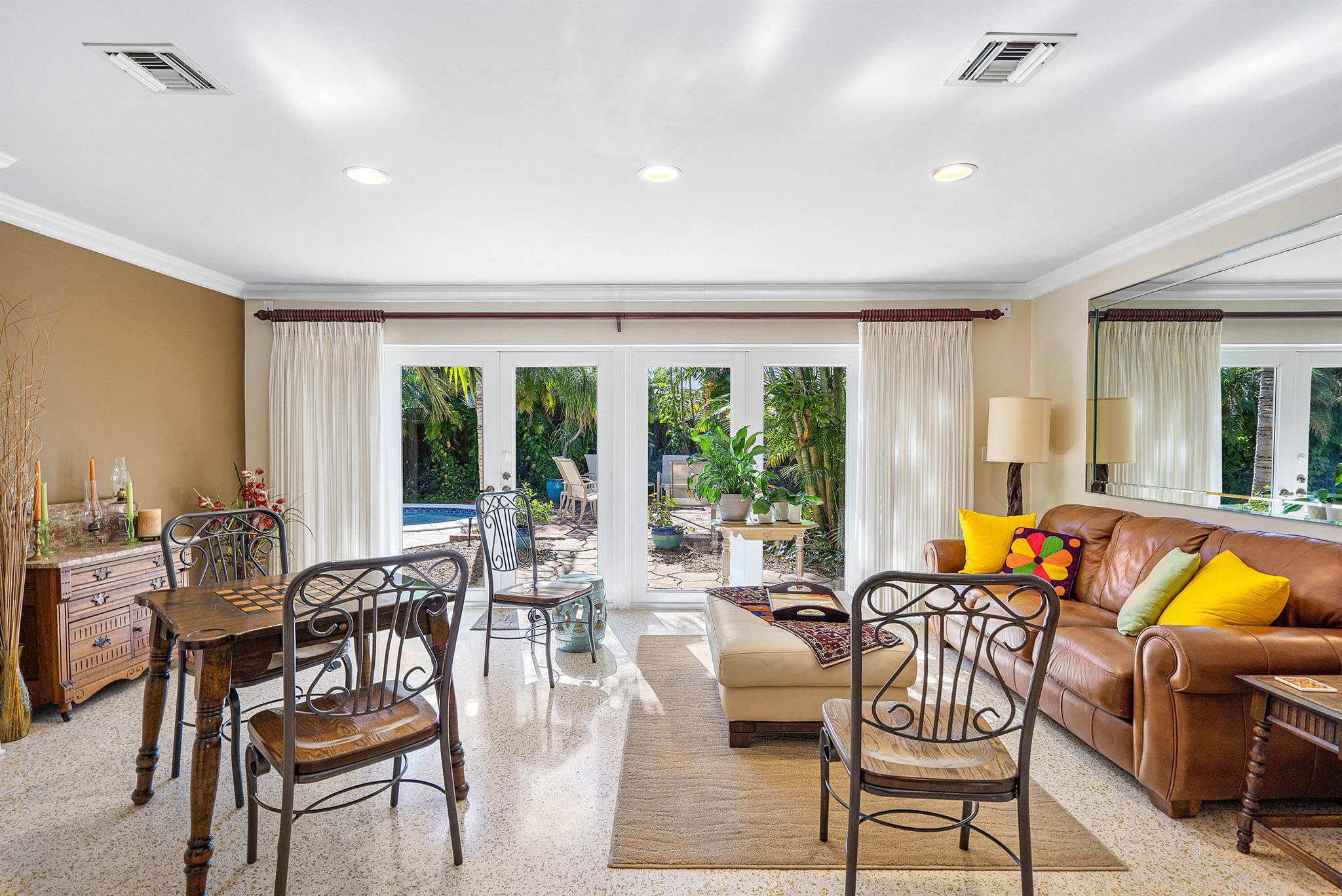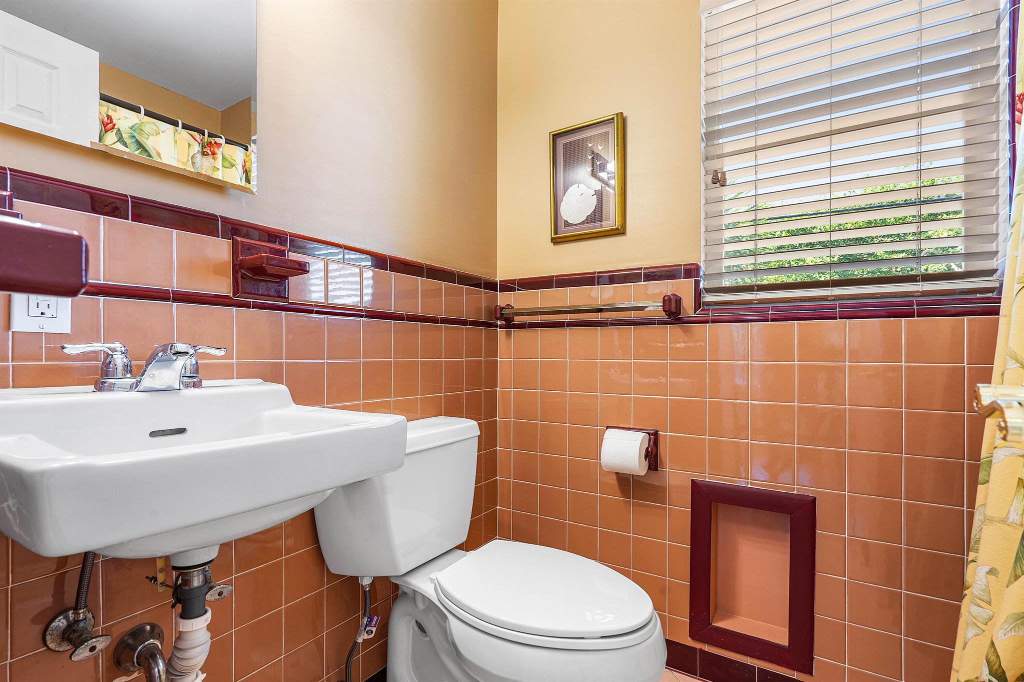 Charming pool home in lake block prime location in SoSo. A corner lot on an attractive street with sidewalks just steps from the Intracoastal Waterway. Convenient to downtown West Palm Beach and Palm Beach, in the South Olive school district. Ground floor primary bedroom suite has it all: walk in closet, en suite bathroom and den/sitting area opening out to the pool area. The home offers a second bedroom with en suite bathroom on ground floor. The upstairs will surprise you, with two bedrooms and bathrooms, a spacious family room and kitchen: perfect for guests, mother-in-law suite, older children. Solid CBS construction, with a cement tile roof, and original terrazzo floors in ground floor living areas. Two-car garage, impact windows and so much more.