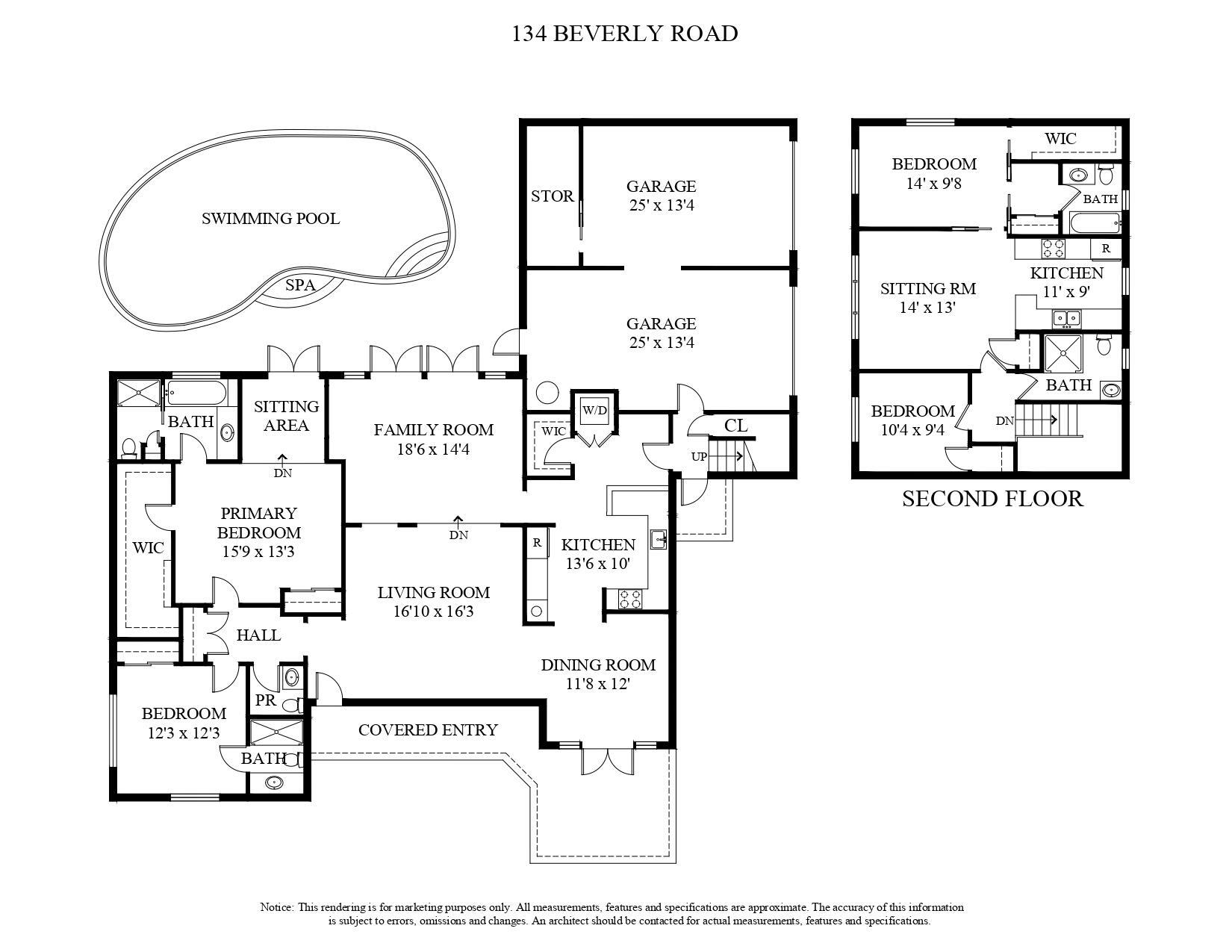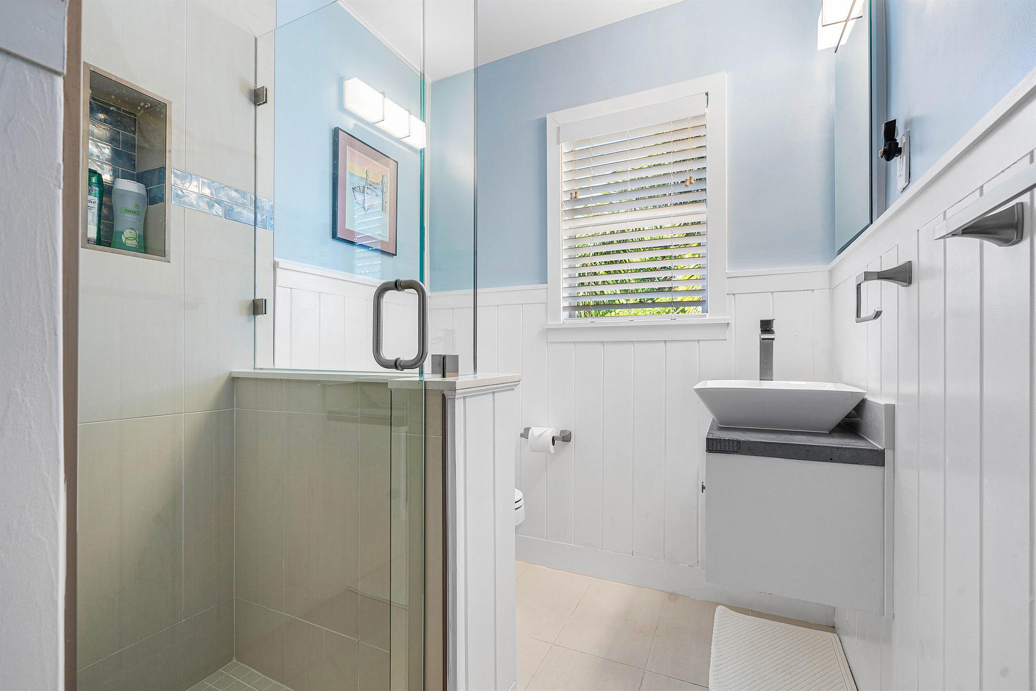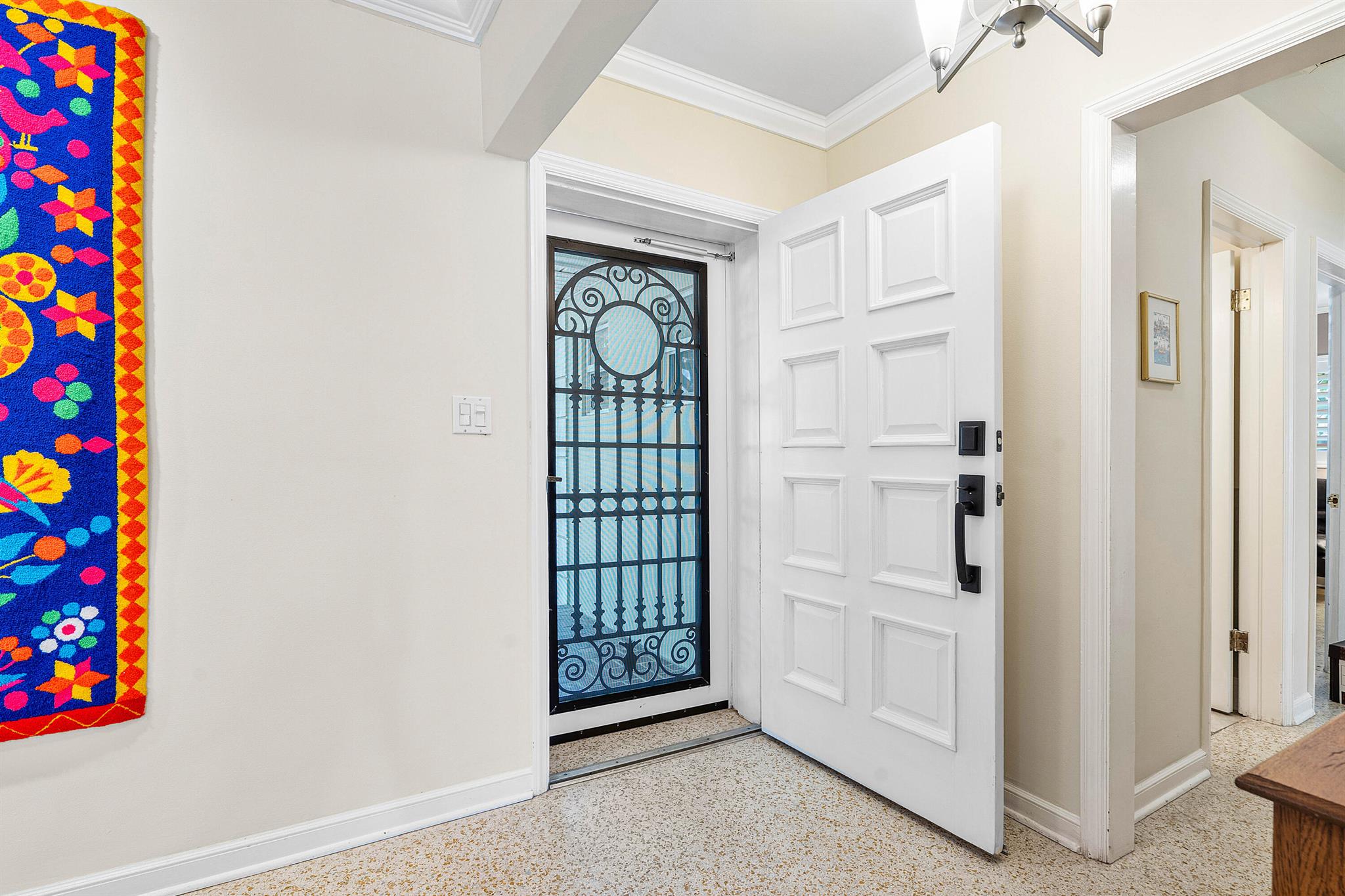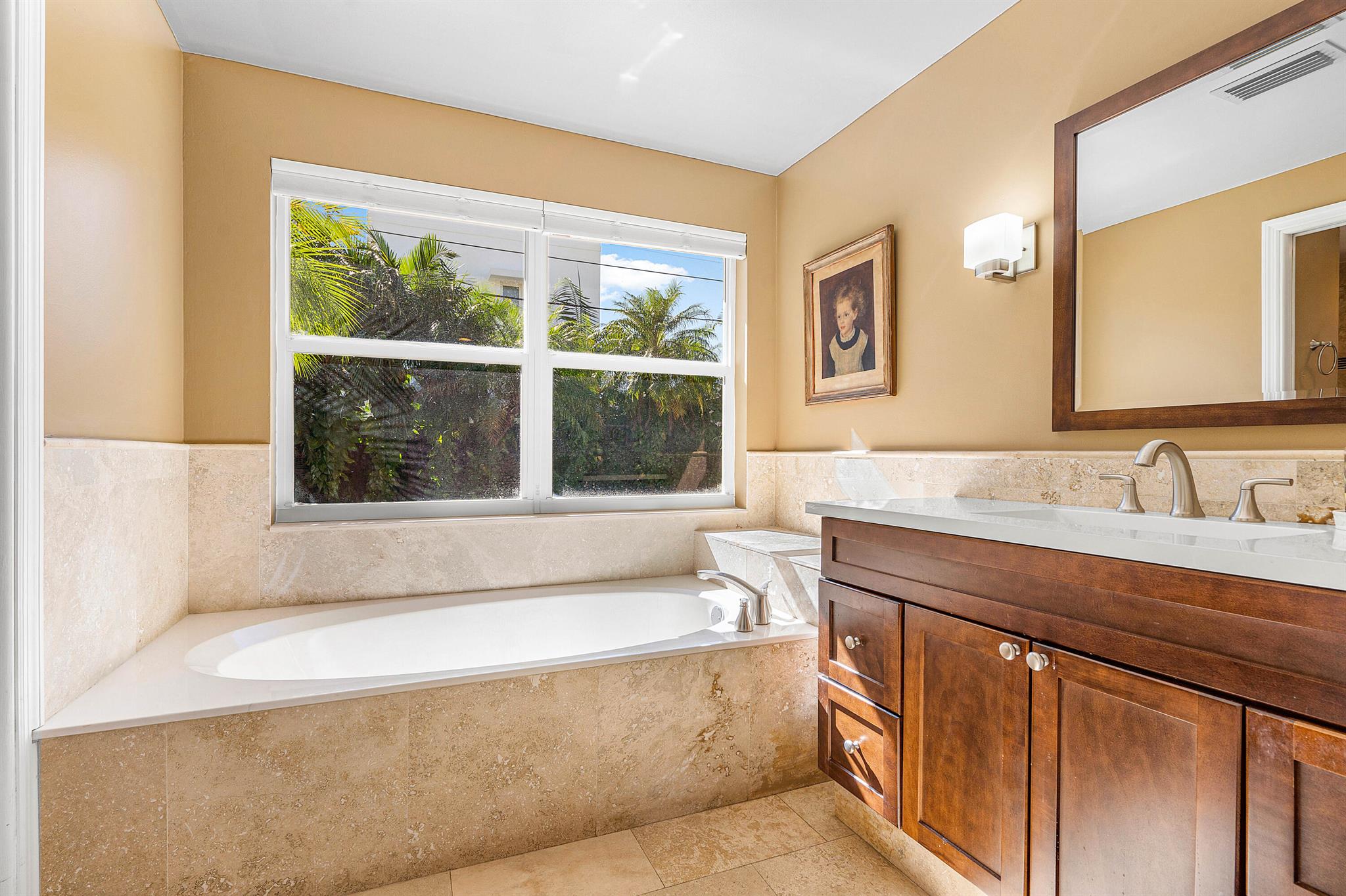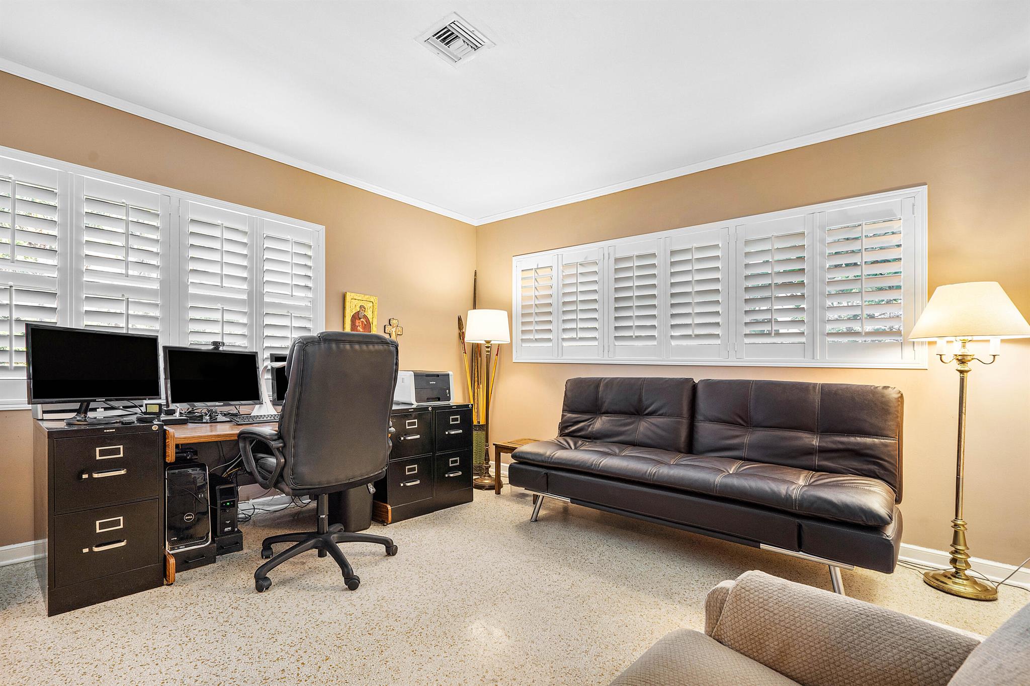 Charming pool home in lake block prime location in SoSo. A corner lot on an attractive street with sidewalks just steps from the Intracoastal Waterway. Convenient to downtown West Palm Beach and Palm Beach, in the South Olive school district. Ground floor primary bedroom suite has it all: walk in closet, en suite bathroom and den/sitting area opening out to the pool area. The home offers a second bedroom with en suite bathroom on ground floor. The upstairs will surprise you, with two bedrooms and bathrooms, a spacious family room and kitchen: perfect for guests, mother-in-law suite, older children. Solid CBS construction, with a cement tile roof, and original terrazzo floors in ground floor living areas. Two-car garage, impact windows and so much more.