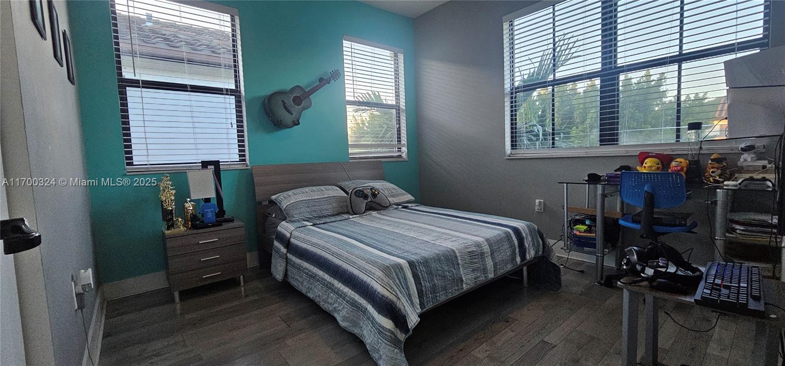 This two-story single-family home features 5 bedrooms and 3.5 bathrooms (1 bed and 1 full bath on the first floor) with a private laundry room on the second floor. The kitchen is equipped with high-end finishes and integrates with the inviting dining and living areas. The kitchenette offers a practical space for quick breakfasts. This single-family home has been meticulously maintained, ready to move in and start making unforgettable memories. The backyard is perfect for summer barbecues, with ample space, ideal for family gatherings. Step into this modern, open-concept home, filled with natural light. Every detail has been thoughtfully designed. The driveway can be widened, and a new modern fence can be installed (the seller has obtained HOA approval). Gated community with low HOA dues.