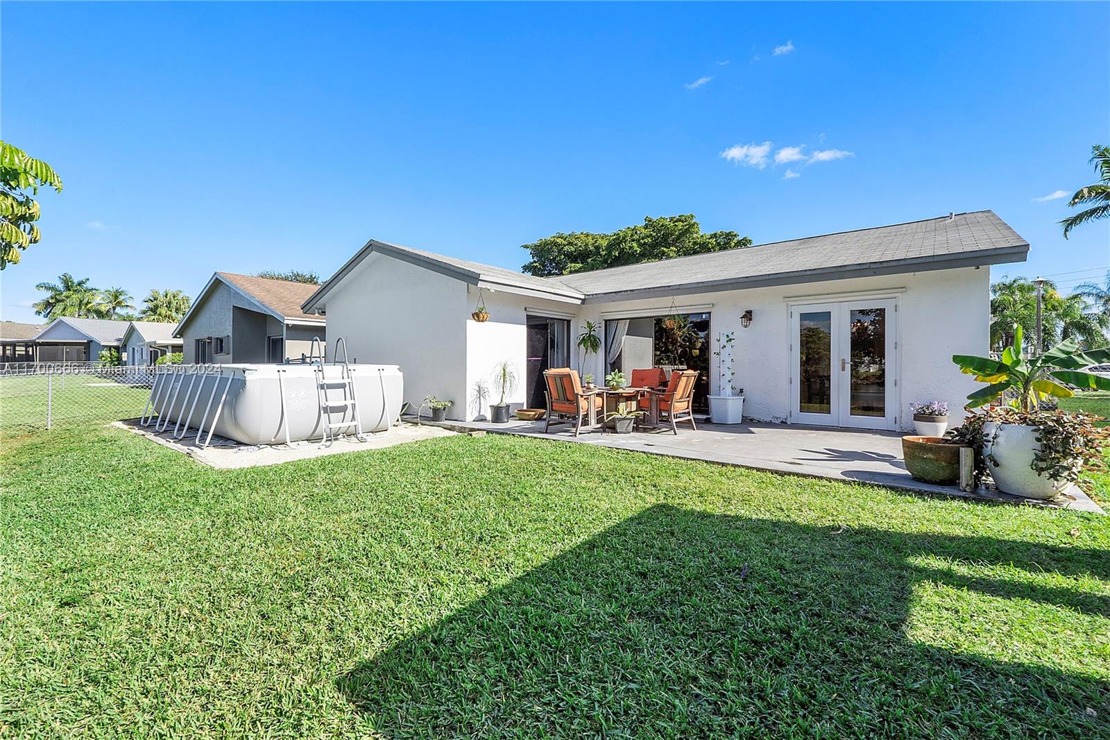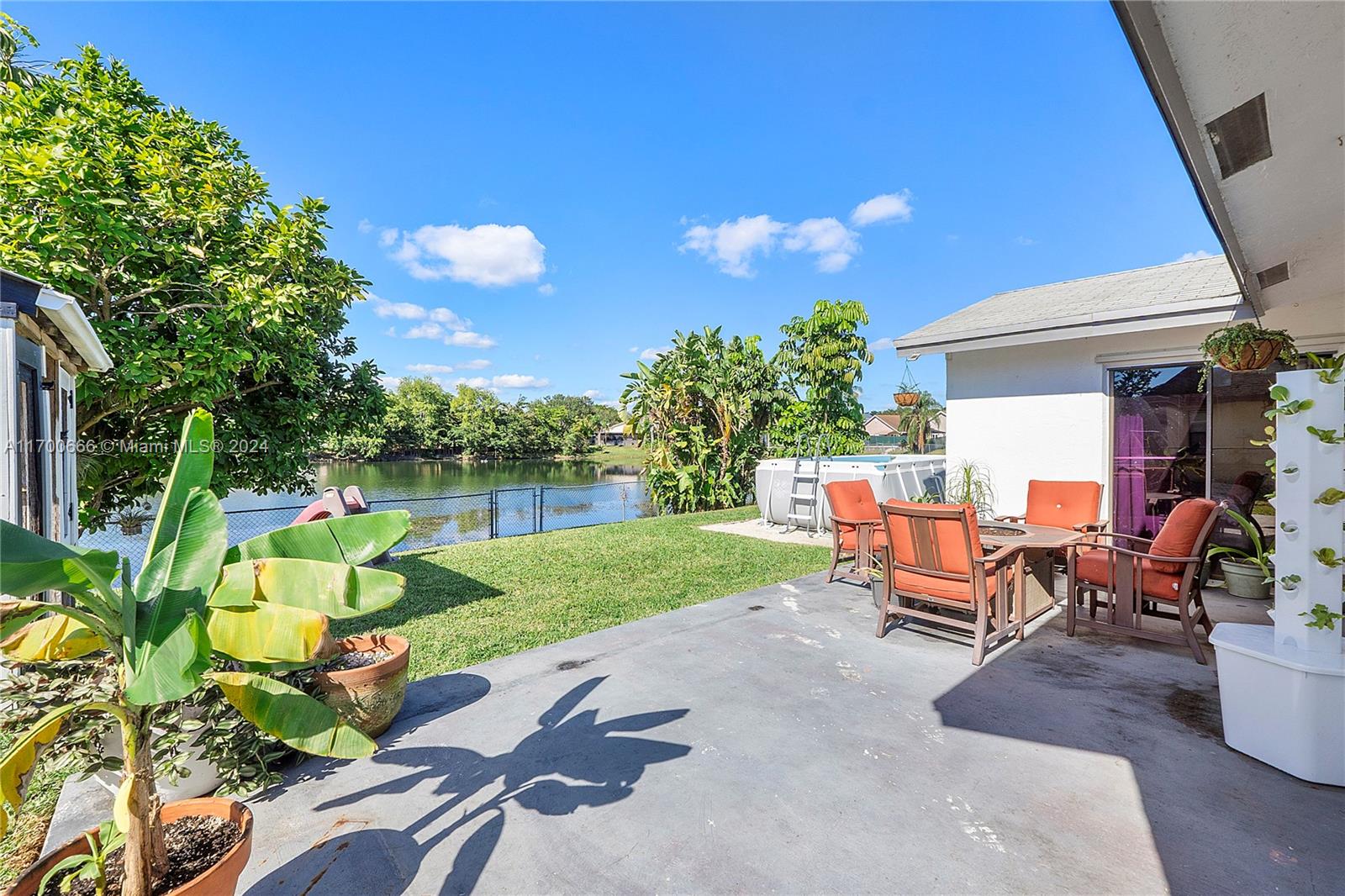 Beautiful 3 Bedroom 2 Bath Waterfront Home With 1 Car Garage And An Above Ground Pool Located In Most Sought After Oakwood At Springtree. This Home Features An Open Split Bedroom Floor Plan. Diagonal Tile In The Common Areas, Wood Look Plank Tile In The Bedrooms. New Kitchen With Stainless Steel Appliances, Quartz Countertops, Copper Sink, Upgraded Faucet, Glass Tile, Backsplash, Breakfast Bar, Lots Of Storage, Recessed, Lighting And Pantry. Impact French Door To Patio. Hurricane Shutters. Vaulted Ceilings. Primary Suite Overlooks Patio And Lake With Walk-in Closet. The Updated En-Suite Bathroom With Tiled Shower And Frameless Enclosure. The Two Other Bedrooms Share Updated Hall Bath With Tub/Shower. Recently Painted Inside And Out. Lavish Landscaped, Fenced Yard With Wide Lake Views.