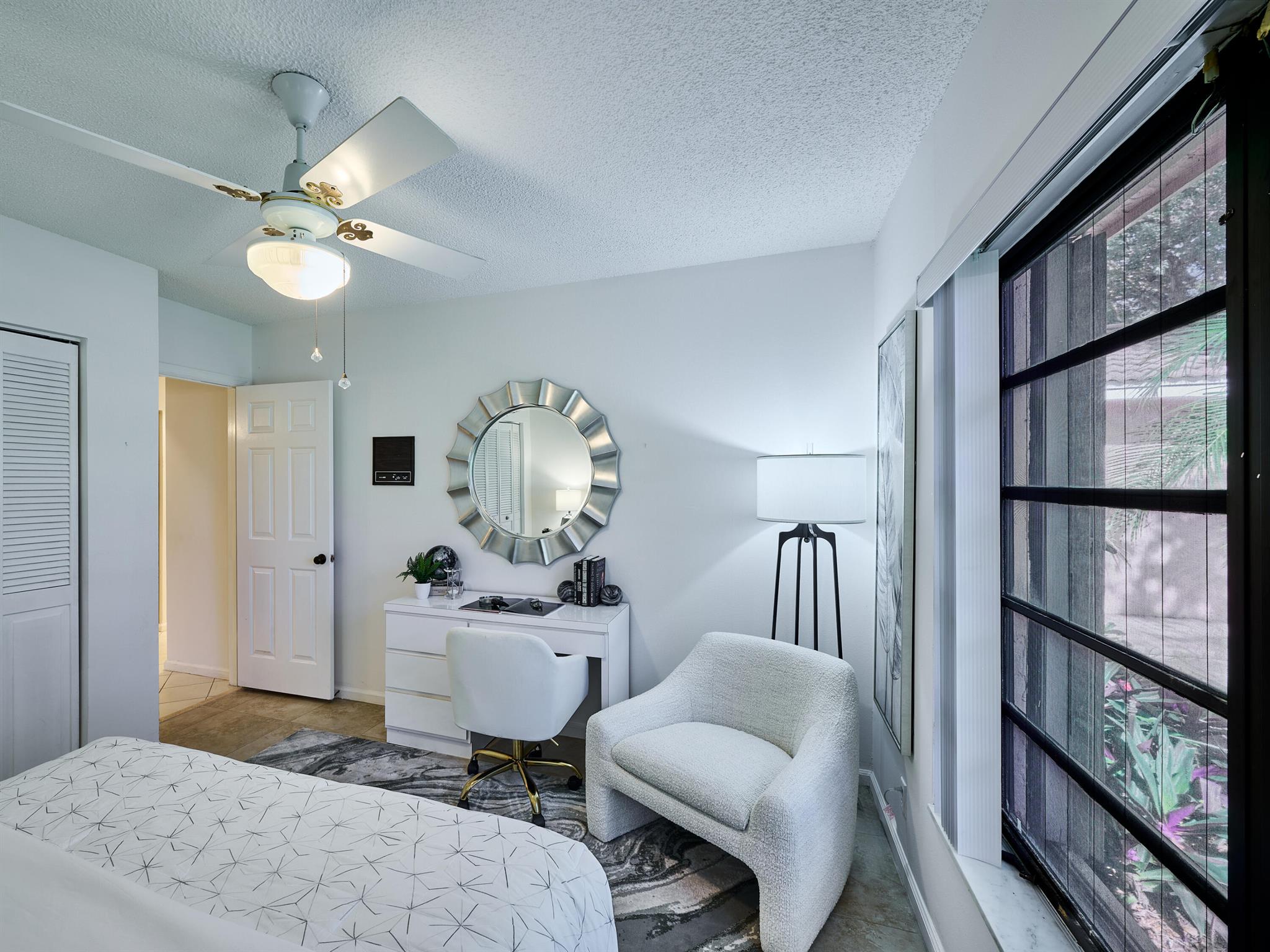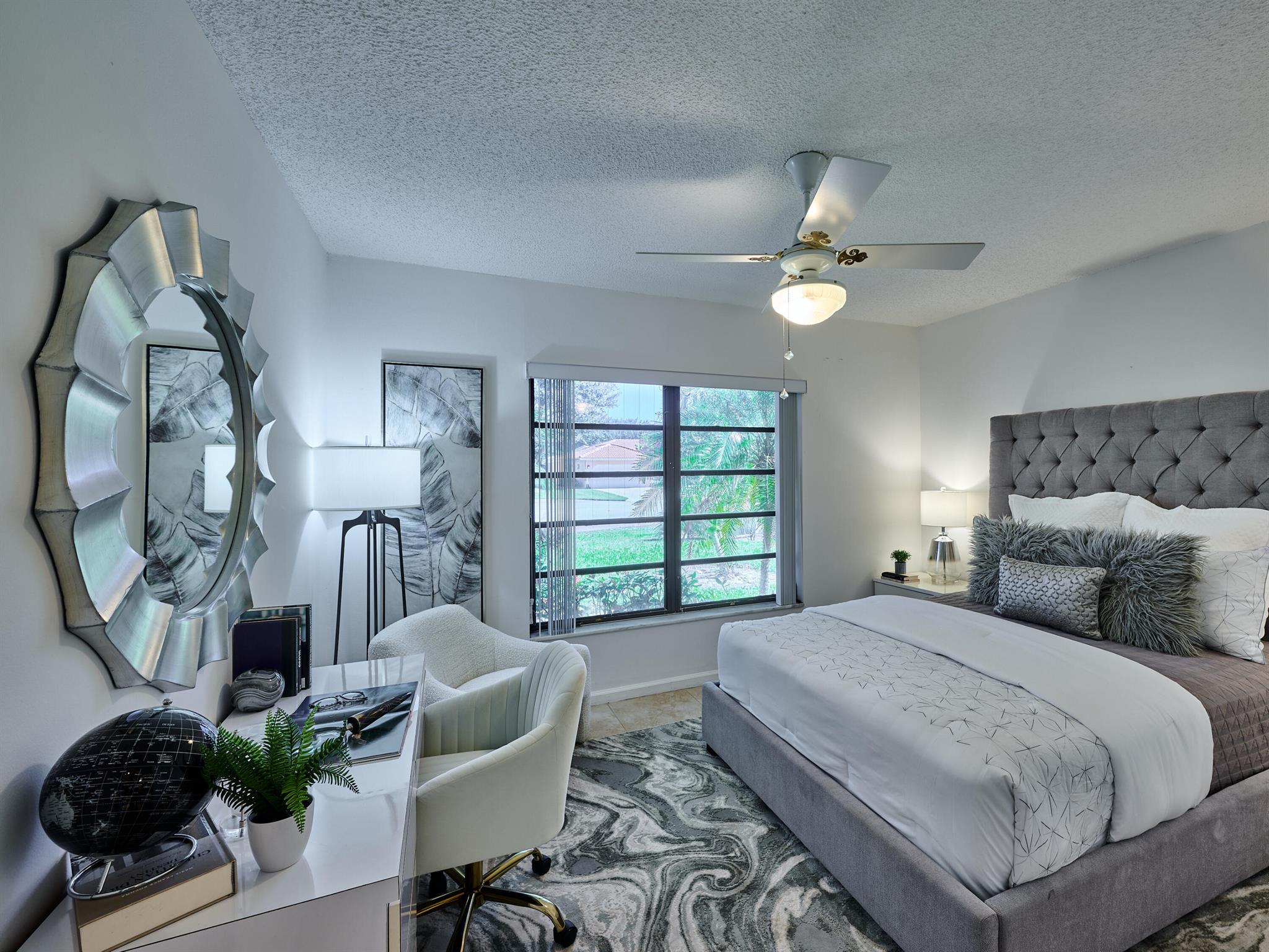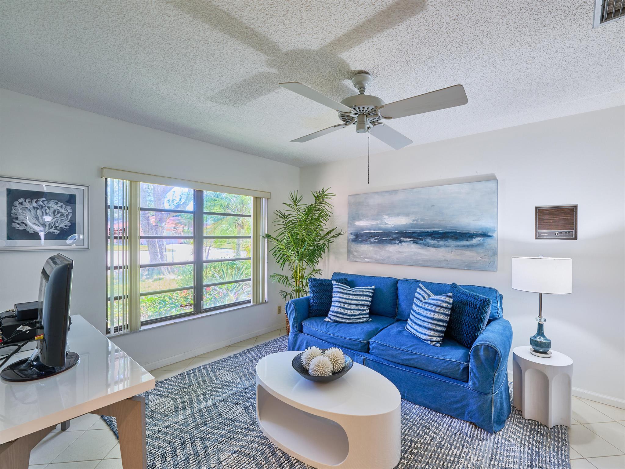 Enjoy carefree living in this open-concept 3-bedroom home with an attached screened porch in the over-55 Colony Woods community in central Boca. The vaulted living room, with a wet bar for effortless entertaining, flows seamlessly into a formal dining area with a pass-through counter to the kitchen. A cozy den with pocket doors and built-in cabinetry serves as the perfect home office, reading nook, or additional bedroom for visiting family and friends. The spacious primary suite has an attached bath with a walk-in closet and double vanity. This fully appliance home has central vac, a laundry room, tiled floors throughout, and a 2-year-old A/C system for worry-free comfort. The 62-home Colony Woods Homeowners' Association has a heated pool; HOA fees cover basic cable, landscaping, and