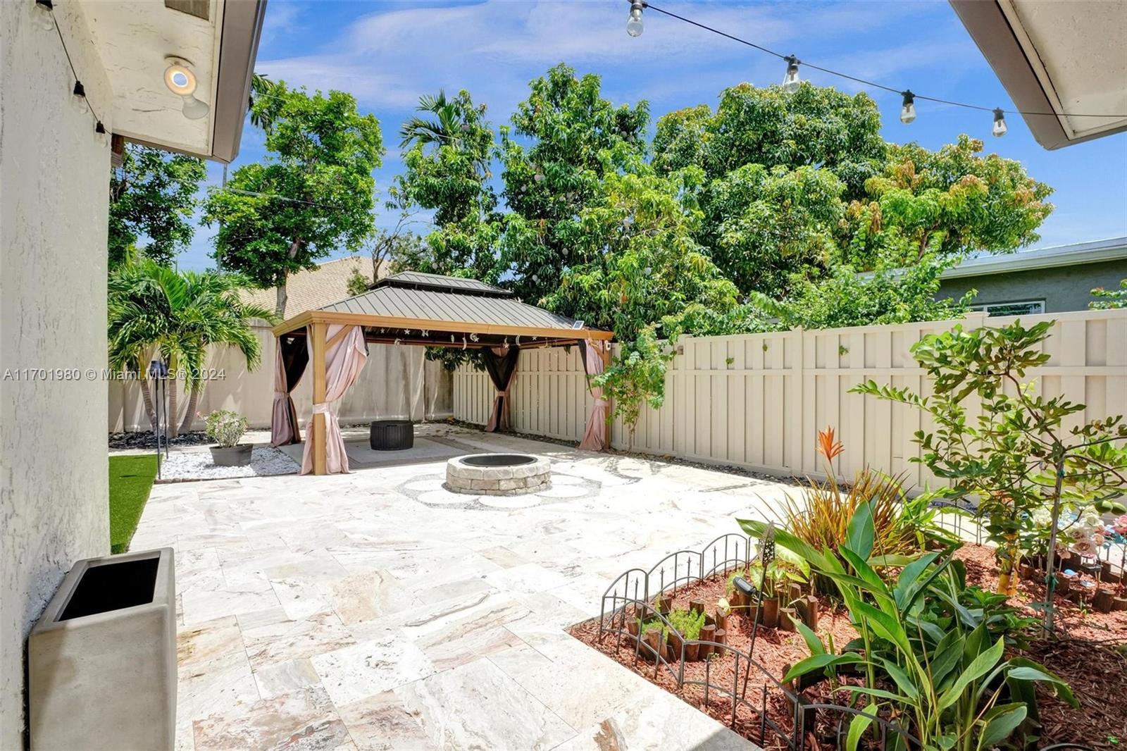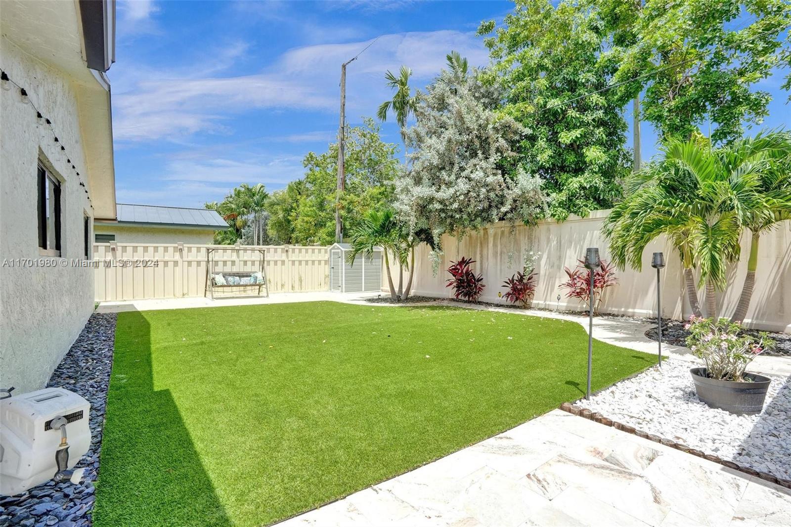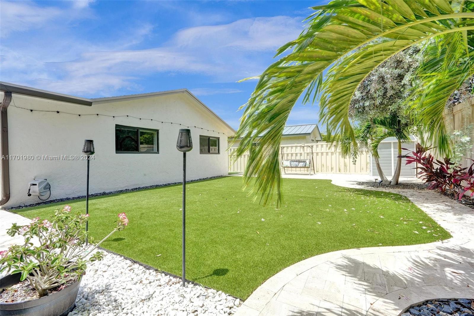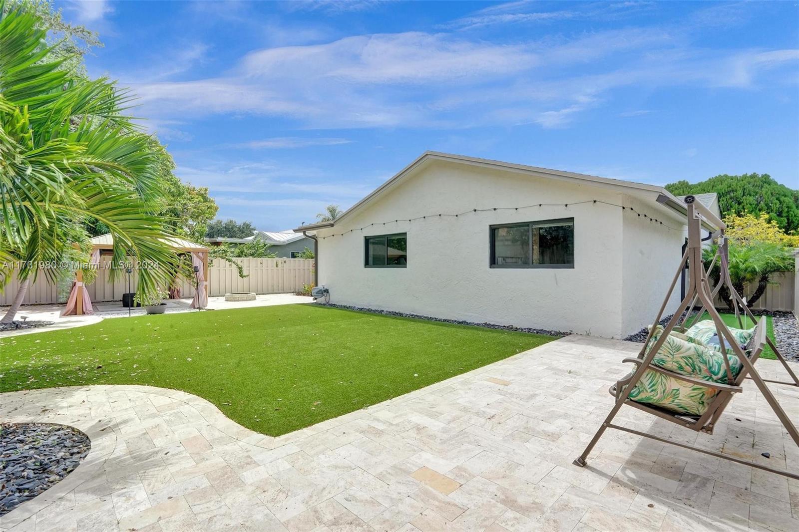Tucked in a quiet street, this beautiful 1 story home featuring a large living area *1,608 Sq Ft per appraisal *Circular driveway *3 bedrooms + BONUS Office/Den *2 bathrooms *Fully renovated inside and out, it boasts *New Impact Windows & Doors * New Kitchen *New luxury vinyl flooring *New porcelain tile *New bathrooms with glass shower enclosures *Recently painted *New tankless water heater *New ceiling fans & lighting. Enjoy the outdoors on the *Covered and Screened patio, with an oversized, fully fenced, and very *Private backyard. Relax in the *Full-Size gazebo *Outdoor shower & hot tub, *Synthetic turf play area, *Putting green, *Fire pit & storage shed. *No HOA or restrictions *Not in a flood zone *Minutes from parks, shopping, and highways. Make this dream home yours!