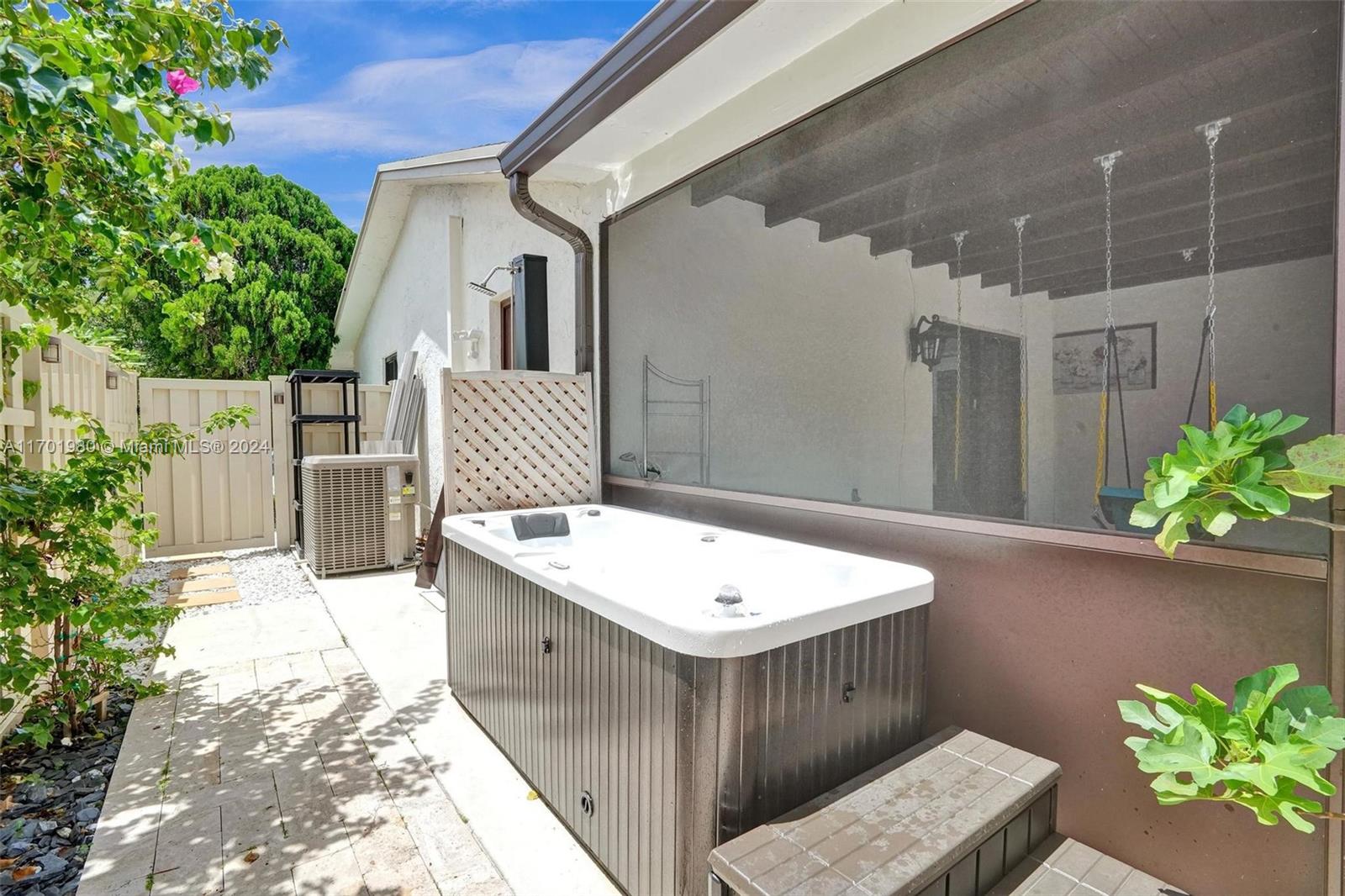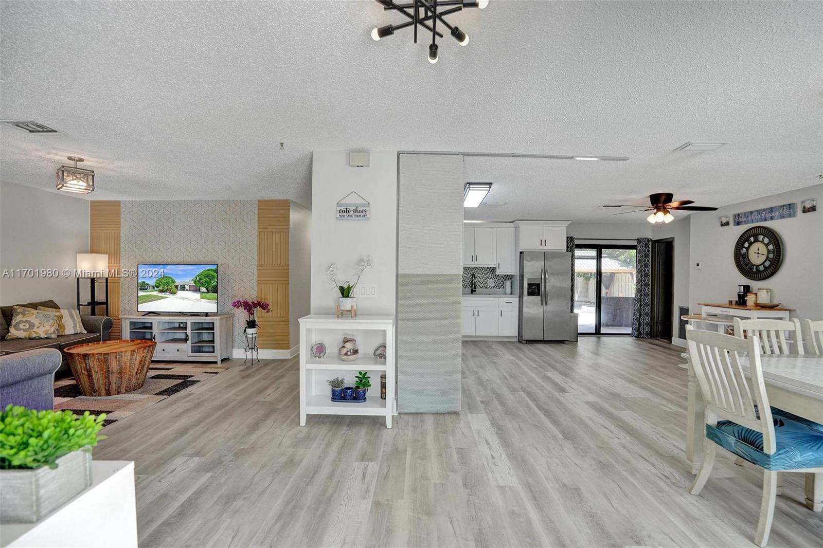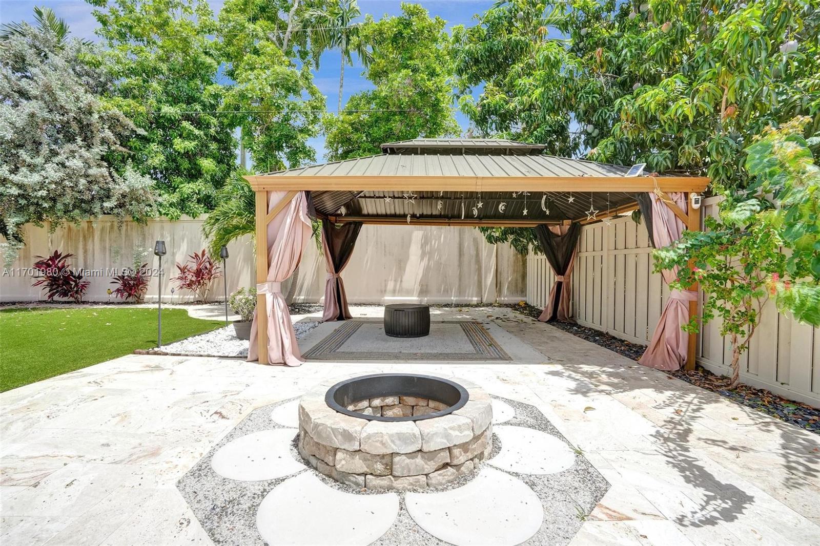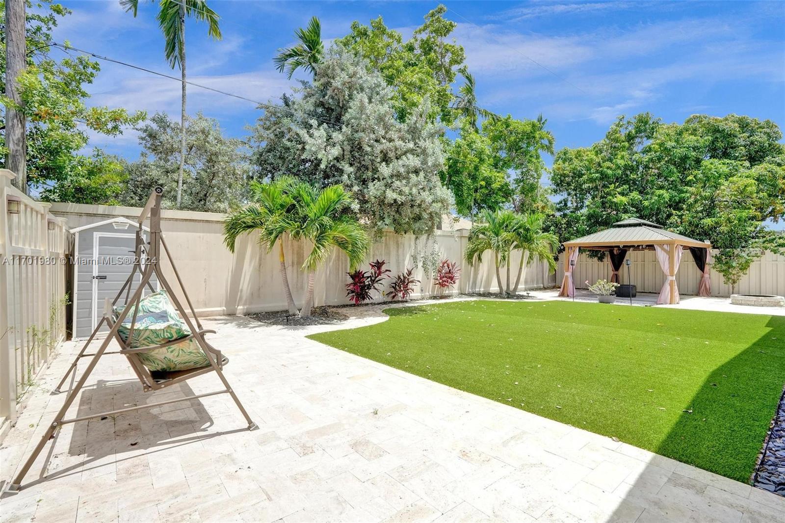 Tucked in a quiet street, this beautiful 1 story home featuring a large living area *1,608 Sq Ft per appraisal *Circular driveway *3 bedrooms + BONUS Office/Den *2 bathrooms *Fully renovated inside and out, it boasts *New Impact Windows & Doors * New Kitchen *New luxury vinyl flooring *New porcelain tile *New bathrooms with glass shower enclosures *Recently painted *New tankless water heater *New ceiling fans & lighting. Enjoy the outdoors on the *Covered and Screened patio, with an oversized, fully fenced, and very *Private backyard. Relax in the *Full-Size gazebo *Outdoor shower & hot tub, *Synthetic turf play area, *Putting green, *Fire pit & storage shed. *No HOA or restrictions *Not in a flood zone *Minutes from parks, shopping, and highways. Make this dream home yours!
