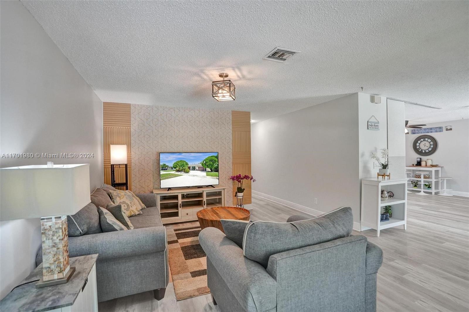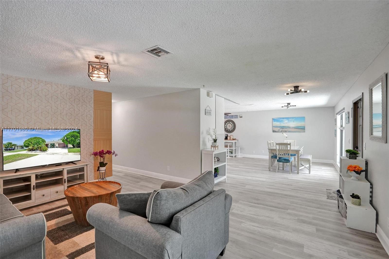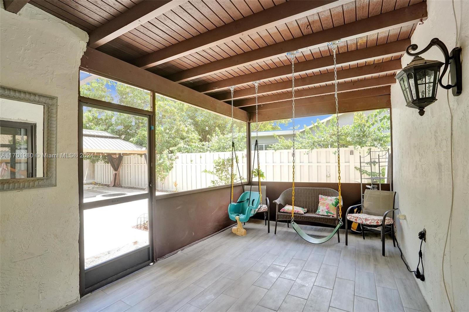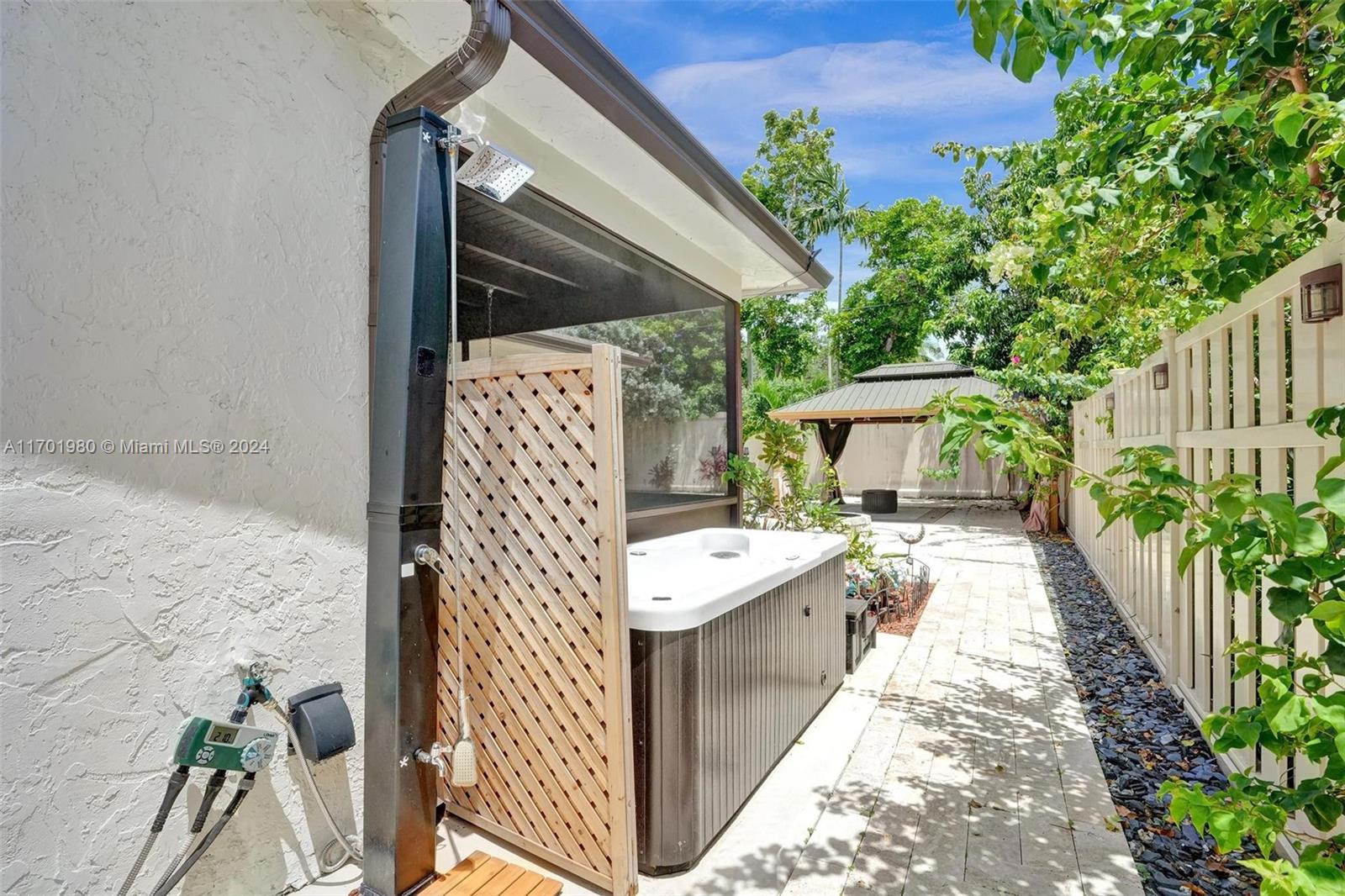 Tucked in a quiet street, this beautiful 1 story home featuring a large living area *1,608 Sq Ft per appraisal *Circular driveway *3 bedrooms + BONUS Office/Den *2 bathrooms *Fully renovated inside and out, it boasts *New Impact Windows & Doors * New Kitchen *New luxury vinyl flooring *New porcelain tile *New bathrooms with glass shower enclosures *Recently painted *New tankless water heater *New ceiling fans & lighting. Enjoy the outdoors on the *Covered and Screened patio, with an oversized, fully fenced, and very *Private backyard. Relax in the *Full-Size gazebo *Outdoor shower & hot tub, *Synthetic turf play area, *Putting green, *Fire pit & storage shed. *No HOA or restrictions *Not in a flood zone *Minutes from parks, shopping, and highways. Make this dream home yours!