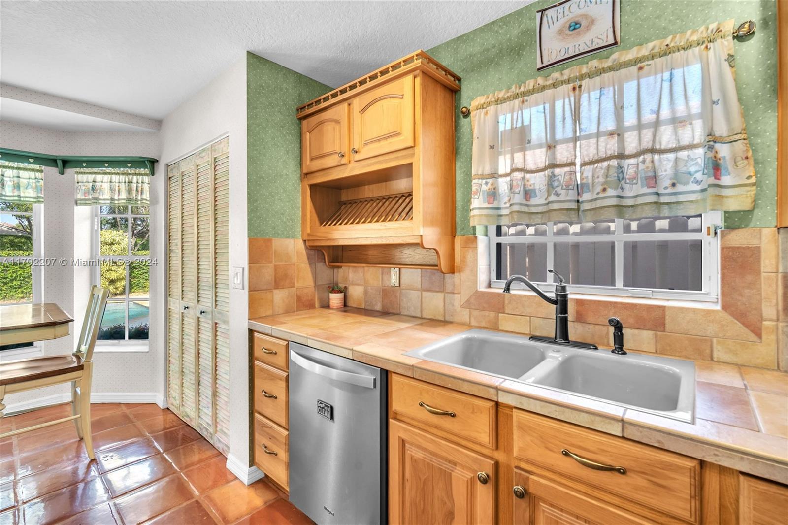 WOW!! 4BR/2.5BA + den, 2-car garage, private fenced backyard w/extended lanai, beautiful waterfall & oversized sparkling POOL! Boasting high ceilings, ample natural sunlight, & tile through main living areas. Charming feel w/Chicago brick walls, wainscoting, knockdown ceilings & large kitchen w/Hickory wood cabinets and newer SS appliances. Large primary bedroom on 1st floor w/private access to back patio, 2 large walk-in closets,& beautifully updated ensuite w/dual sinks, separate walk-in shower & relaxing tub.Upstairs 3 spacious bedrooms w/laminate floor, den used as office,& updated bathroom.Huge backyard oasis perfect for entertaining! Pool resurfaced (2021)pool pump motor(2024),AC(2019).Complete hurricane protection. Close to 595, Sawgrass EPWY, Amerant Arena, Dining, shopping & more!