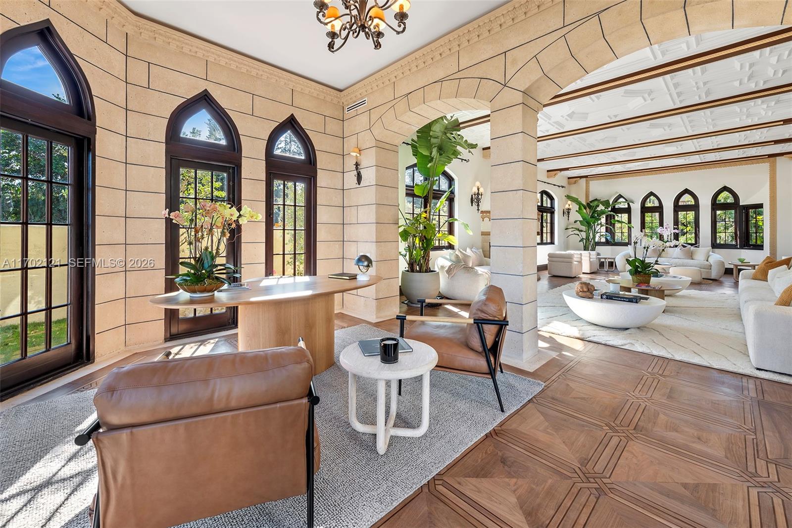 Perfectly nestled in the estates of Palm Island, a Mediterranean marvel with over 15K total SF of living space has been masterfully restored. Maintaining original architectural features, the estate boasts modern, state-of-the-art amenities + technology. Sprawling over 30K SF of lush grounds with exotic trees, fountains and 100’ unobstructed waterfront, multiple scenic outdoor lounging+entertaining areas abound,including a rooftop and private deck over the water. The mansion offers 6beds 7/2bths, office, insolated movie theater, grand saloon, formal dining, cognac rm & art gallery. Chef's kitchen features 3 Wolf gas ranges+Subzero appl, enormous island, family room and 2nd dining. The guest villa has a Turkish hammam/sauna, jacuzzi,massage+gym. 2nd fl 3/2.5 living/dining/kitchen 2 elevators