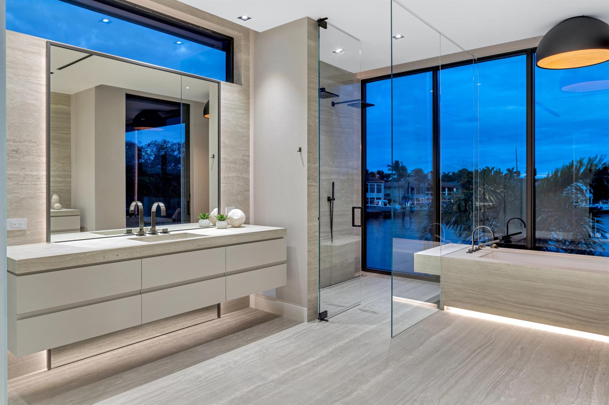 New Orchid Point Intracoastal estate sited on 230 +/- feet of waterfrontage with side protected yacht dockage in a ''no wake zone'' capturing stunning panoramic views by Jag Development, In-Site Design Group & interiors by Farache Bromberg Design Studio. Front Row views blend with modern architecture from all major rooms include floor/ceiling window walls, bleached oak flooring and organic wood detailing. Primary suite boasts a sitting room, Spa-like bath, dual boutique closest & waterfront covered balcony. Resort-like entertainment patio with infinity-edge pool/ spa, sun shelf and lanai with summer kitchen. Other amenities include a new home built above required FEMA elevation. 230'+/- of newly constructed seawall & cap with new 80'+/- concrete dock. an expansive auto plaza & 3 bay garage