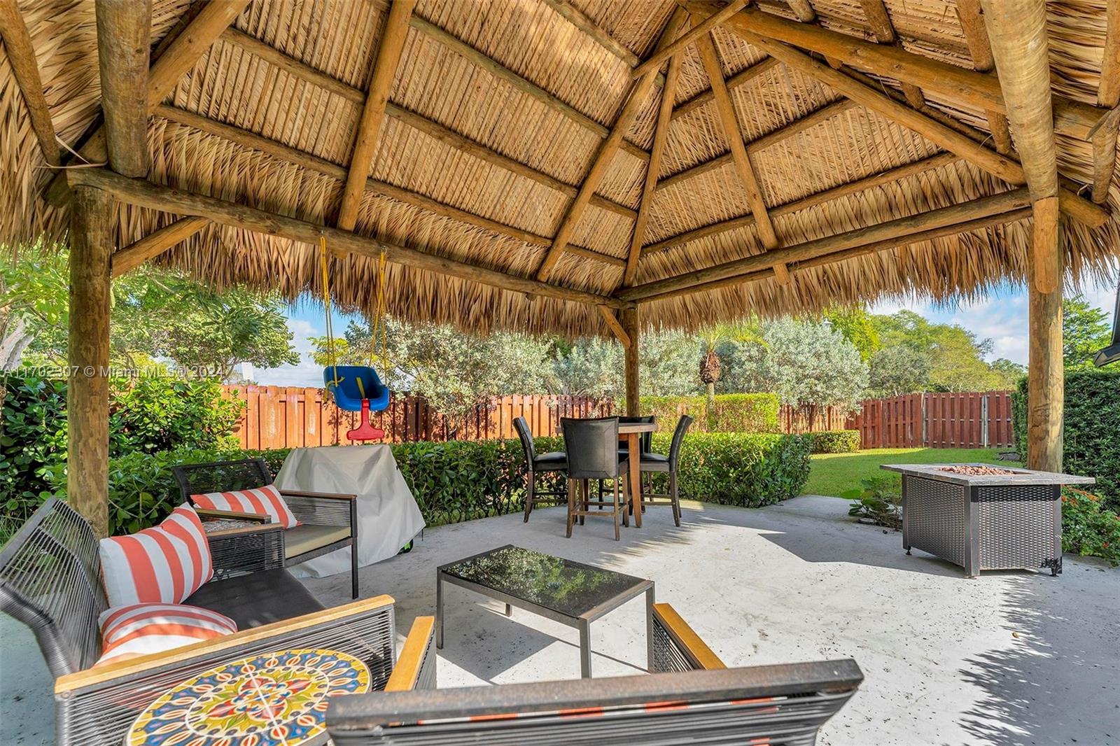 Experience the charm of this stunning farmhouse home. You'll be welcomed by its captivating curb appeal & a newer roof that from 2019. As you enter the home has cedar vaulted ceilings that enhance the spacious open floor plan, while large impact windows showcase natural light & highlight the pool & gardens in the home. The primary suite comes with double sinks, dual shower heads, & direct access to the pool area. Each room features custom closet furniture & blackout shades. The kitchen is a chef's dream, offering storage & multiple prep surfaces, making it the heart of this home. Step outside to discover a brand new tiki hut surrounded by serene zen gardens—ideal for family gatherings and entertaining. This home is a perfect blend of comfort and style, ready to welcome your family