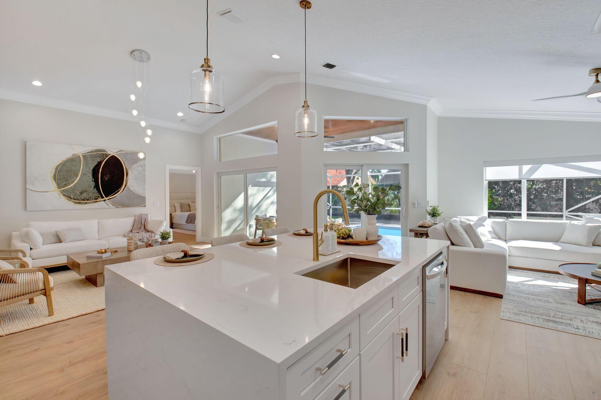 Discover the ultimate in elegant living in this rarely available, totally RENOVATED and completely FURNISHED estate home!As you step into this 4-bedroom, 2-bathroom home, you'll be greeted by an expansive open-concept design that seamlessly integrates the living room, dining room, kitchen, and family room. The interior showcases impeccable craftsmanship, from solid wood doors to brand-new hurricane-impact windows and sophisticated finishes. The heart of the home is the gourmet kitchen, featuring an oversized island, brand-new stainless steel appliances, and ample space for culinary creations. Adjacent to the kitchen, the laundry room impresses with a new washer, dryer, sink, and a thoughtfully designed butler's pantry.