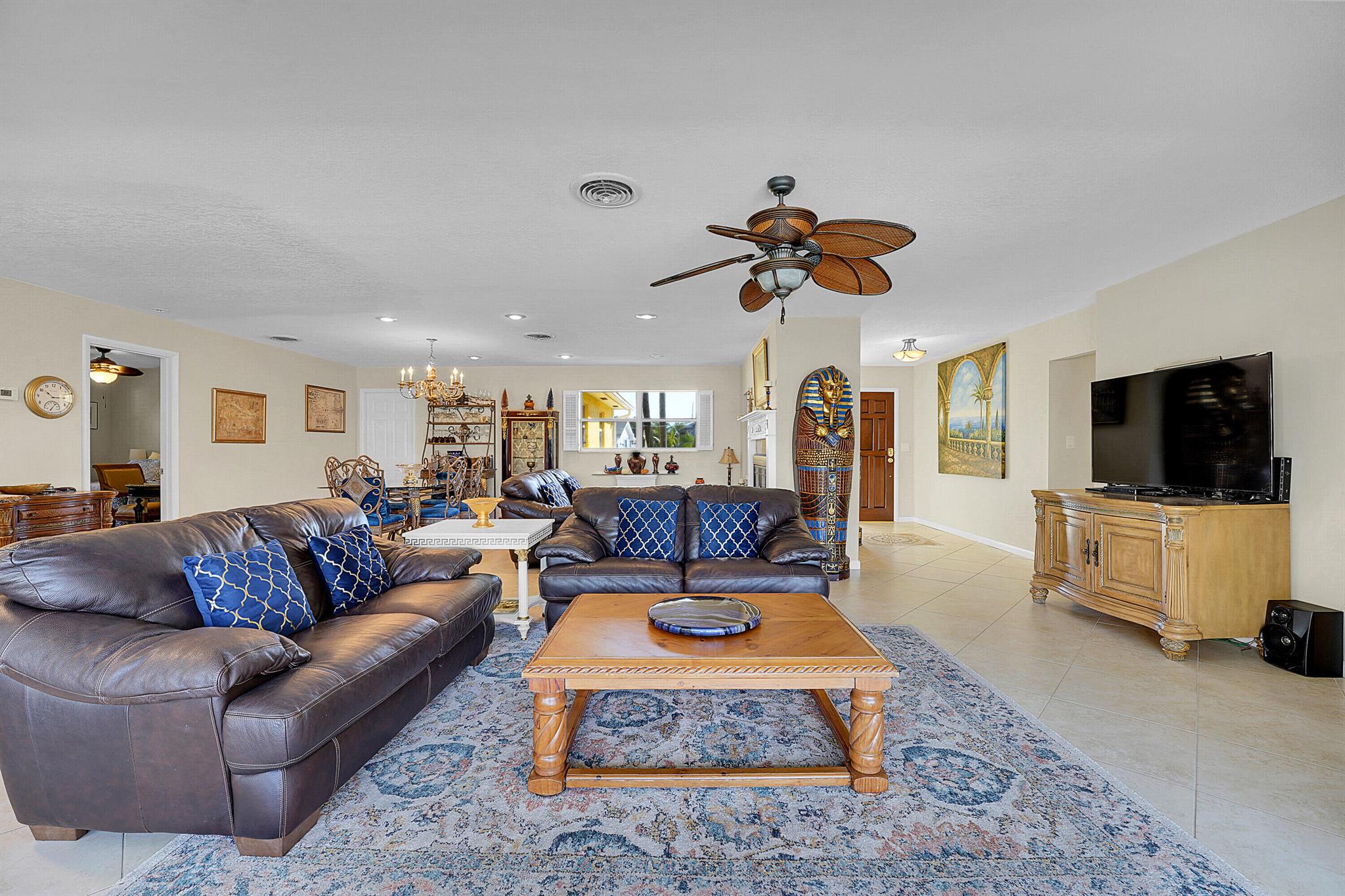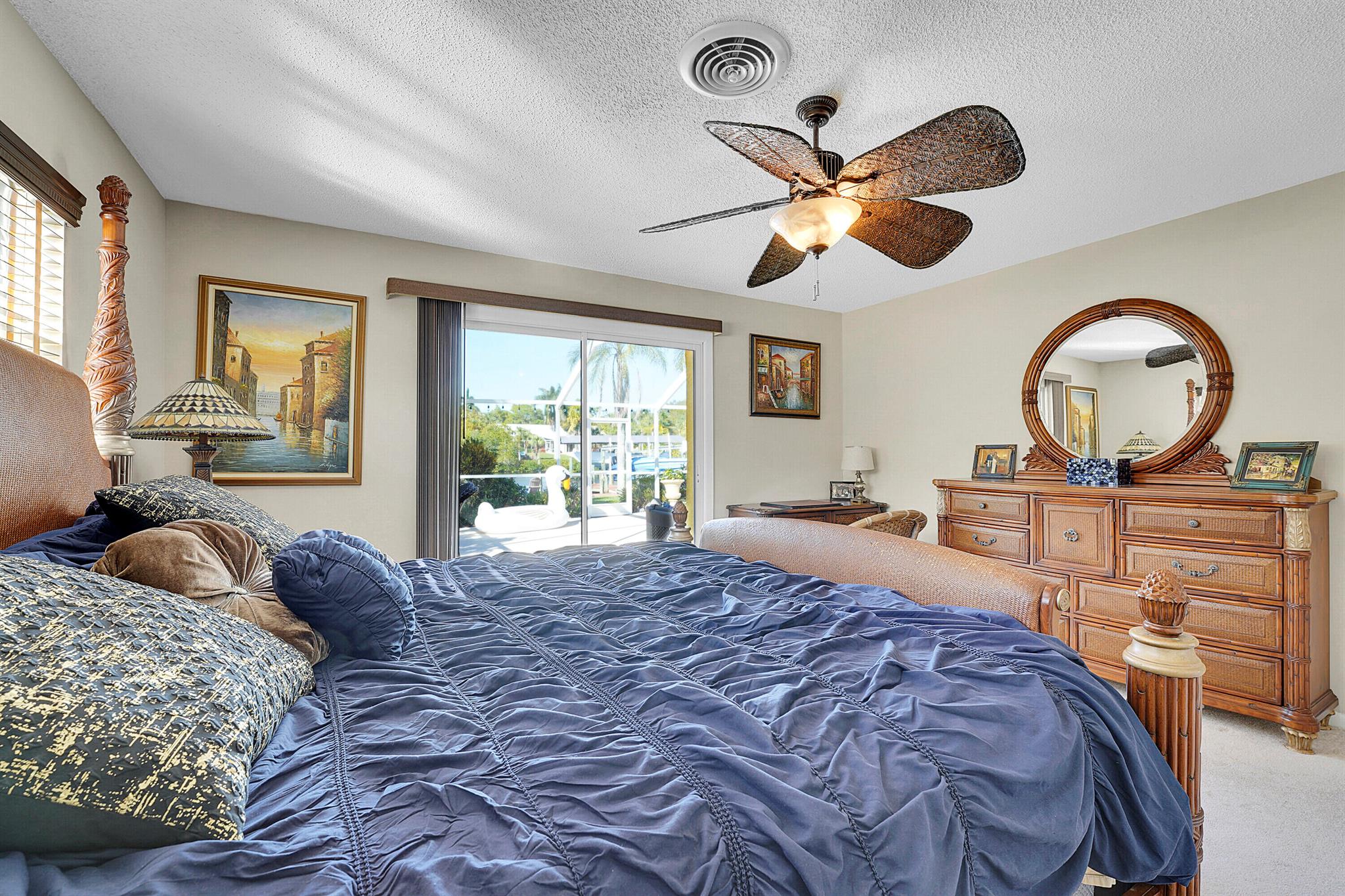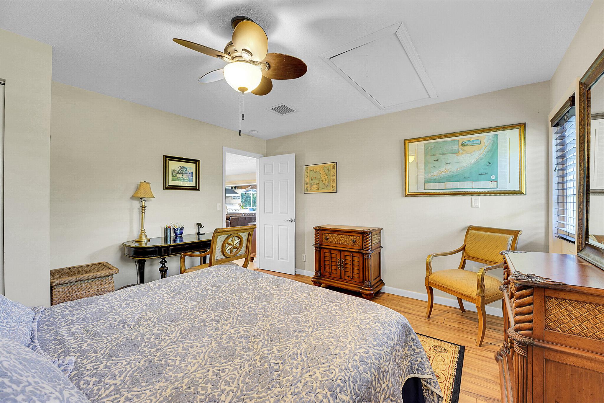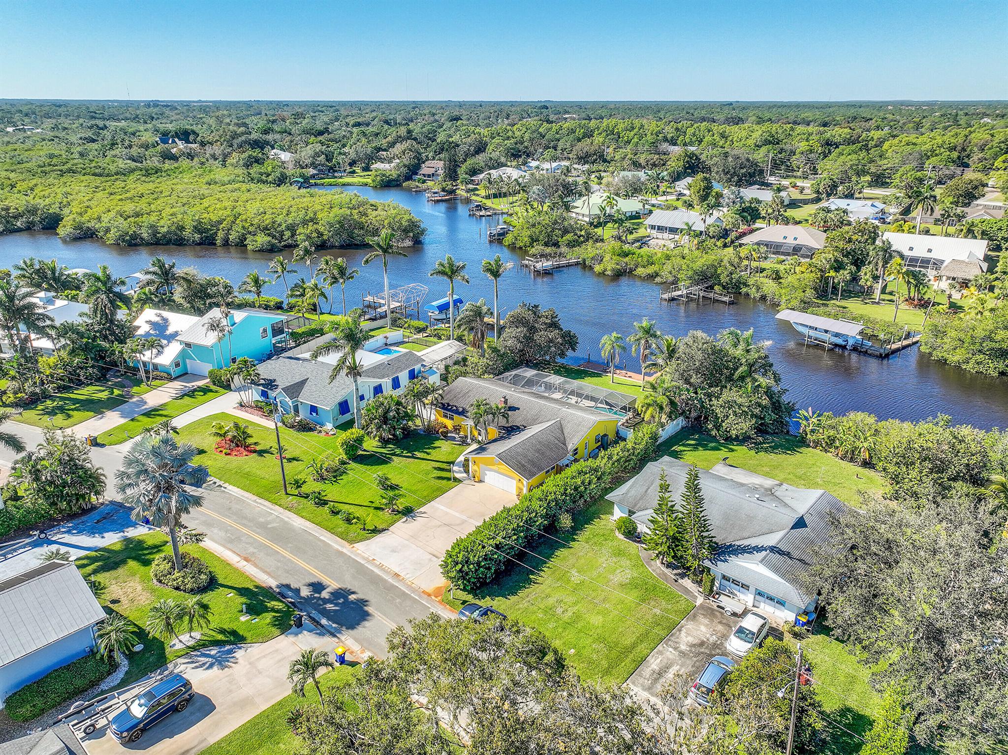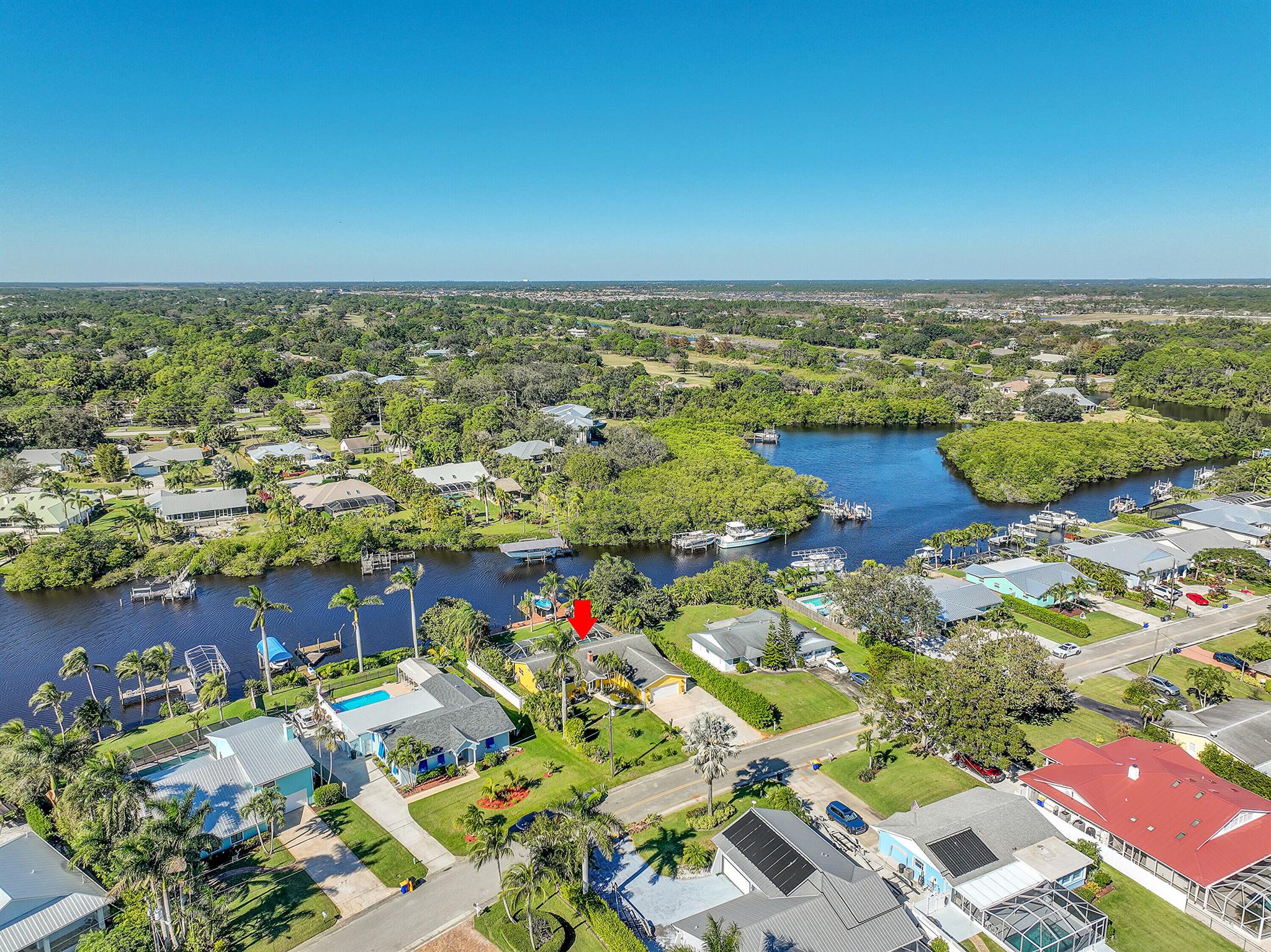PRICE IMPROVEMENT!!! Welcome to this exceptional 4-bedroom, 3-bathroom CBS home offering 2168 square feet of living space. Situated on over 1/3 of an acre of prime ocean access waterfront property on a deep water canal with no low fixed bridges. This property also offers ample driveway space for your trailers while you leave the boat on the 13k lb lift. Step inside to a spacious, TRUE open-concept great room that effortlessly splits the floor plan into three distinct areas. The living area flows seamlessly through pocket-sliders onto the expansive screened pool deck offering an aw-inspiring view, where you'll find a full outdoor kitchen perfect for al fresco dining, as well as a full cabana bathroom ideal for entertaining.