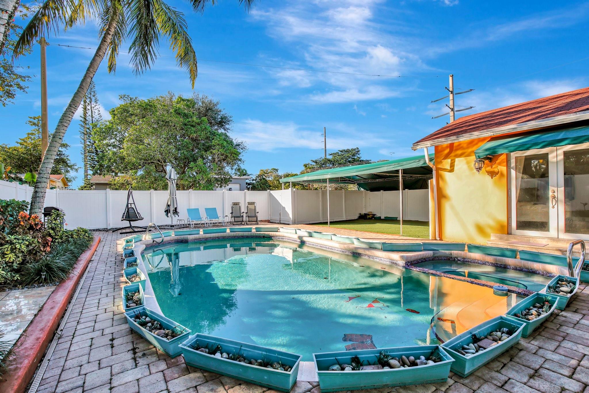 Nestled in desirable Hollywood Hills, this thoughtfully designed and expanded (2,287 sf) 4/3 + Den home with split plan Features: 2 Formal Dining Rooms, 2 Primary Bedroom Suites, elegant Living Room with BAR, FULL Outdoor Kitchen, Dining & Lounging area on screened Poolside Patio. Safely store your BOAT via the alley access to the fully fenced generous corner lot OR use large covered space to host parties. The Main Primary Bedroom with French doors leading to the pool area has 2 beautifully remodeled private bathing spaces. 1 private WC with jetted tub & double sinks, the other private WC with seamless glass shower, toilet & bidet, and single sink providing ultimate privacy & convenience. Roof 8 years NEW; 2 Tankless Water Heaters NEW; IMPACT WINDOWS/DOORS, White PVC Fencing NEW + more.