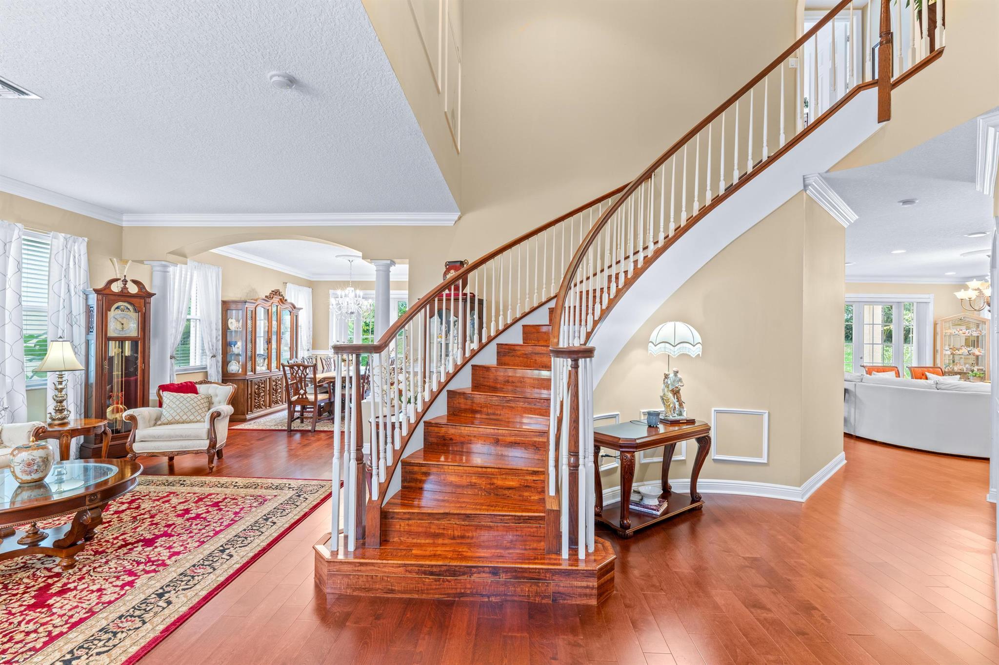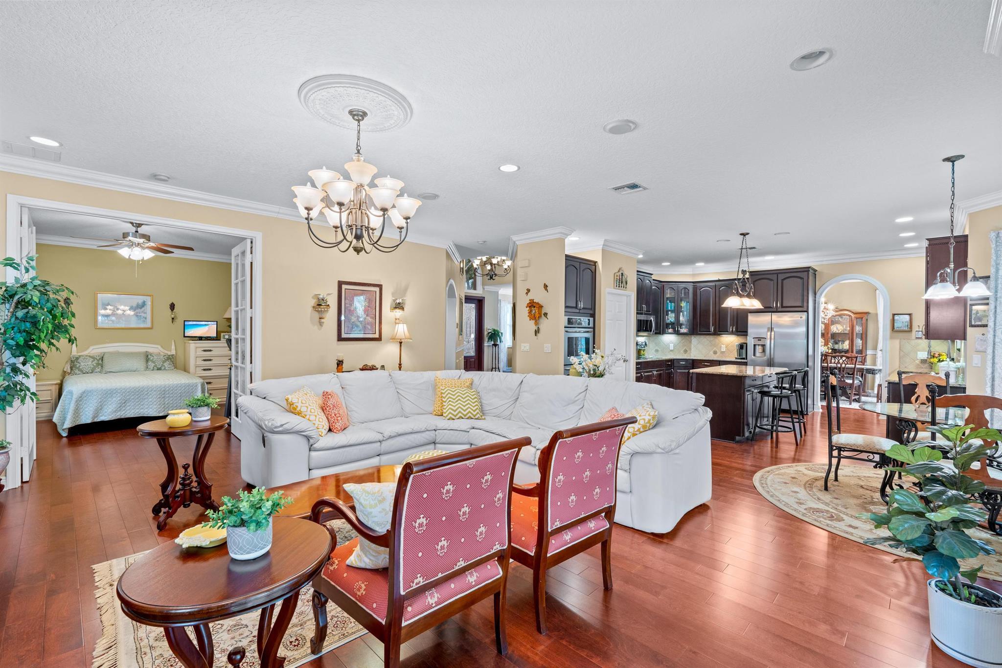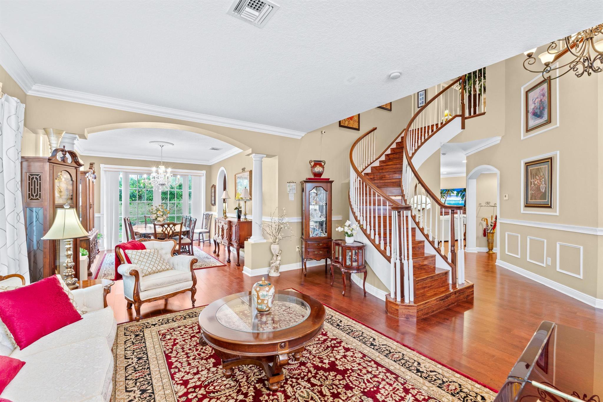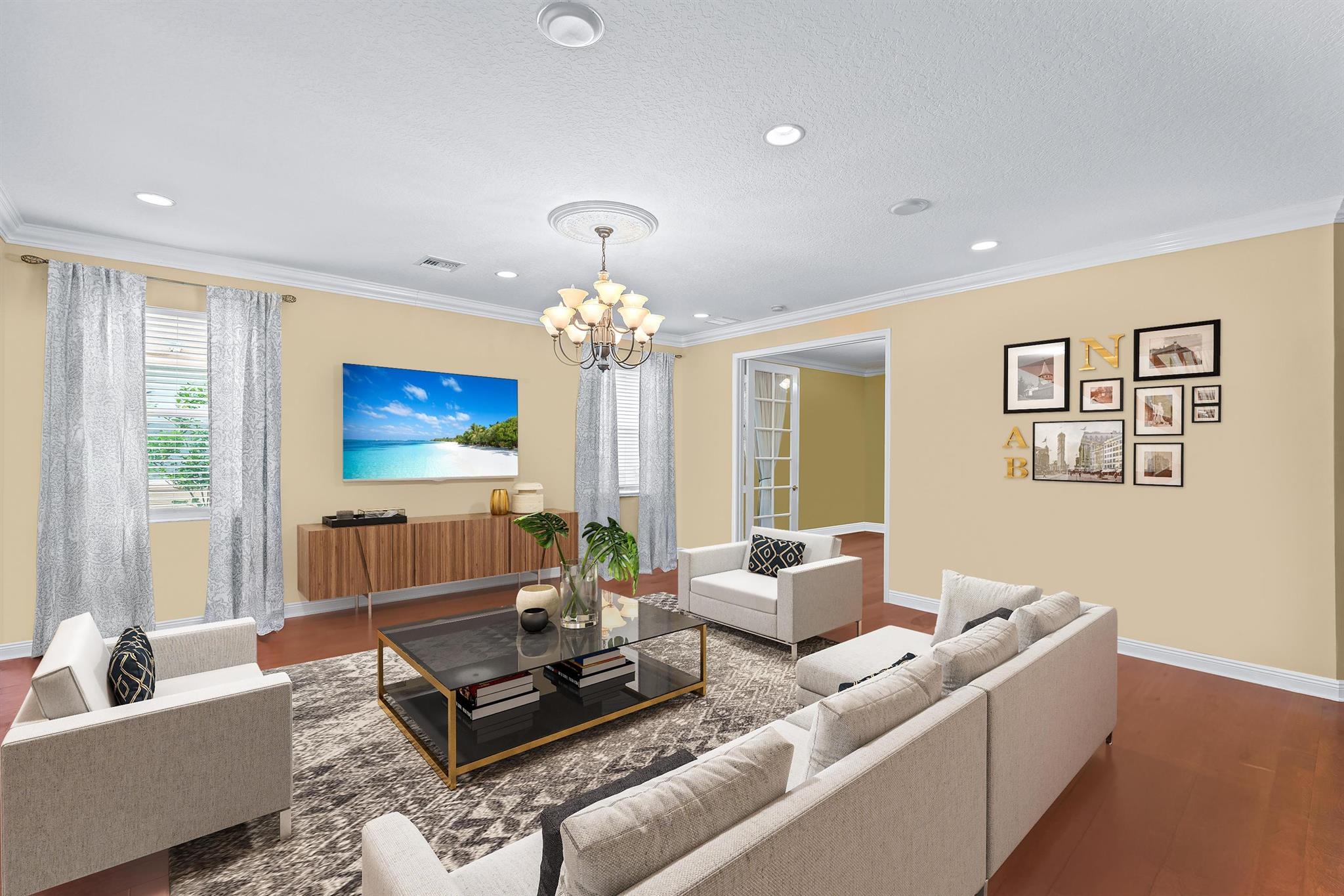 Welcome Home! Experience the perfect blend of luxury, flexibility, and lifestyle in this stunning 4-bedroom, 3-bathroom home, with the option to expand to 6 bedrooms. A grand staircase greets you upon entry, leading to formal living and dining areas that flow seamlessly into a spacious updated kitchen with an island, perfect for entertaining. The kitchen opens to a bright and inviting family room, creating the ideal space for gatherings.The first floor also features a private den, currently used as a guest suite with an ensuite full bathroom, offering comfort and privacy for visitors.Upstairs, the expansive layout includes two guest bedrooms, a loft that can easily be converted into a 5th bedroom, and a luxurious primary suite with its own private balcony.