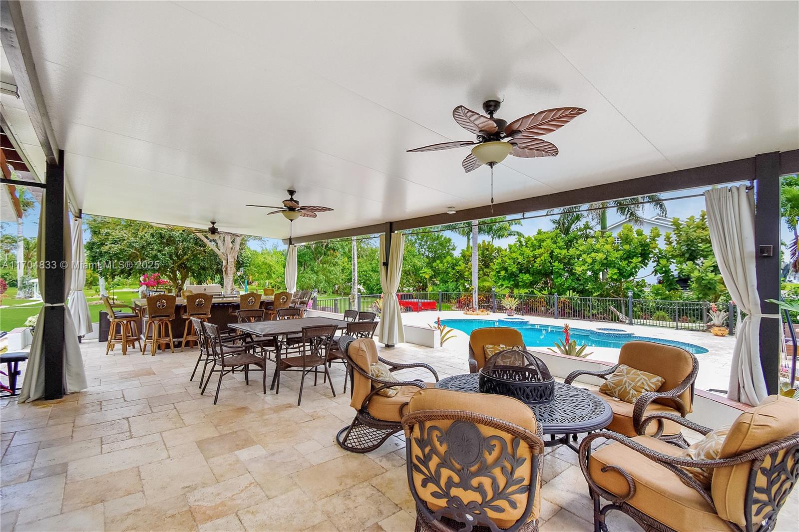 Nestled on 2 PRIVATE ACRES in Southwest Ranches, this home offers tranquility at the end of a cul-de-sac with an electric gate. Featuring 4 bedrooms, 3 full baths, and 2 half baths, it includes impact windows, a newer roof, and two updated A/C units (2020 & 2019). The open kitchen seamlessly connects to spacious living areas, complemented by marble floors, a theater room, and a converted garage. The backyard is an entertainer's dream with a koi pond, fountains, basketball court, fire pit, fruit trees, pool with jacuzzi, outdoor BBQ, and room to expand or add a guest house. This property offers endless possibilities to custom design your dream home, expand, build a guest house, or explore agricultural opportunities. No HOA. A rare gem—schedule your tour today!