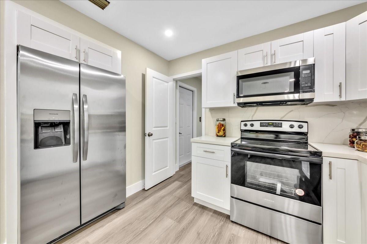 Amazing 3 bedroom 2 bath home with carport featuring many upgrades and ready to move in. With open concept layout, airy and bright, this home has it all: modern white kitchen with calacatta quartz counters and new stainless steel appliances, waterproof vinyl flooring throughout, freshly painted in and out, new roof, a/c, fixtures, modern upgraded bathrooms, custom closets in bedrooms, big laundry room, nice private backyard and much much more. Home is located in hot East Pompano Beach, close to brand name stores, restaurants, parks, and just blocks to the beach. Sommerset Academy Charter is steps away and Deerfield Beach High, with one of the best magnet programs you can find. This home has it all. Come see it in person, and fall in love!