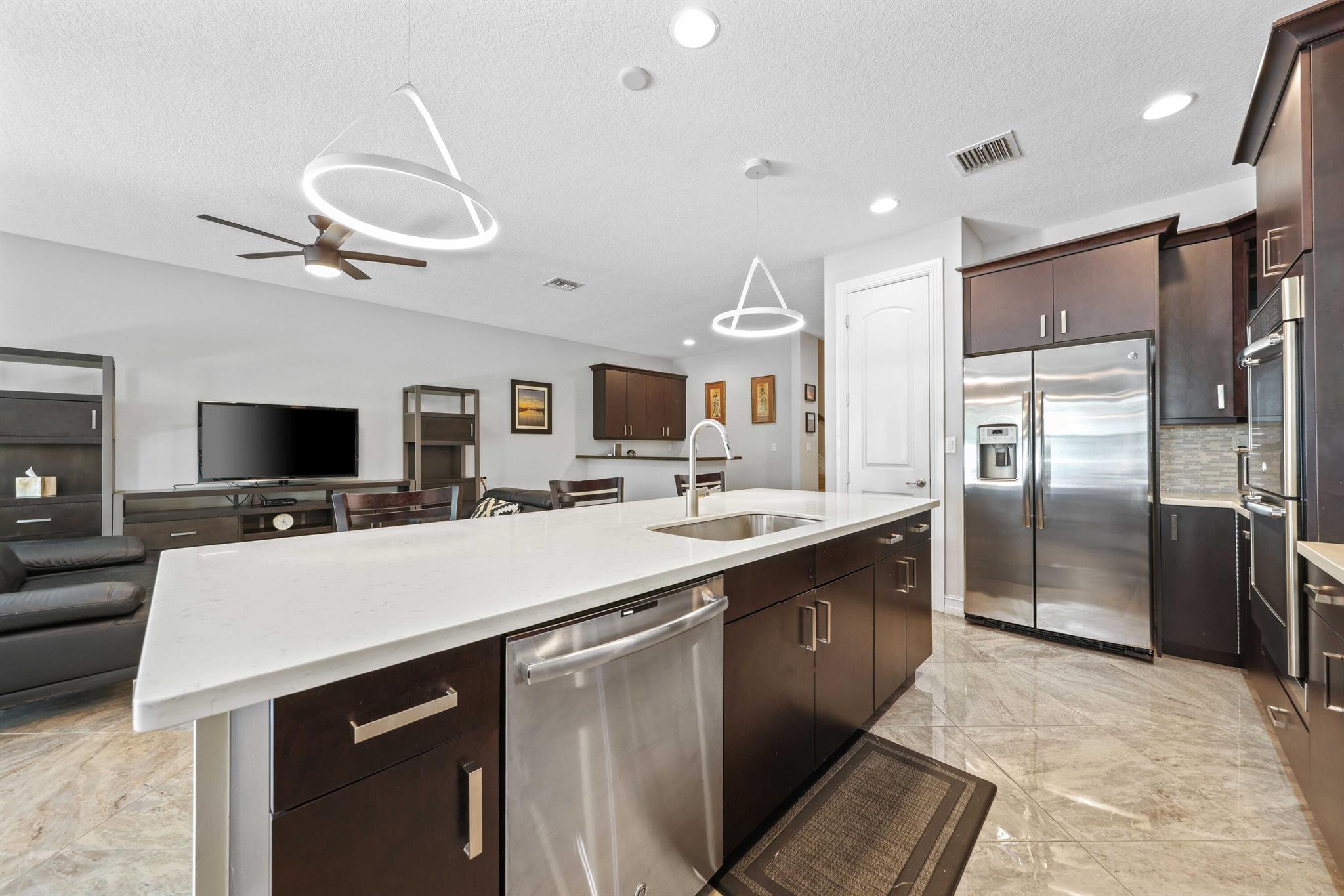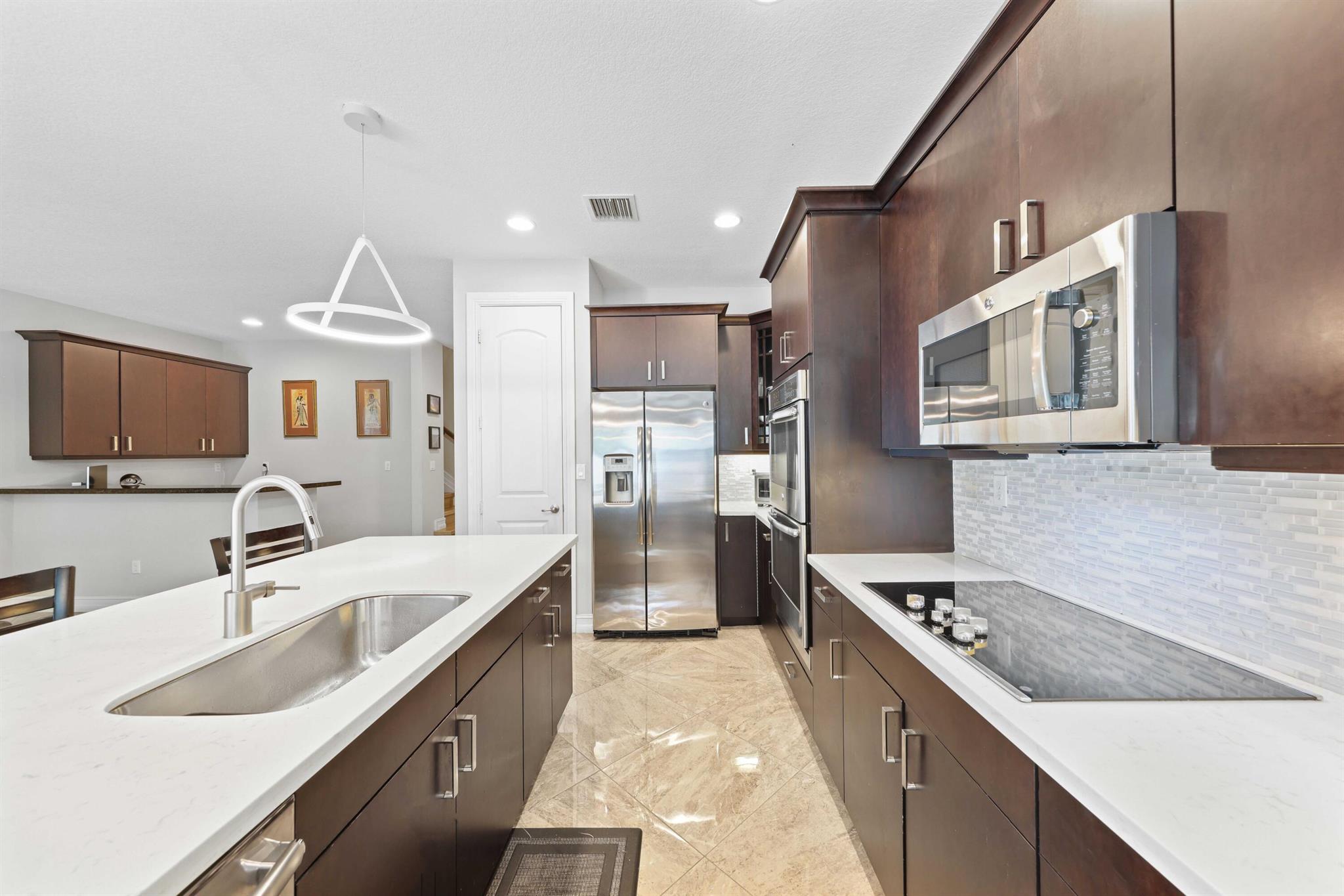 Welcome to Valetta, the newly built K. Hovanian community in East Boca Raton! This home shows like a model and has been upgraded beyond comparison!! Kitchen is fully upgraded with gorgeous upgraded cabinetry, quartz counters, glass backsplash and GE Profile appliances. Extra-large porcelain floors on first floor and gorgeous wood look vinyl floors on stairs and throughout second floor. This home is a 3 bedroom with a bonus ''office'' downstairs, and a spacious loft area on second floor. Custom window treatments on all windows and doors. Backyard is fenced and has an extended patio perfect for grilling and outdoor dining. Upgraded bathrooms, high end custom lighting..220 v charger in garage for electric vehicle. Not a detail was missed!