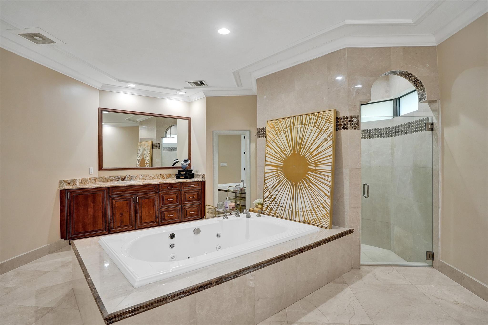 • Característica Interior:Bidet, BuiltInFeatures, BedroomOnMainLevel, BreakfastArea, ClosetCabinetry, DiningArea, SeparateFormalDiningRoom, DualSinks, FirstFloorEntry, Fireplace, GardenTubRomanTub, JettedTub, KitchenDiningCombo, MainLevelPrimary, Pantry, SplitBedrooms, SeparateShower, CentralVacuum