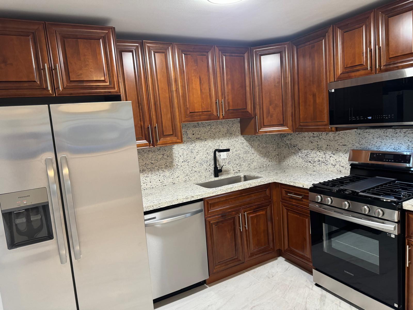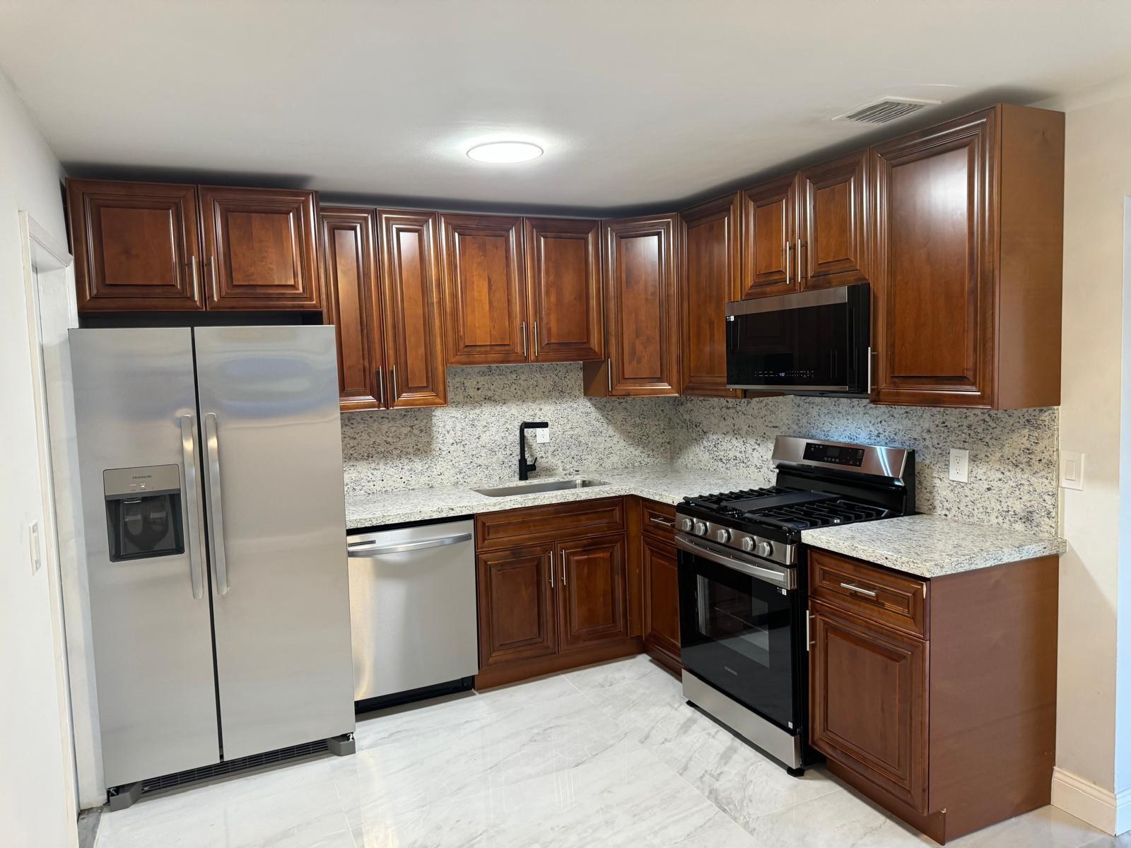 The house boasts a great location, a beautiful, spacious 3-bedroom layout with 2 full bathrooms, a family room that provides ample living space for family gatherings, and a total living area of over 1161 sq ft. The house is in MOVE-IN condition and has a new ceramic tile and vinyl floor, all BRAND NEW STEEL appliances, a meticulously REMODELED kitchen and bath with a thick GRANITE top, and brand new steel appliances. A pet-friendly fence protects the backyard. Both the interior and exterior have been freshly painted. There are excellent schools nearby, the property is easy to show, and the seller is cooperative. The rear area provides vehicle access, and there are numerous parking spaces available in the front area as well. The property also offers public sewer and water services.