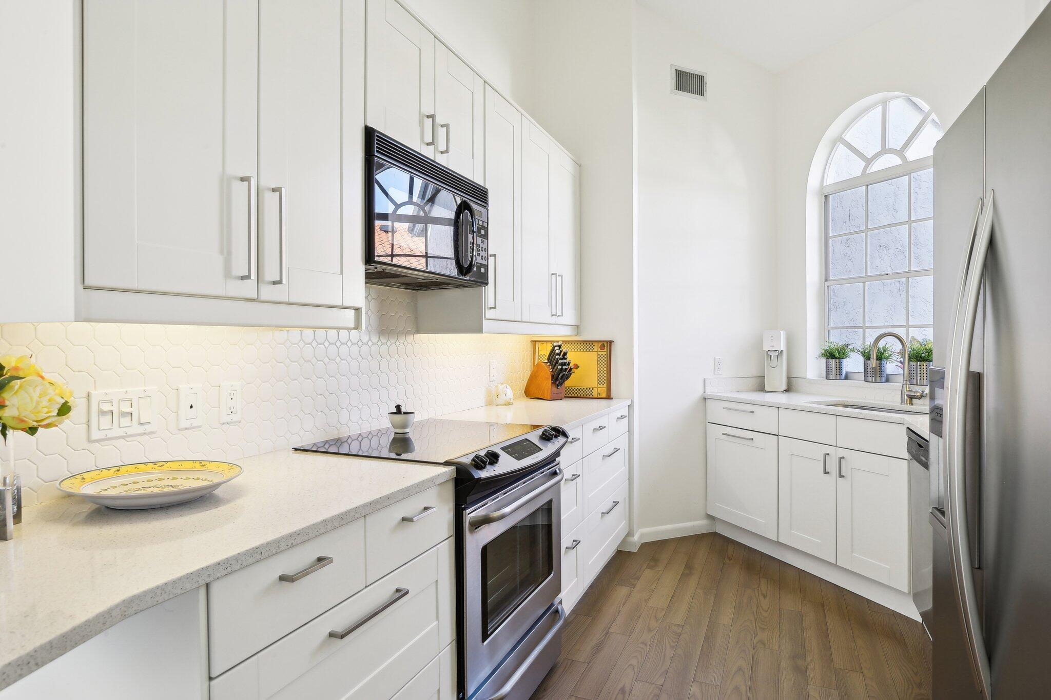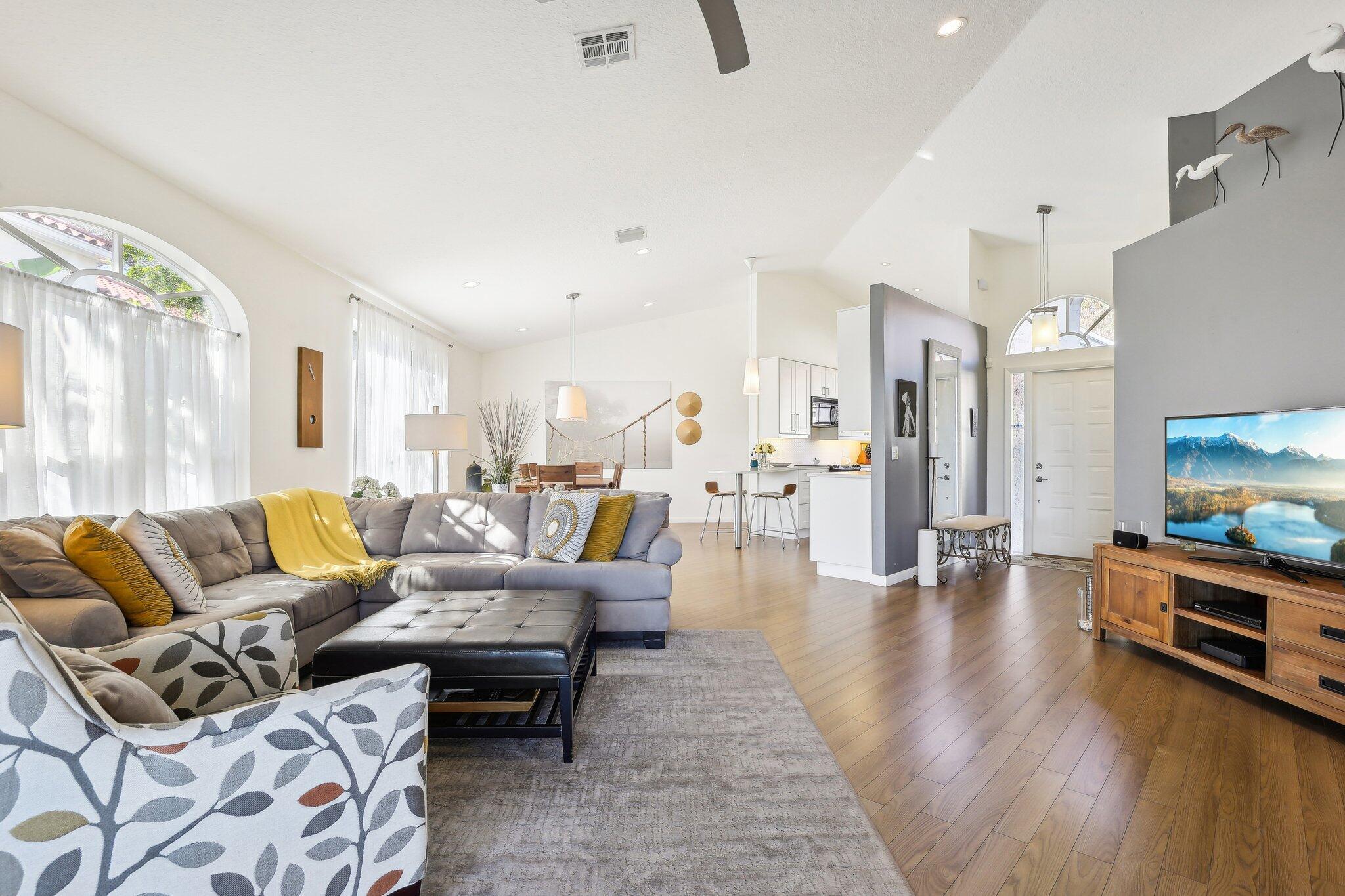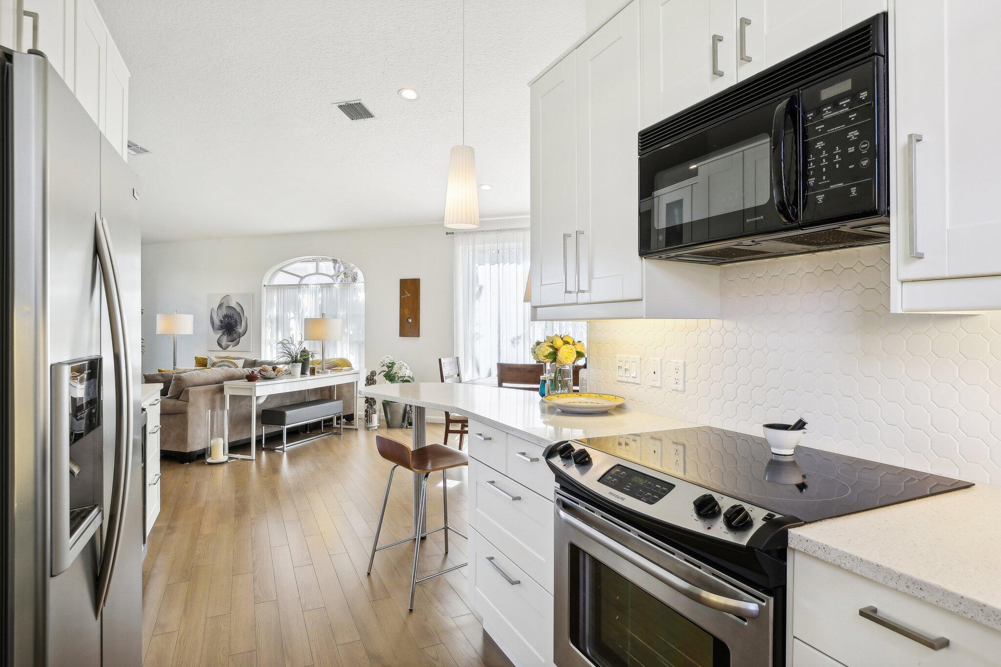NO MANDATORY MEMBERSHIP! available with new roof at $699,000 - Discover this pristine, move-in-ready 3-bedroom, 2-bath single-family home in highly desirable Antigua Point at Boca Country Club. Renovated with contemporary style, it features vaulted ceilings, modern kitchen and baths, and lovely Terrawood* floors throughout. Enjoy breathtaking golf course and lake views from the vaulted screen enclosure, perfect for entertaining. Centrally located near top-rated schools (Calusa Elementary, Omni Middle, Spanish River High), shopping, dining, and parks, and just minutes to downtown Boca Raton and Delray. HOA includes landscaping, exterior painting, manned security, cable, and more! The community offers a new public golf course, driving range, restaurant, and resort-style clubhous