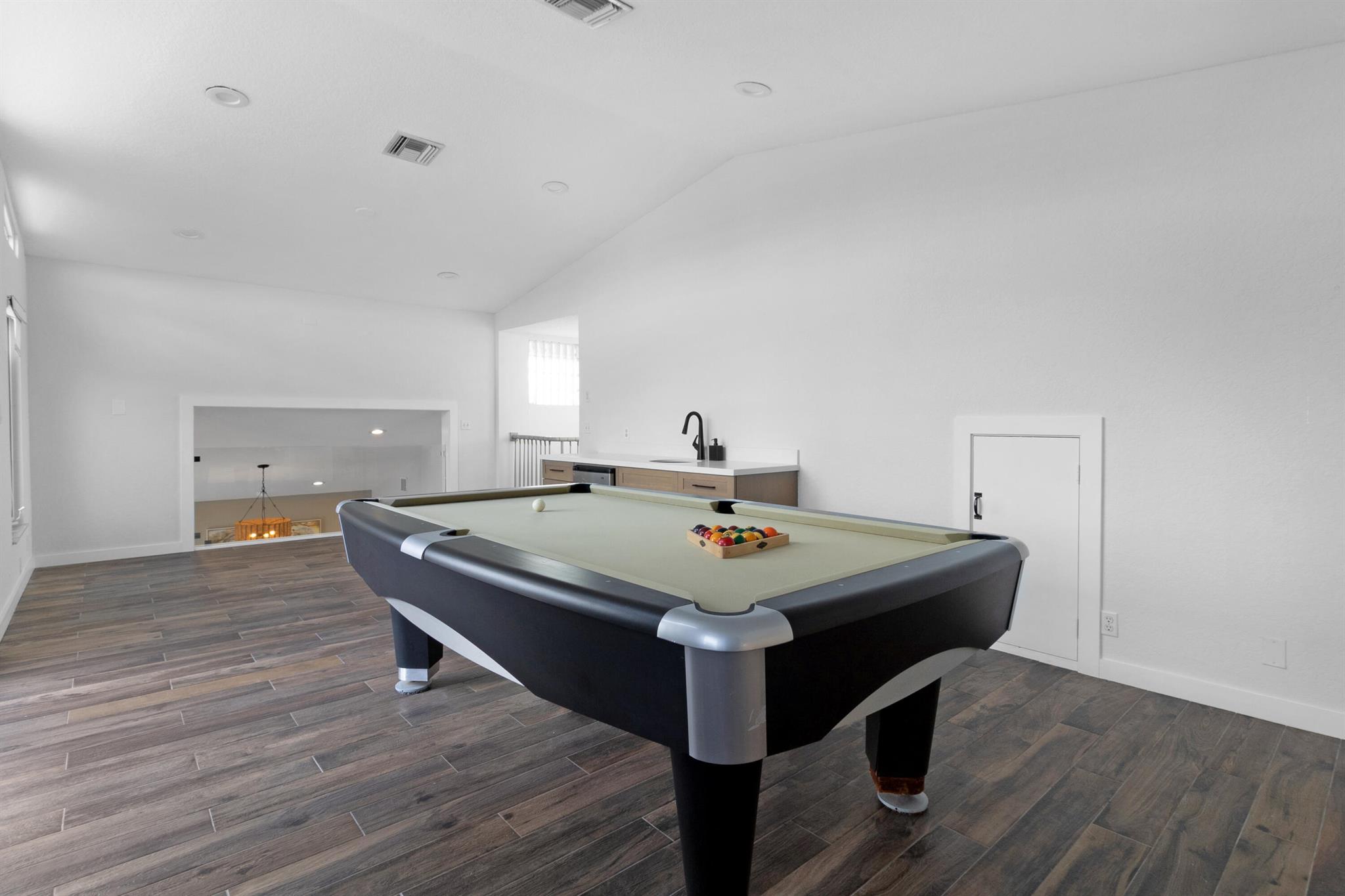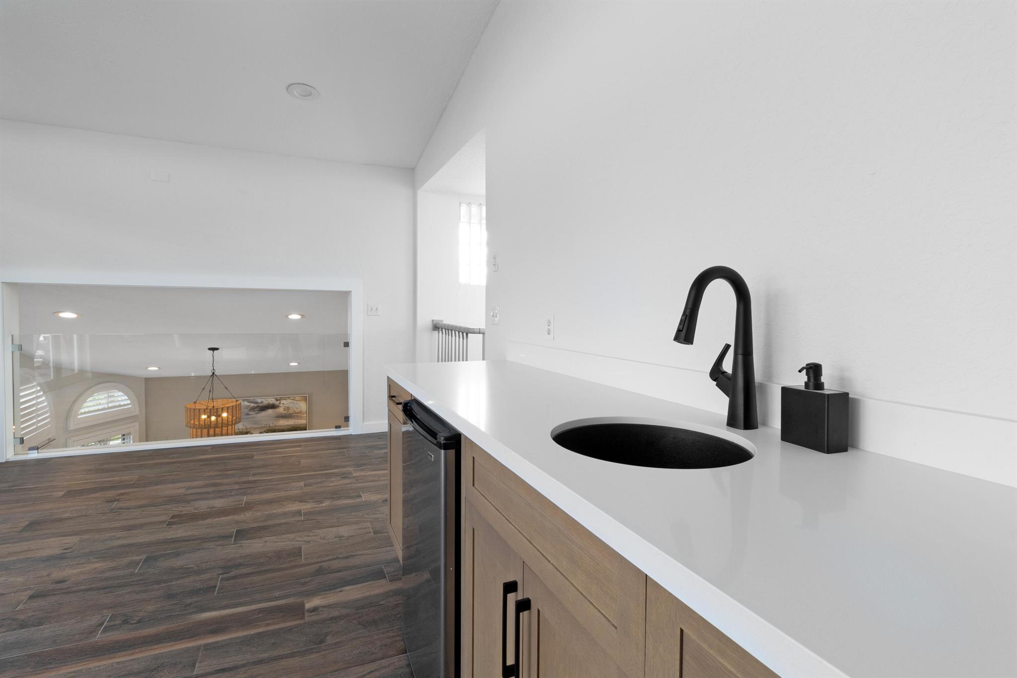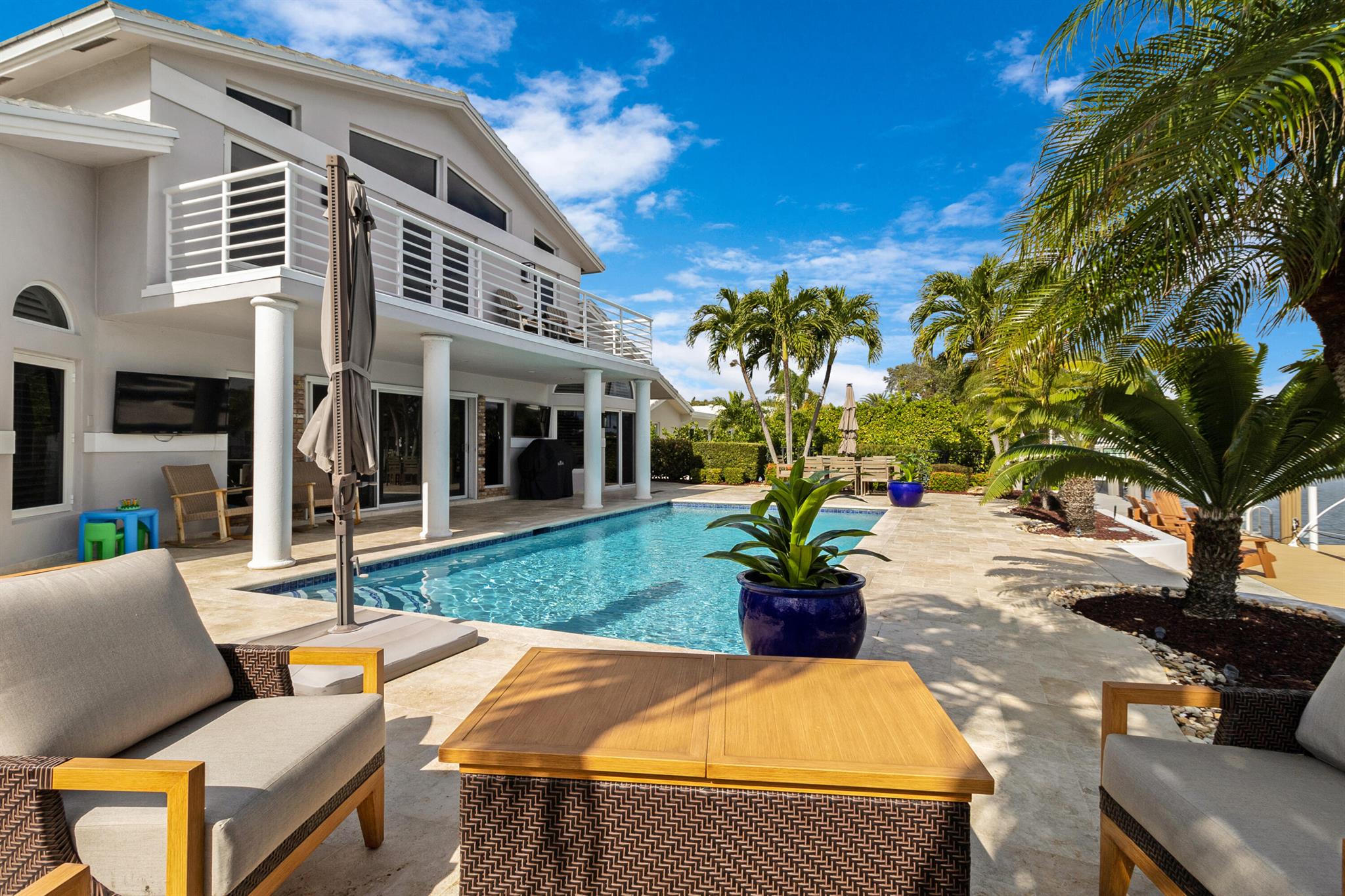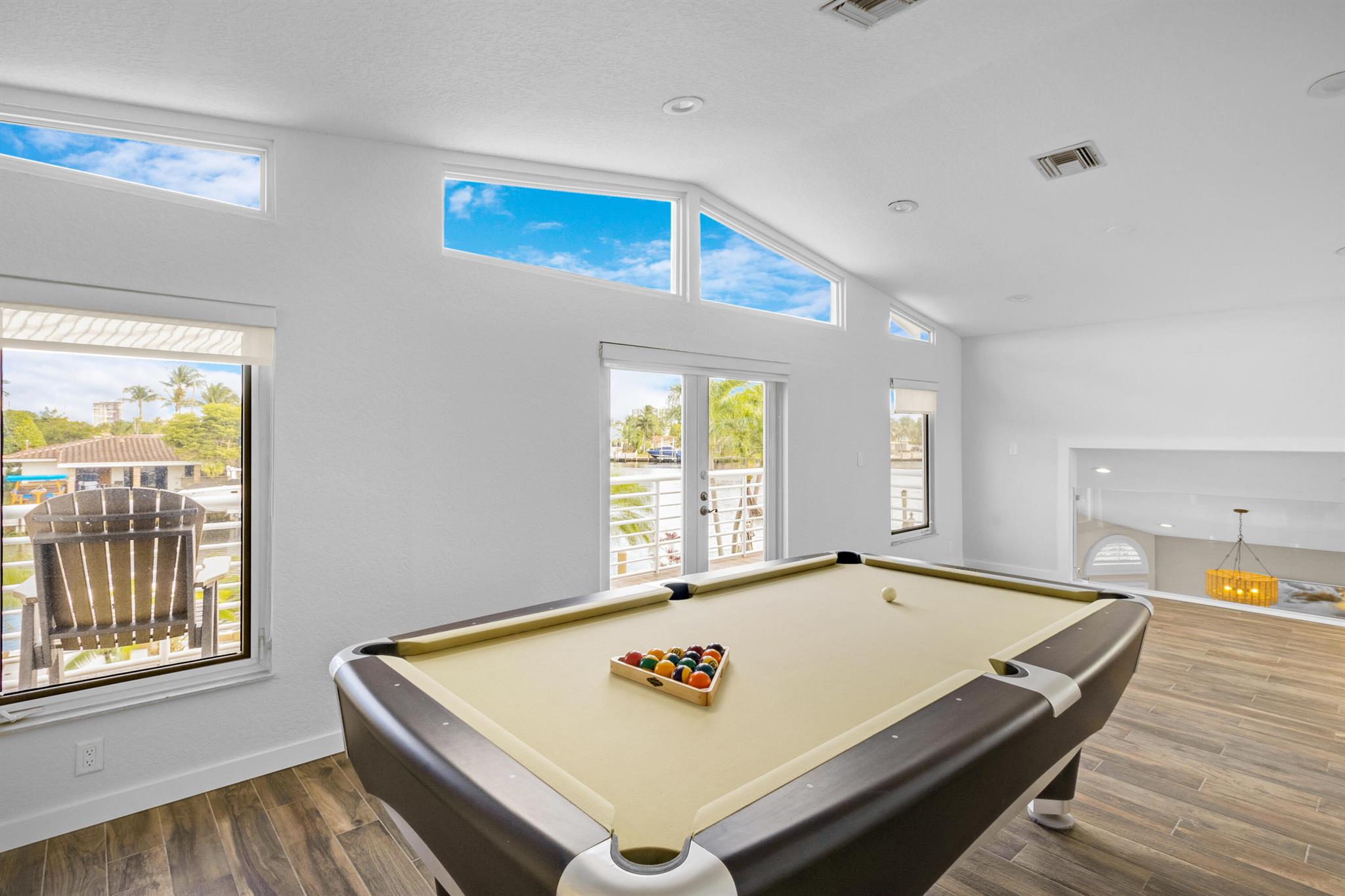 Rarely available stunning waterfront home TOTALLY REDESIGNED W/ VAULTED CEILINGS & WOW FACTOR in acclaimed Cypress Lake. ROOF 2019. IMPACT. 3AC's. 24'' Crema Marfil Marble Flooring. Spacious OPEN CONCEPT 3-bedroom 2 bath plus a versatile den/office that may serve as a 4th bedroom. This uniquely designed open layout home features a vaulted wood ceiling entryway with custom Wainscoting! Enjoy the many sophisticated interior elements including a newly updated kitchen with lots of storage, glass door cabinets, and wrap around island to dining room/bar. Upgraded kitchen/bar includes Scotsman gourmet icemaker, beverage cooler, Wolf 36'' Contemporary Gas Cooktop, Bosch dishwasher, Double Oven, Warming Drawer, Deep/Wide SS Farmhouse Sink. The SURPRISE is A SECOND ISLAND w/pendant lighting, snack