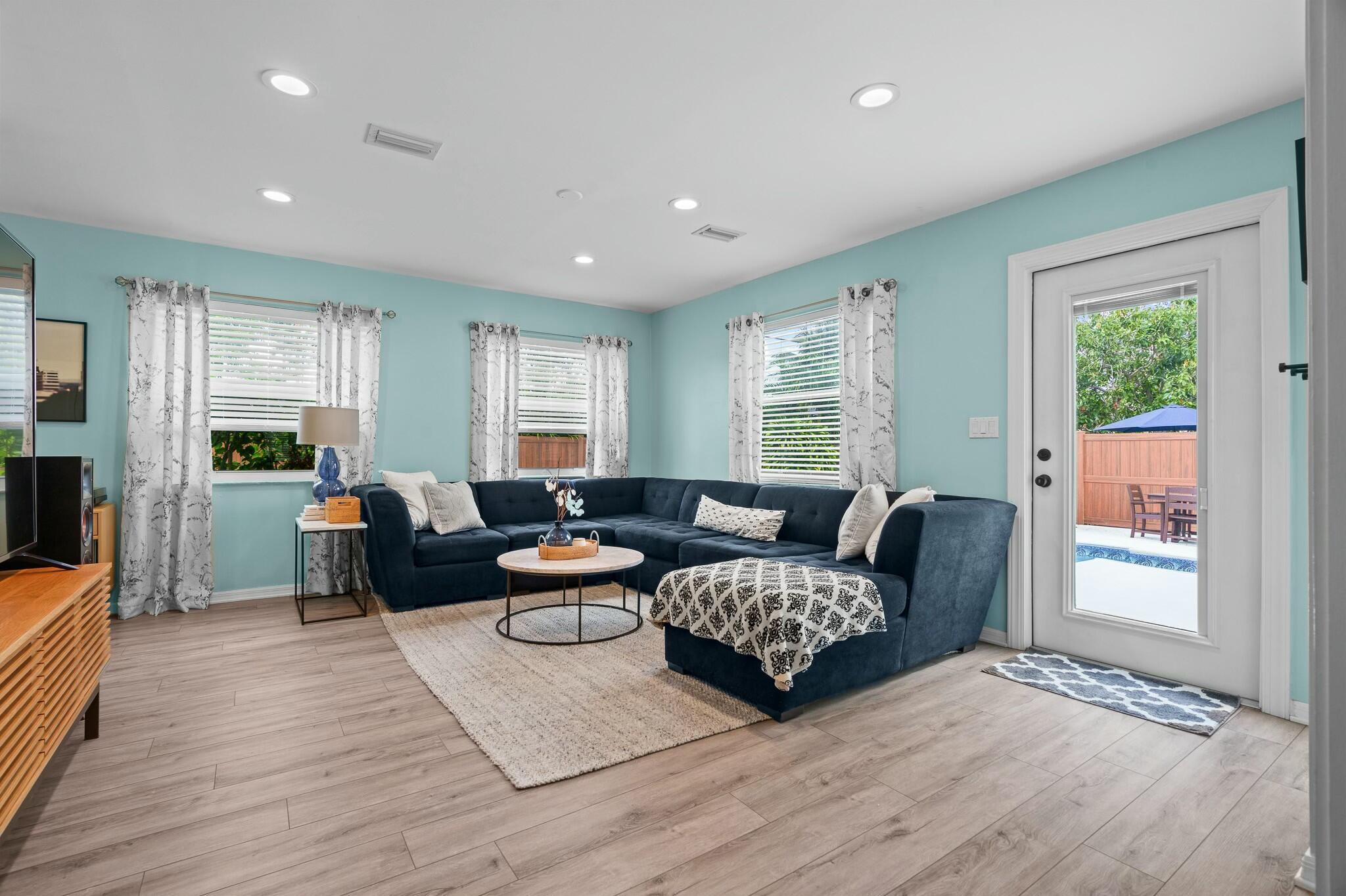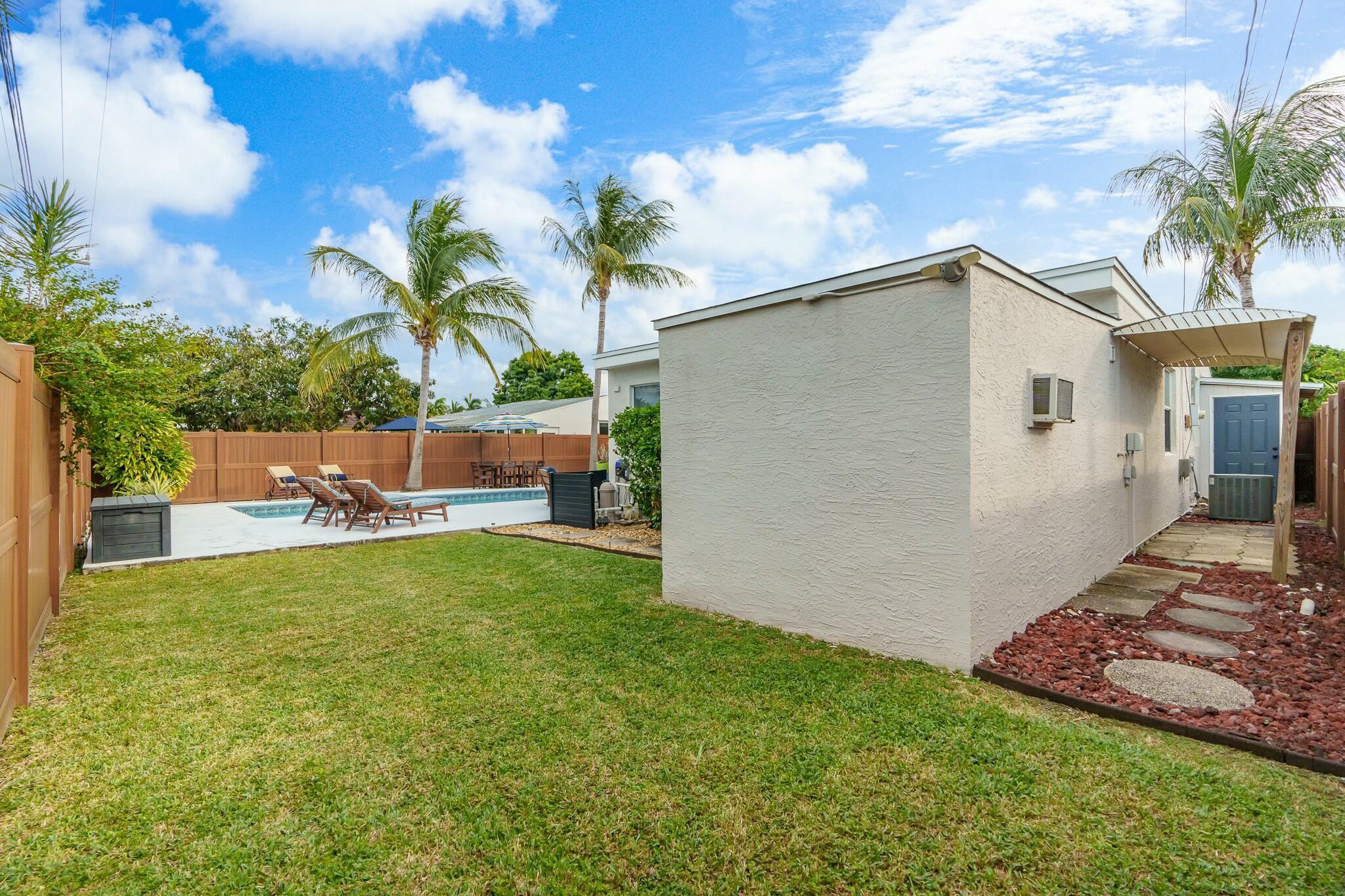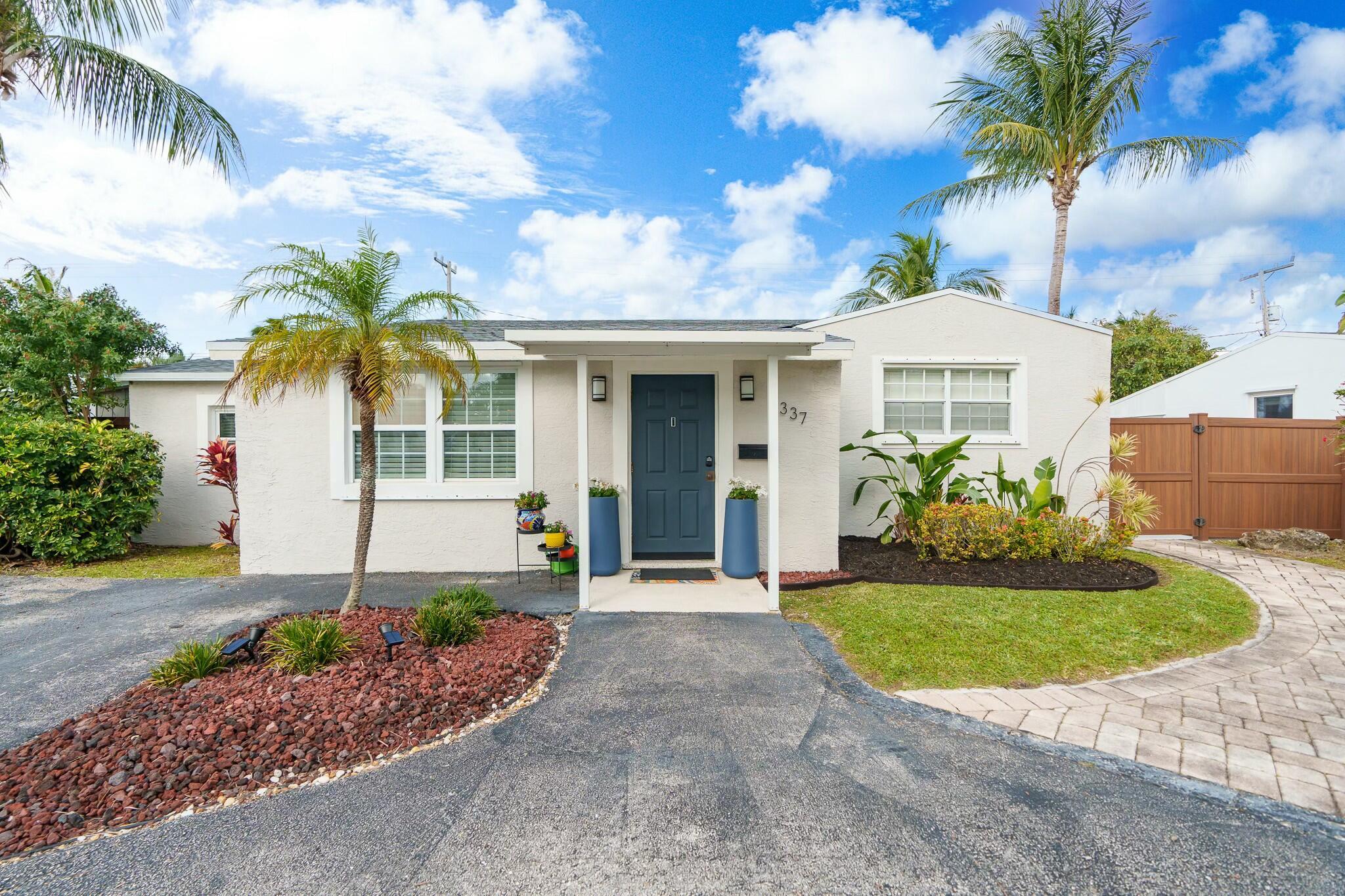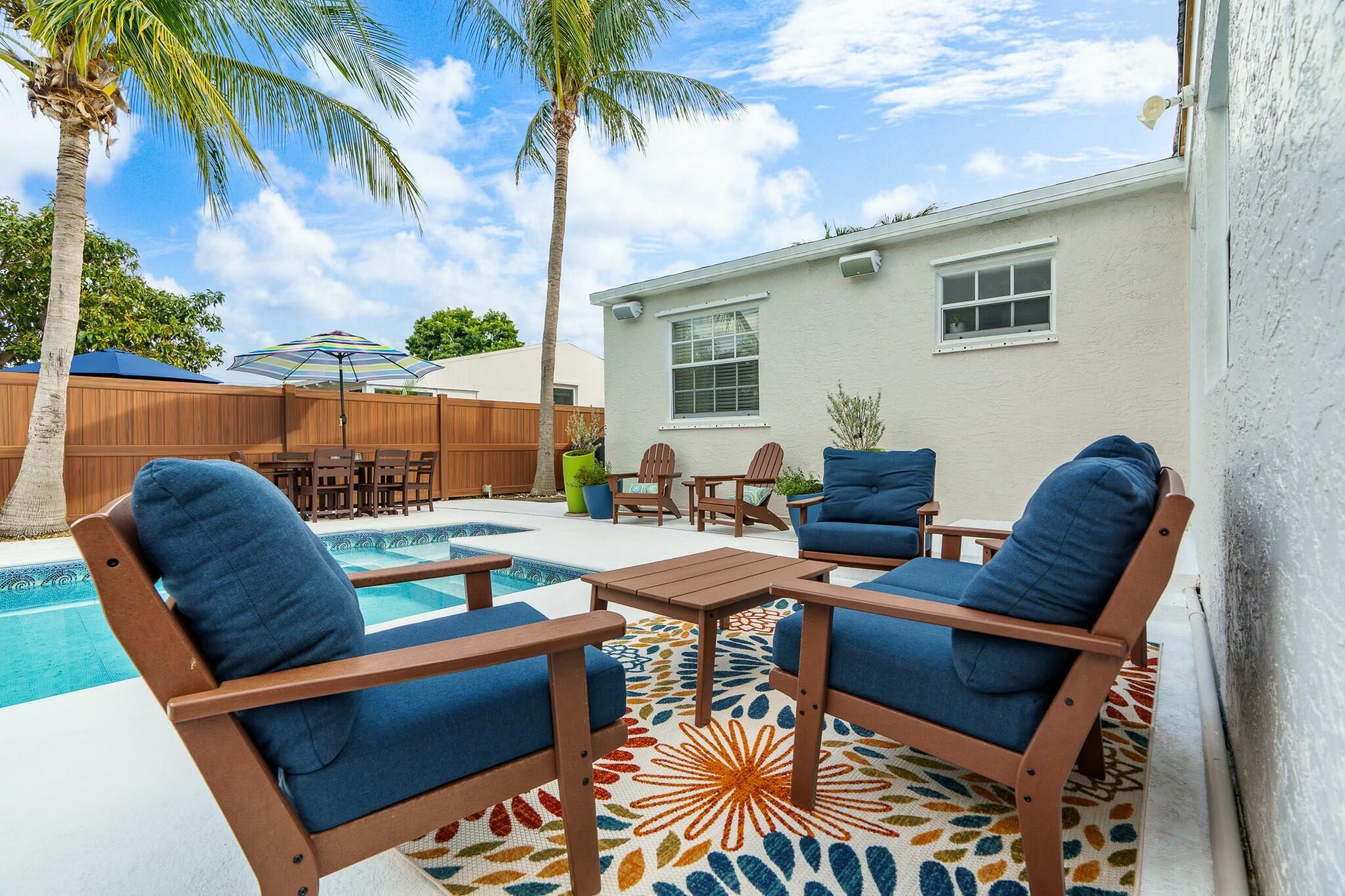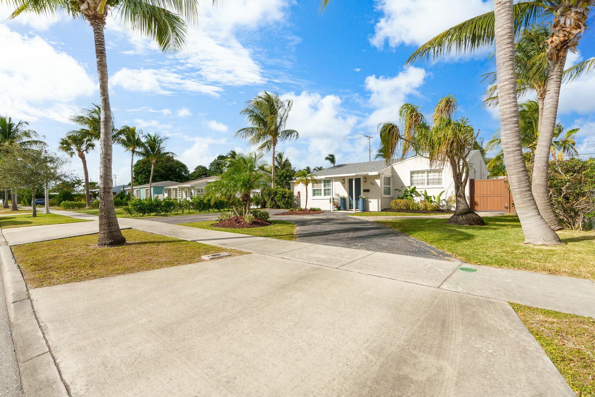 Location, location. Walk into this charming 4-bedroom, 2 bath, saltwater pool home situated only three short blocks from the Intracoastal in SOSO WPB's hottest area. Stunning remodel. High end kitchen, Soapstone countertops and SS appliances, self-closing draws, tankless hot water heater. Remodeled bathrooms. Entire home is light and bright. New features of the home are A New Roof 2024, New AC 2024, New Salt-Water Pool 2024, New Vinyl Flooring 2024, New Lighting throughout home. Nest thermostat. Ring doorbell. New Ceiling fans. New vinyl fencing along with sound system for pool area. New washer /dryer. Recently painted exterior and interior of home. All major items have been taken care of in this home. Two zone central AC. All windows and doors are either impact glass or hurric