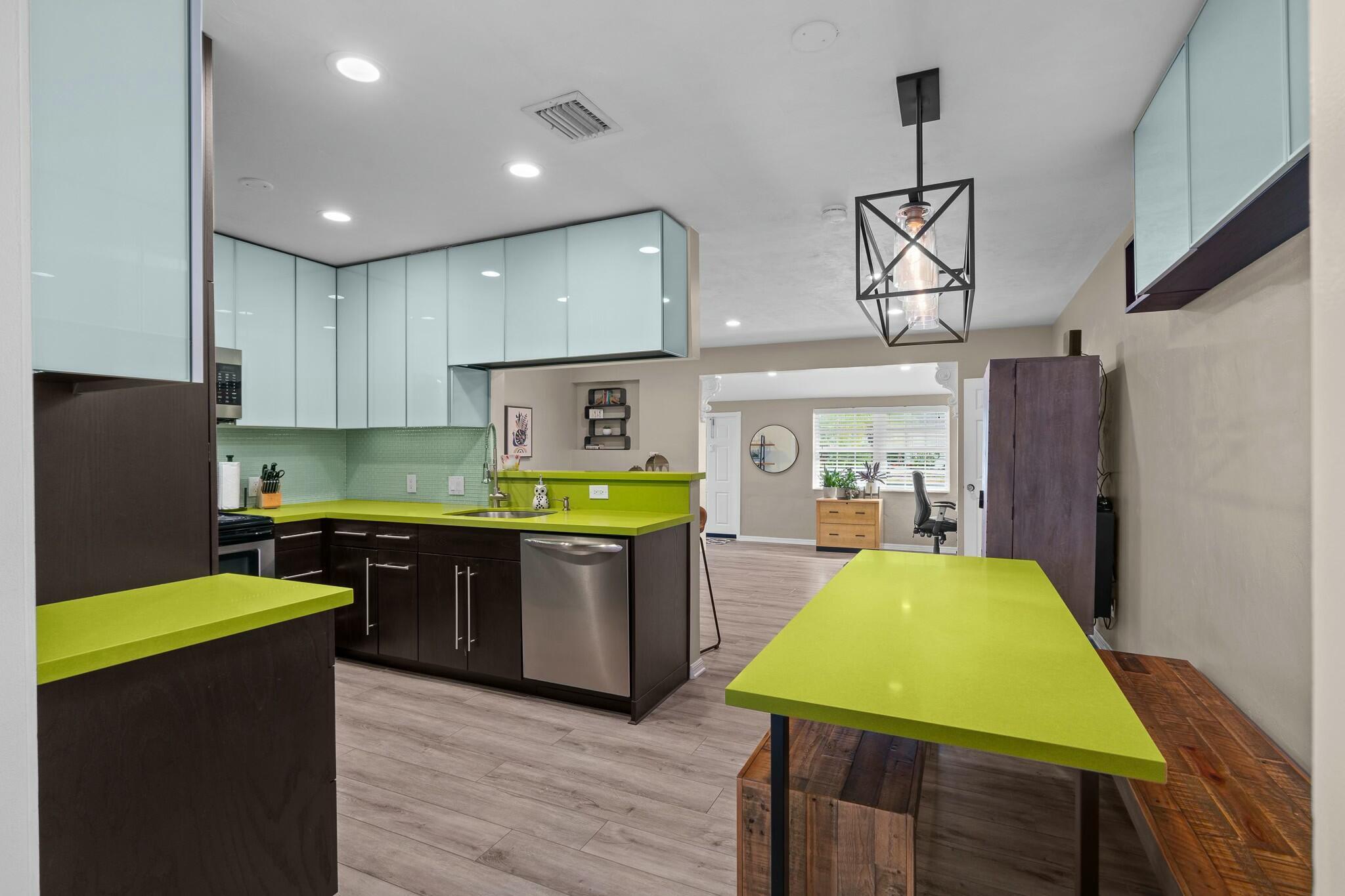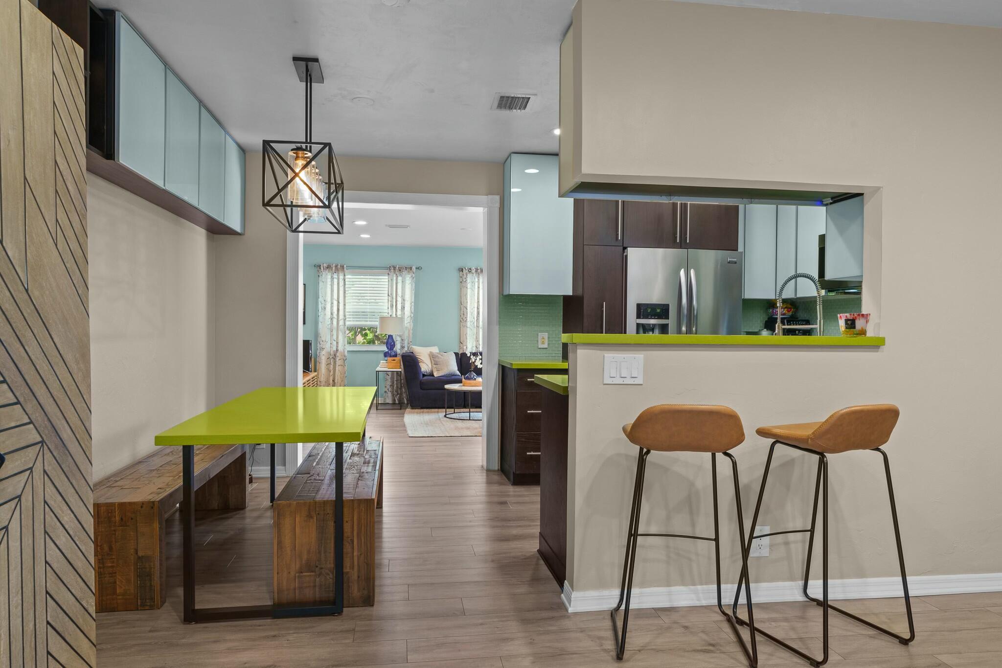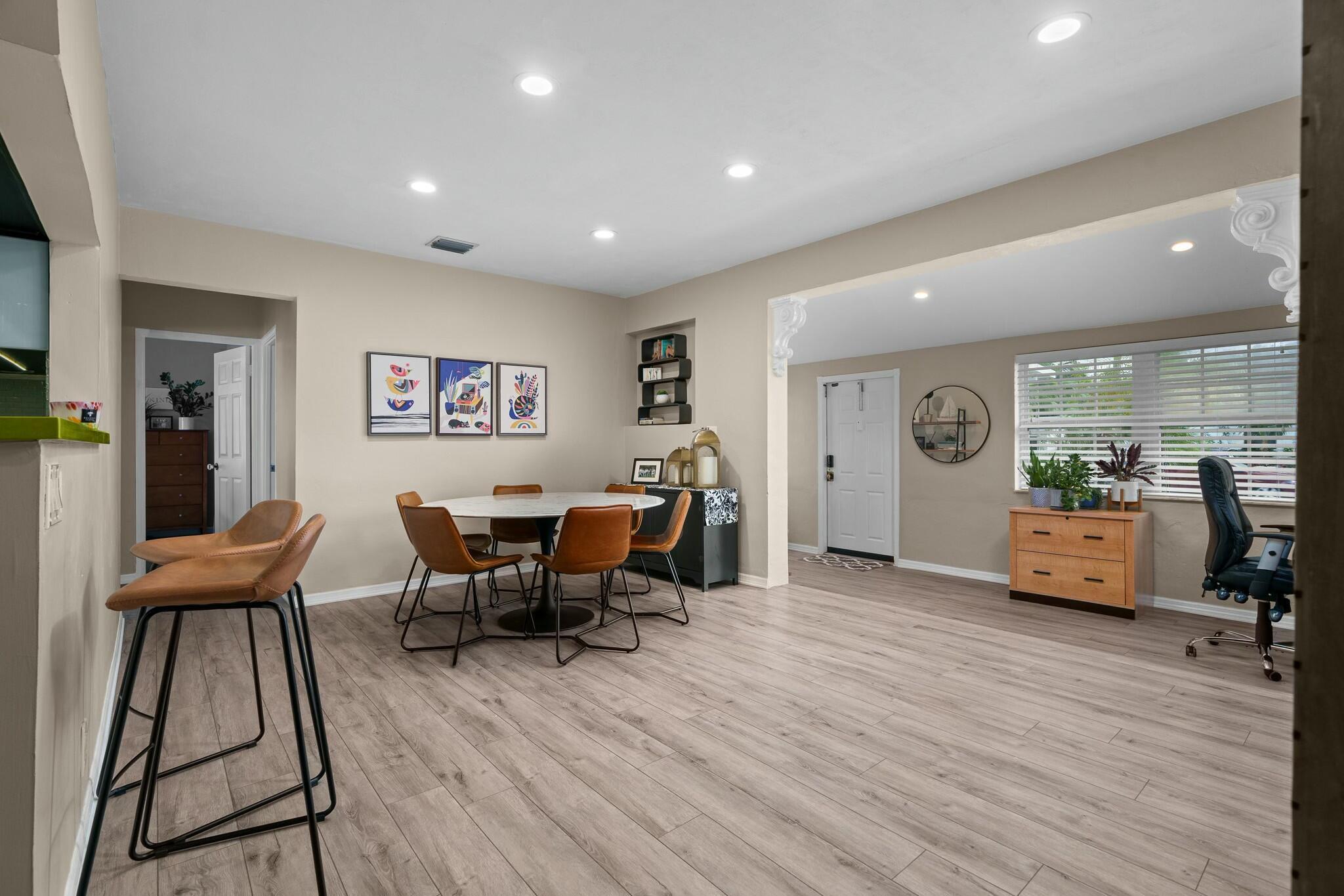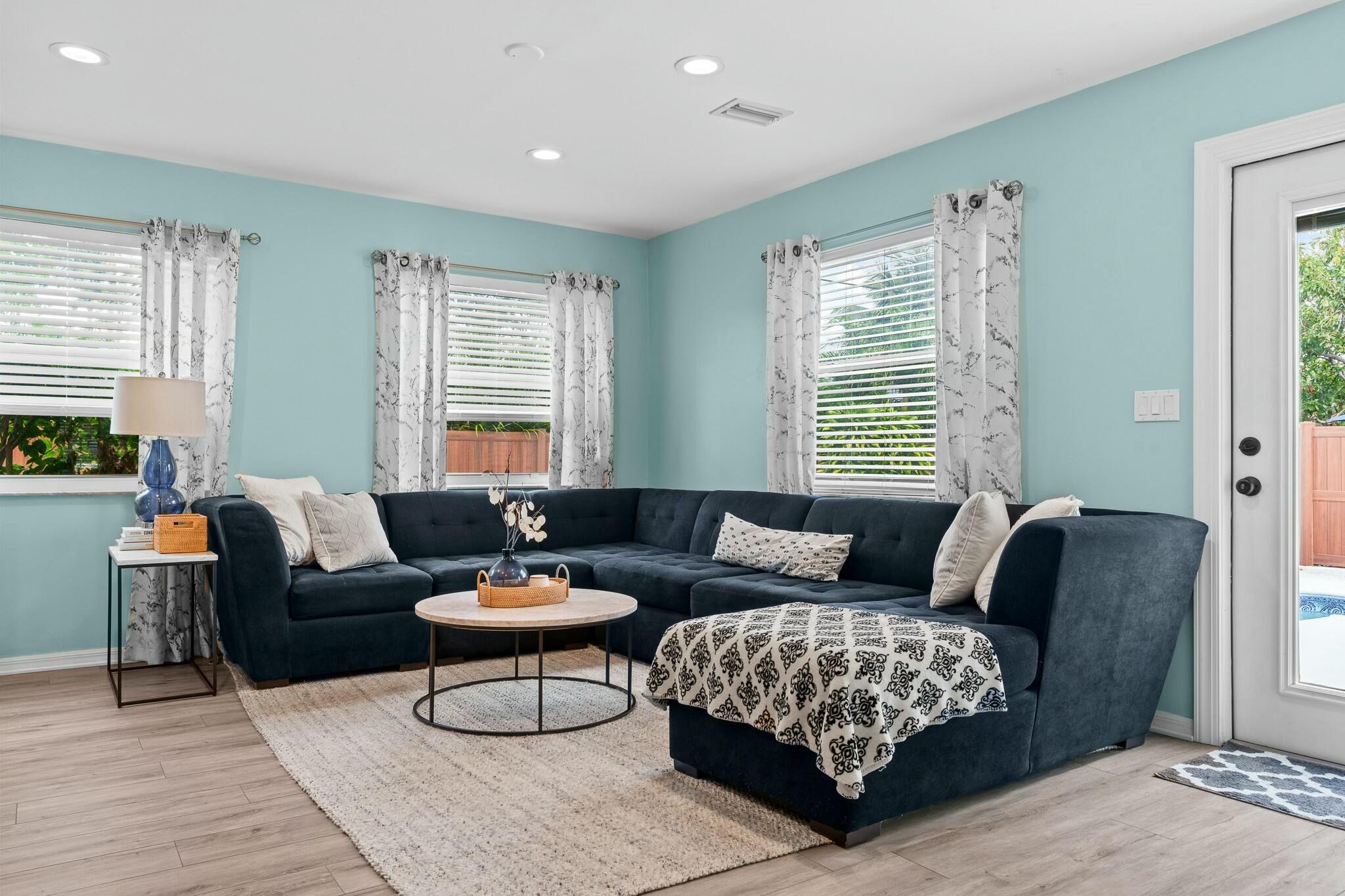 Location, location. Walk into this charming 4-bedroom, 2 bath, saltwater pool home situated only three short blocks from the Intracoastal in SOSO WPB's hottest area. Stunning remodel. High end kitchen, Soapstone countertops and SS appliances, self-closing draws, tankless hot water heater. Remodeled bathrooms. Entire home is light and bright. New features of the home are A New Roof 2024, New AC 2024, New Salt-Water Pool 2024, New Vinyl Flooring 2024, New Lighting throughout home. Nest thermostat. Ring doorbell. New Ceiling fans. New vinyl fencing along with sound system for pool area. New washer /dryer. Recently painted exterior and interior of home. All major items have been taken care of in this home. Two zone central AC. All windows and doors are either impact glass or hurric