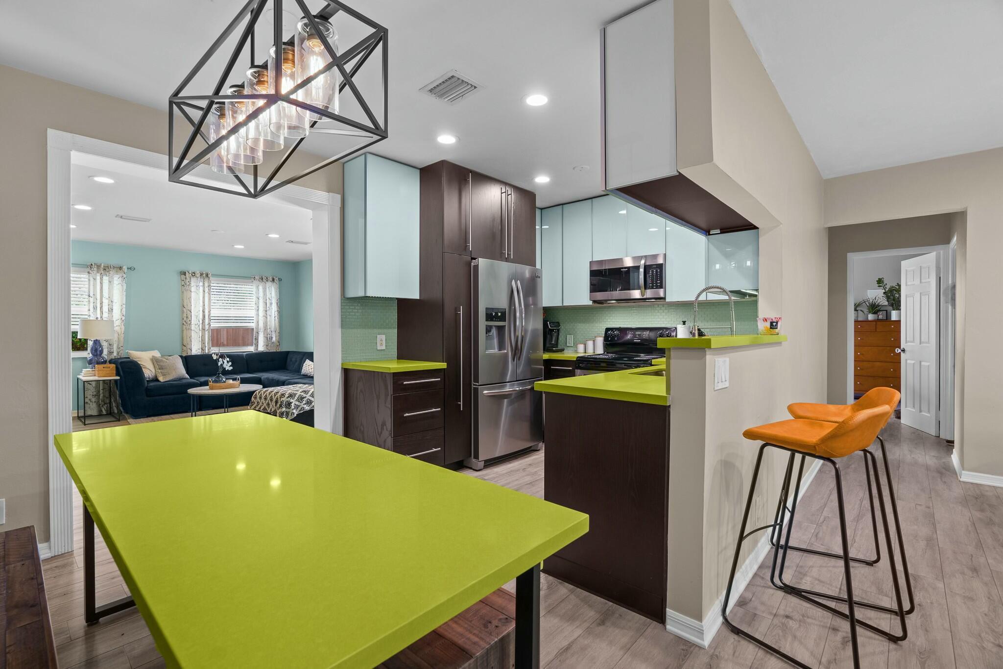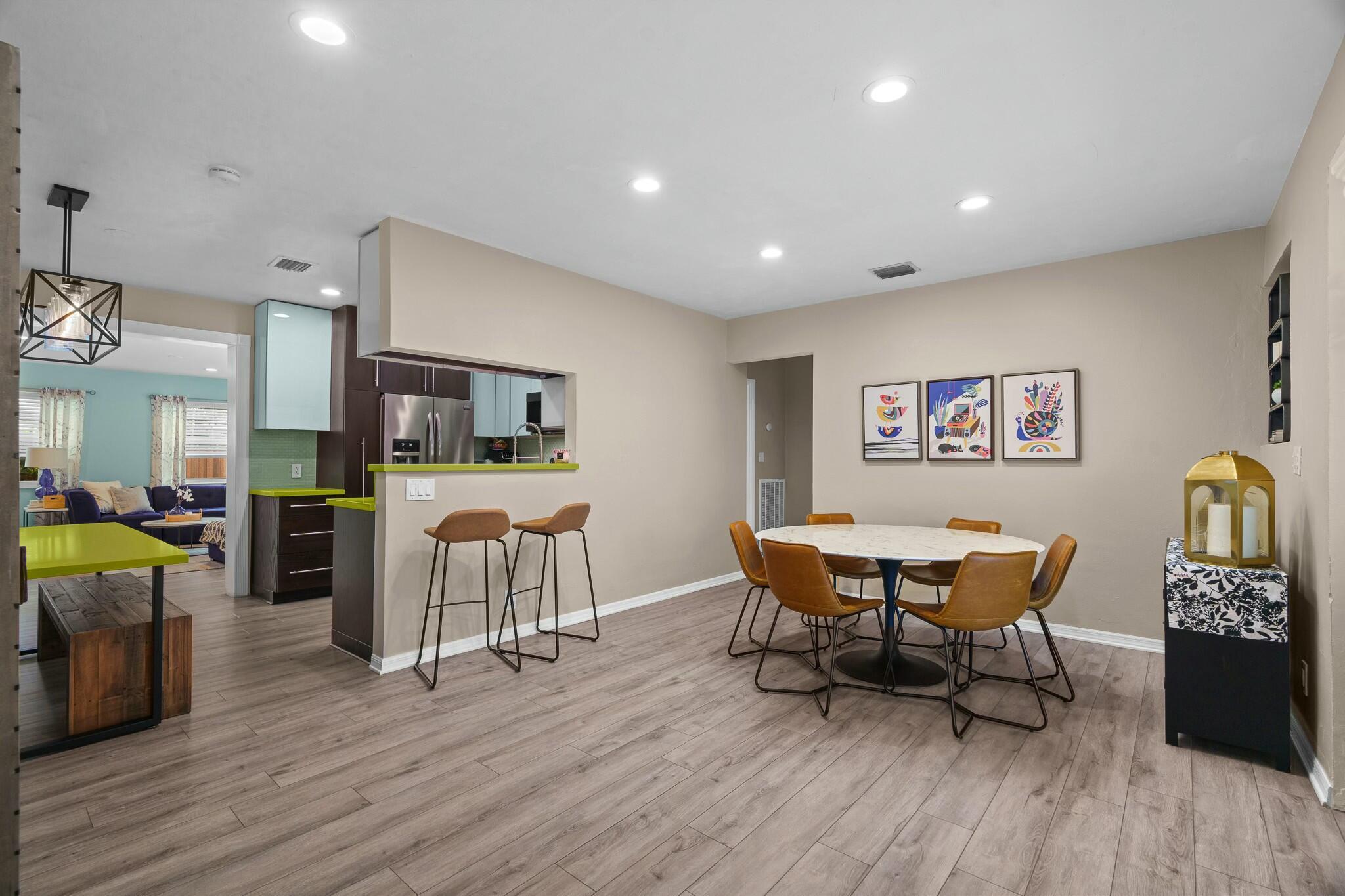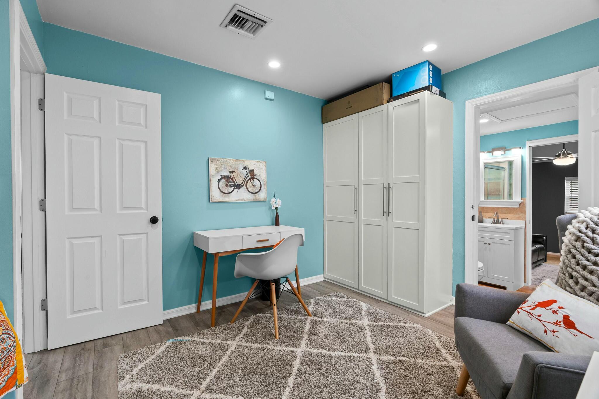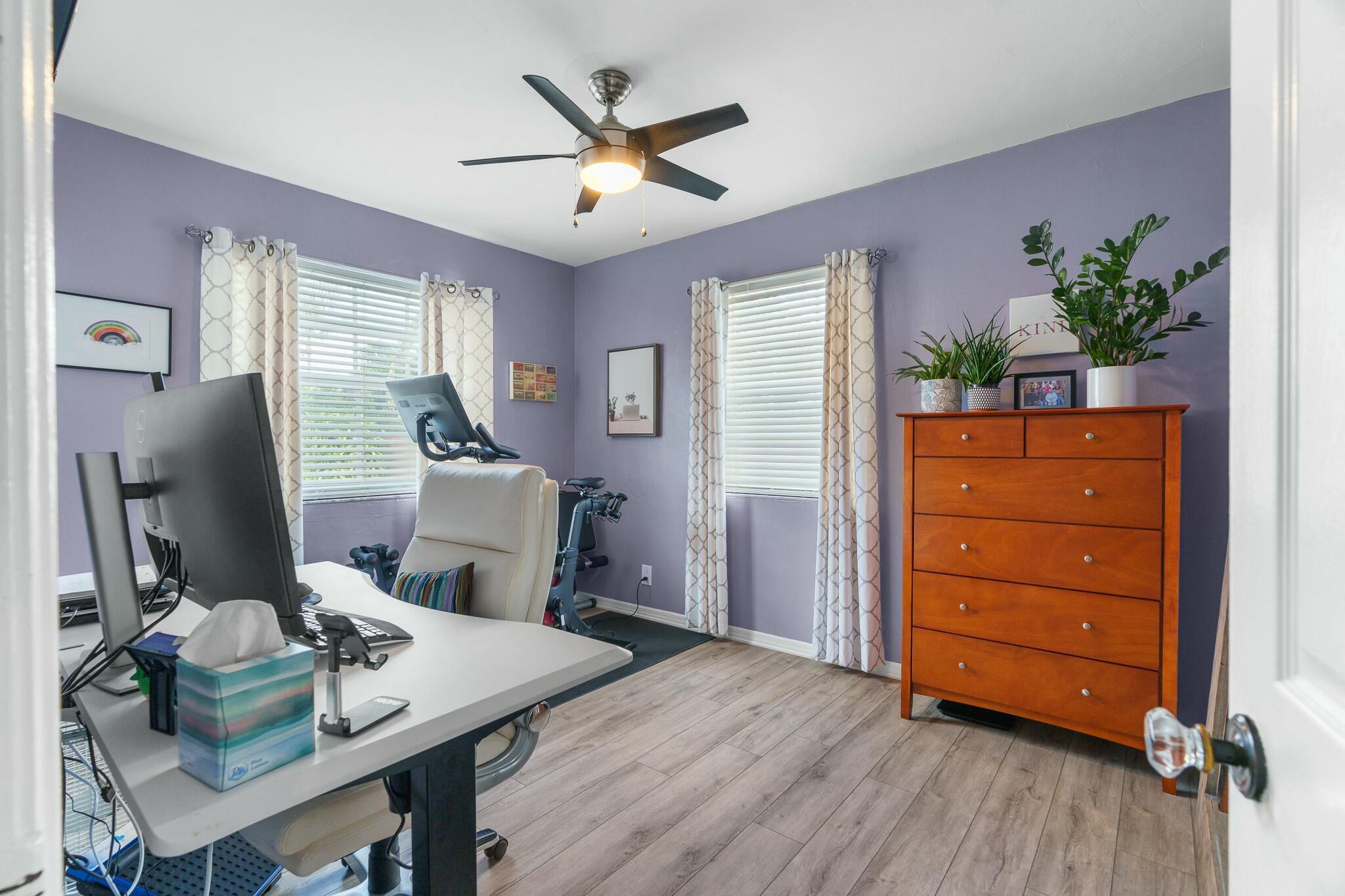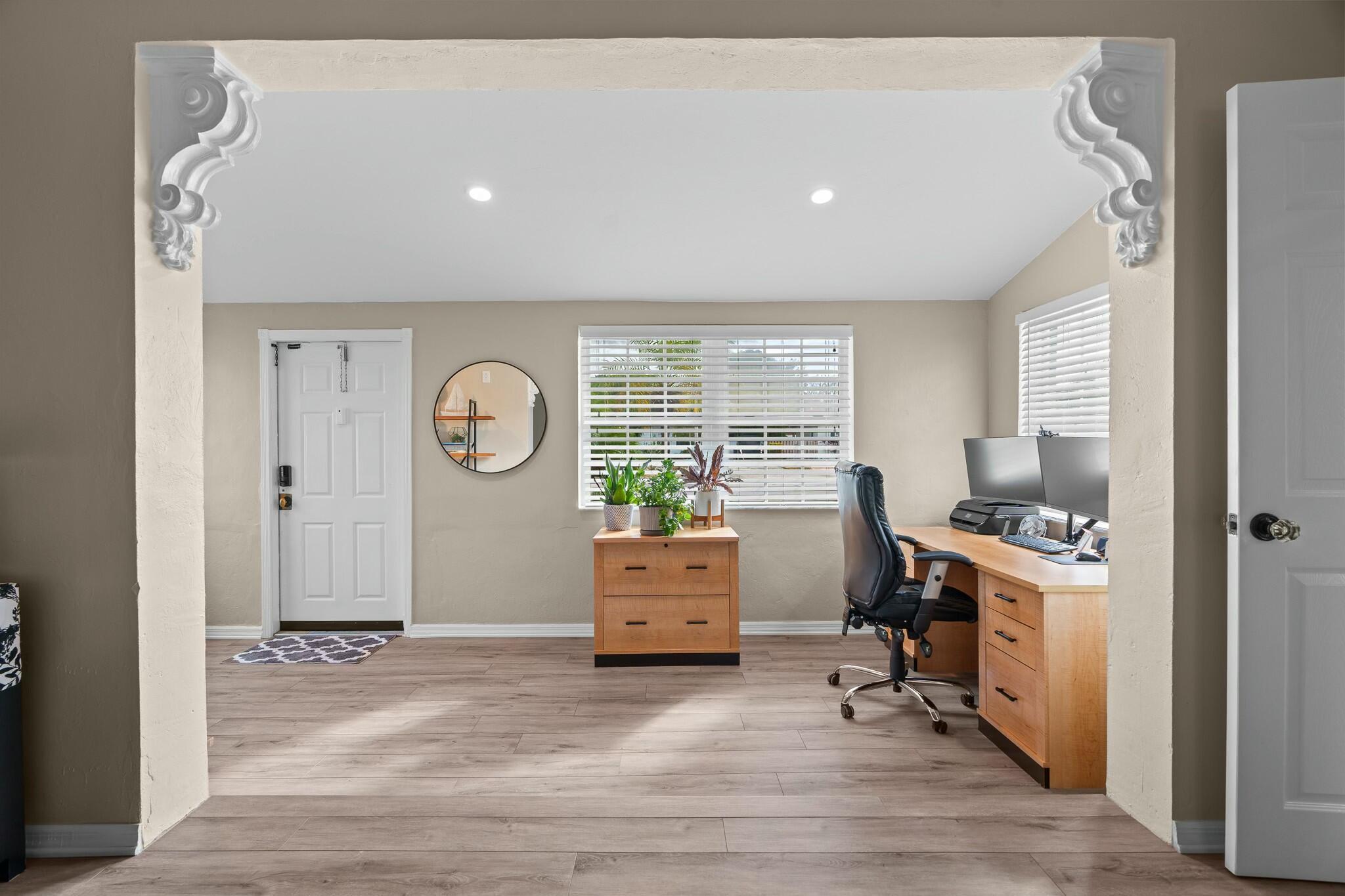 Location, location. Walk into this charming 4-bedroom, 2 bath, saltwater pool home situated only three short blocks from the Intracoastal in SOSO WPB's hottest area. Stunning remodel. High end kitchen, Soapstone countertops and SS appliances, self-closing draws, tankless hot water heater. Remodeled bathrooms. Entire home is light and bright. New features of the home are A New Roof 2024, New AC 2024, New Salt-Water Pool 2024, New Vinyl Flooring 2024, New Lighting throughout home. Nest thermostat. Ring doorbell. New Ceiling fans. New vinyl fencing along with sound system for pool area. New washer /dryer. Recently painted exterior and interior of home. All major items have been taken care of in this home. Two zone central AC. All windows and doors are either impact glass or hurric