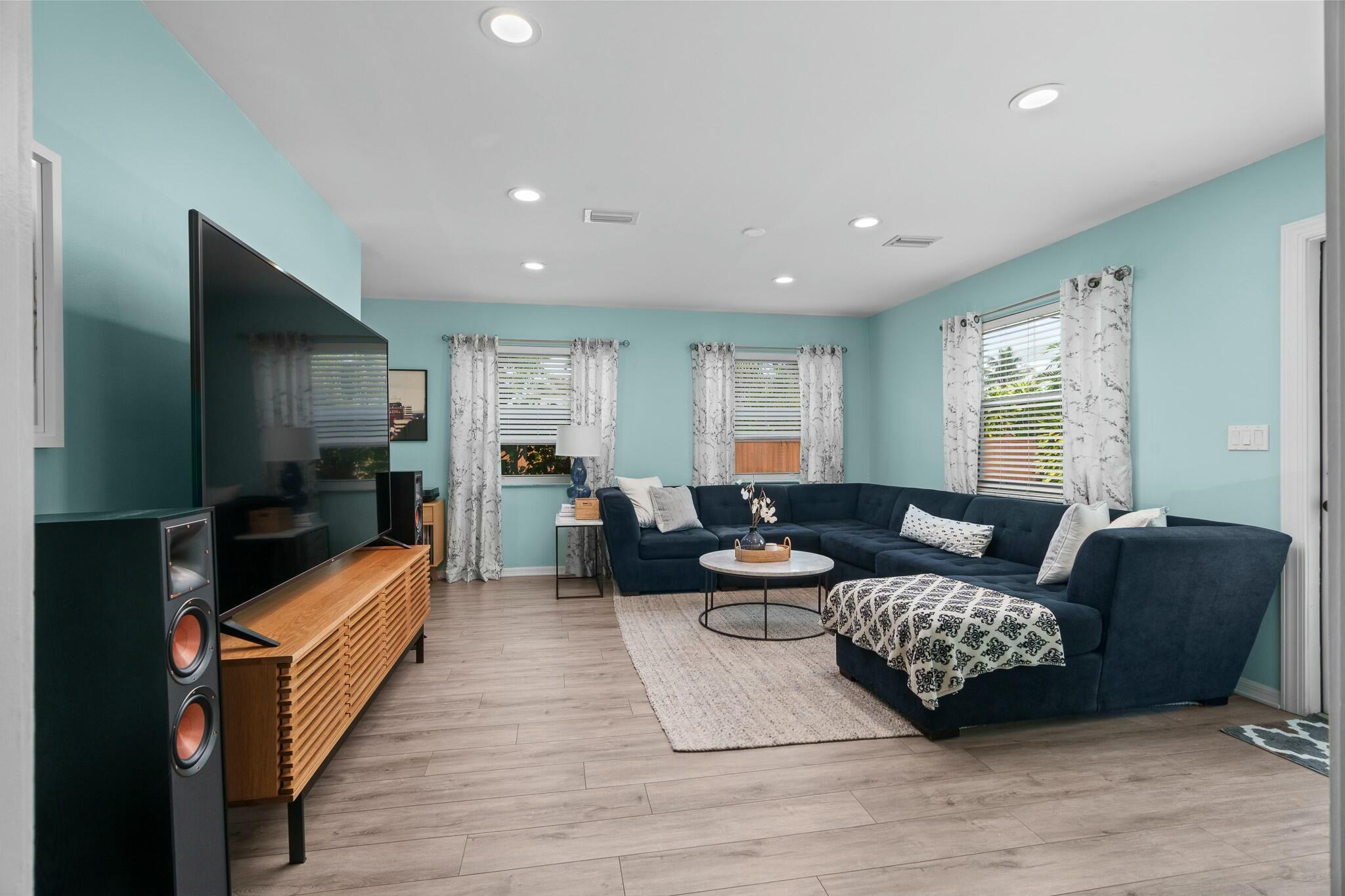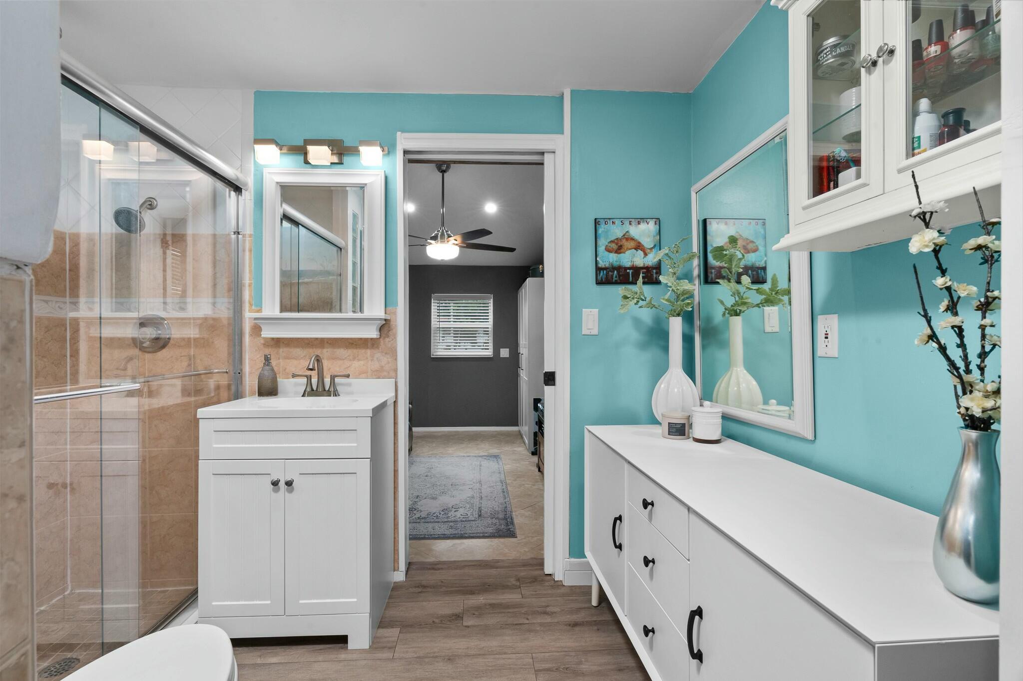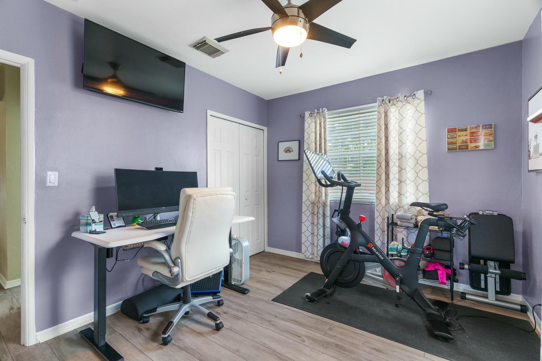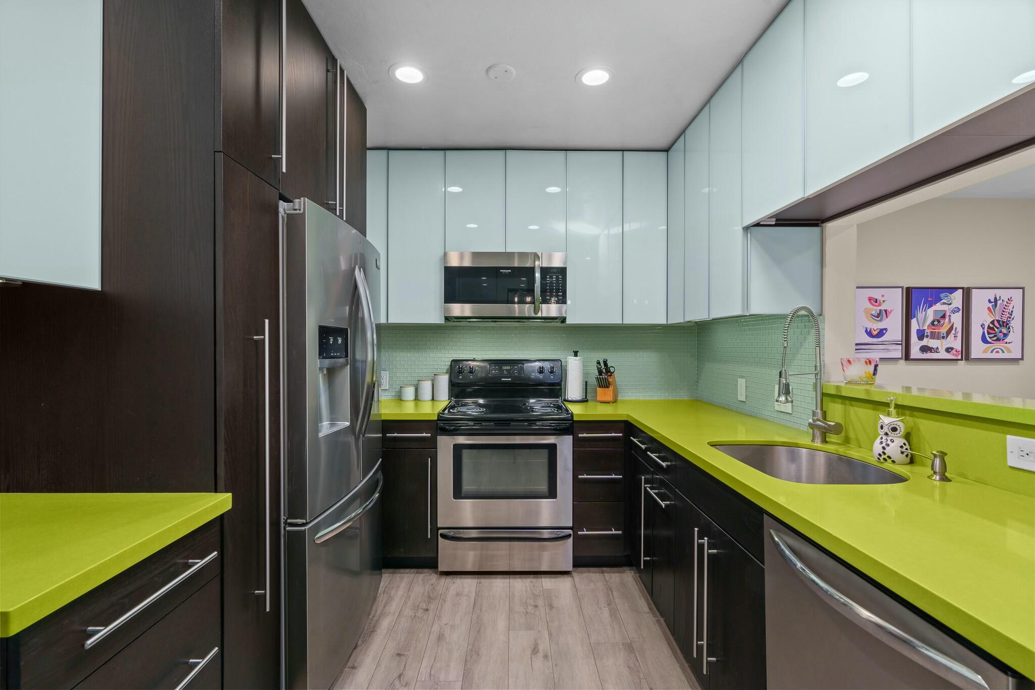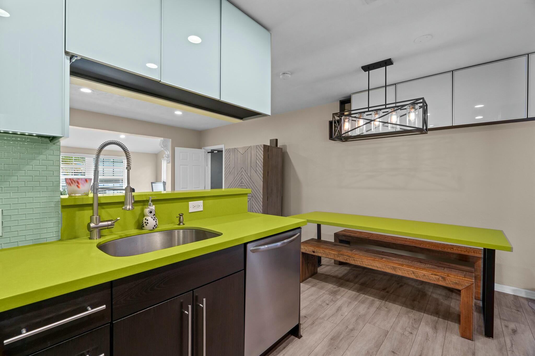 Location, location. Walk into this charming 4-bedroom, 2 bath, saltwater pool home situated only three short blocks from the Intracoastal in SOSO WPB's hottest area. Stunning remodel. High end kitchen, Soapstone countertops and SS appliances, self-closing draws, tankless hot water heater. Remodeled bathrooms. Entire home is light and bright. New features of the home are A New Roof 2024, New AC 2024, New Salt-Water Pool 2024, New Vinyl Flooring 2024, New Lighting throughout home. Nest thermostat. Ring doorbell. New Ceiling fans. New vinyl fencing along with sound system for pool area. New washer /dryer. Recently painted exterior and interior of home. All major items have been taken care of in this home. Two zone central AC. All windows and doors are either impact glass or hurric