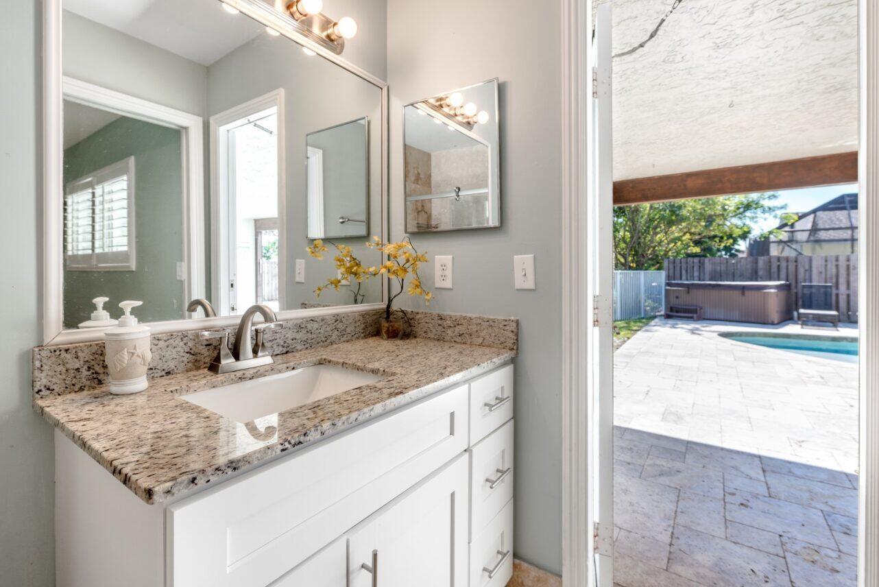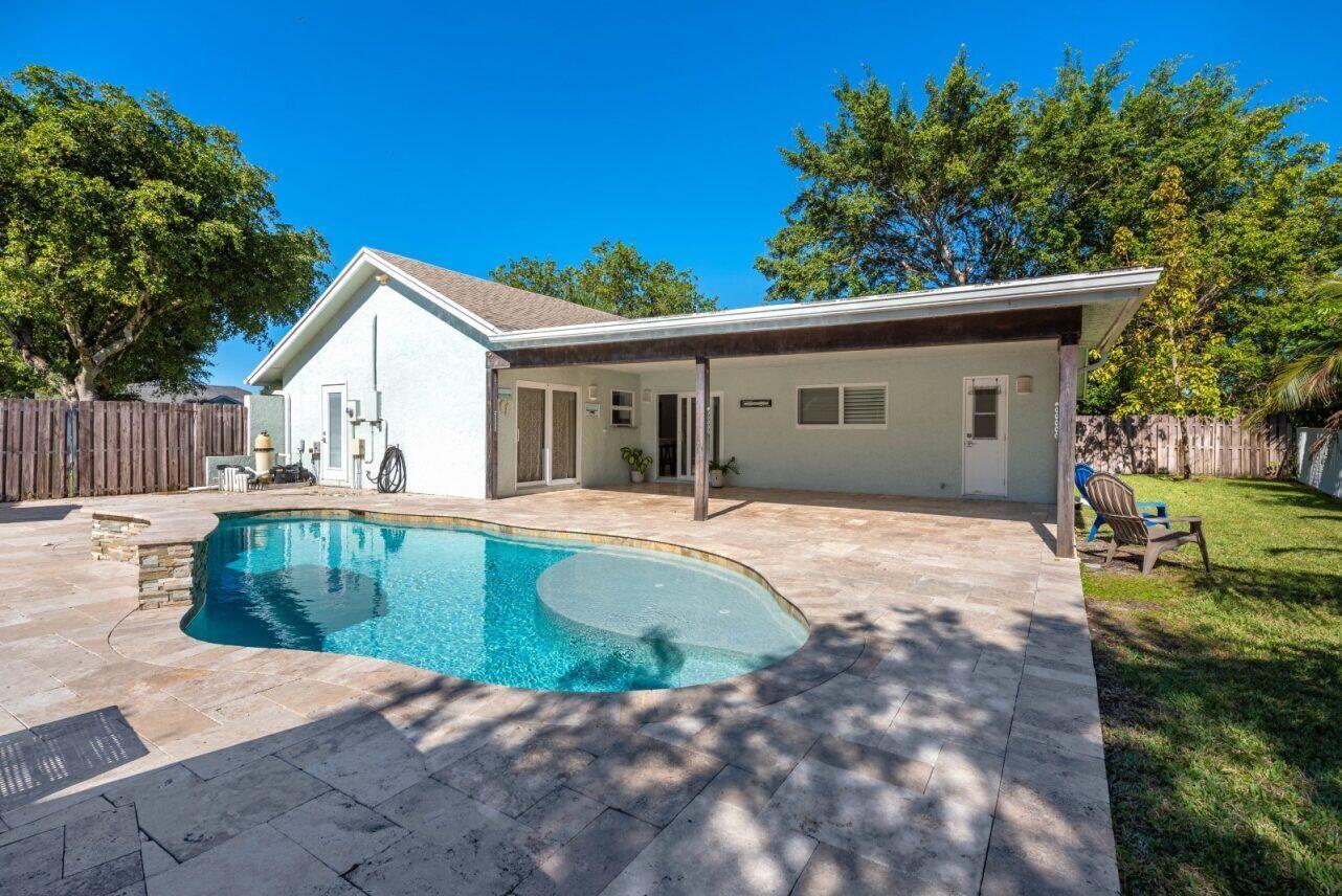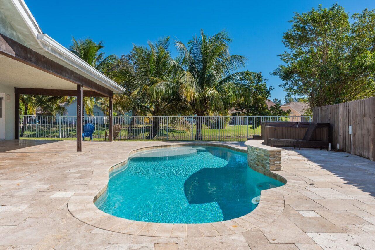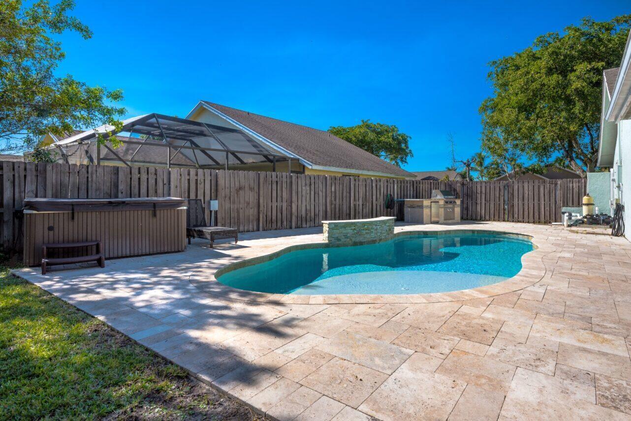 Motivated seller priced reduced for a quick sale!!! Fantastic cozy home with ALL IMPACT WINDOWS, travertine flooring throughout in one of the most desirable neighborhoods in West Boca. Perfect home for entertaining with a lagoon shape pool, travertine deck, outside BBQ and jacuzzi. Home features 3 bedrooms 2 bathrooms and an open concept updated kitchen with stainless steel appliances and granite tops. Renovation was done few years ago and priced to sell AS IS with the right to inspect. Located in one of the best school zones in Boca Raton, this beautiful home is in a cult de sac and has a peaceful lake view. HOA fee is less than $100 per month!!!