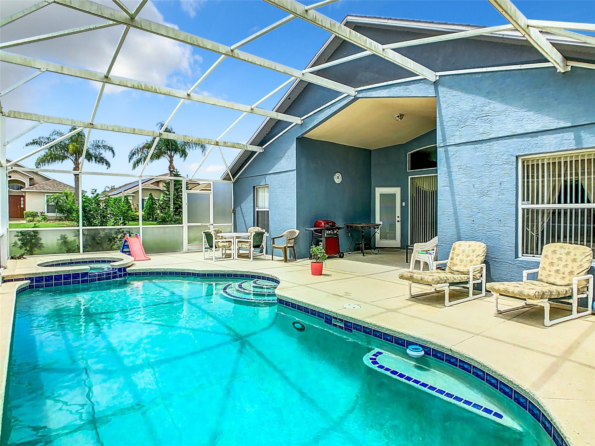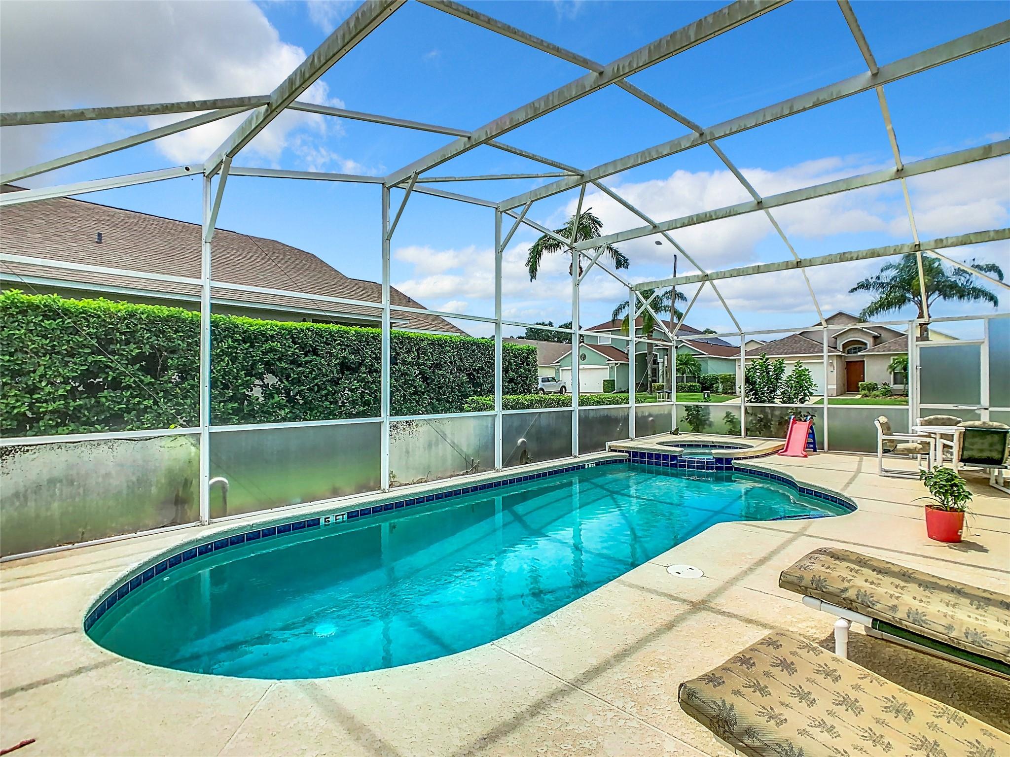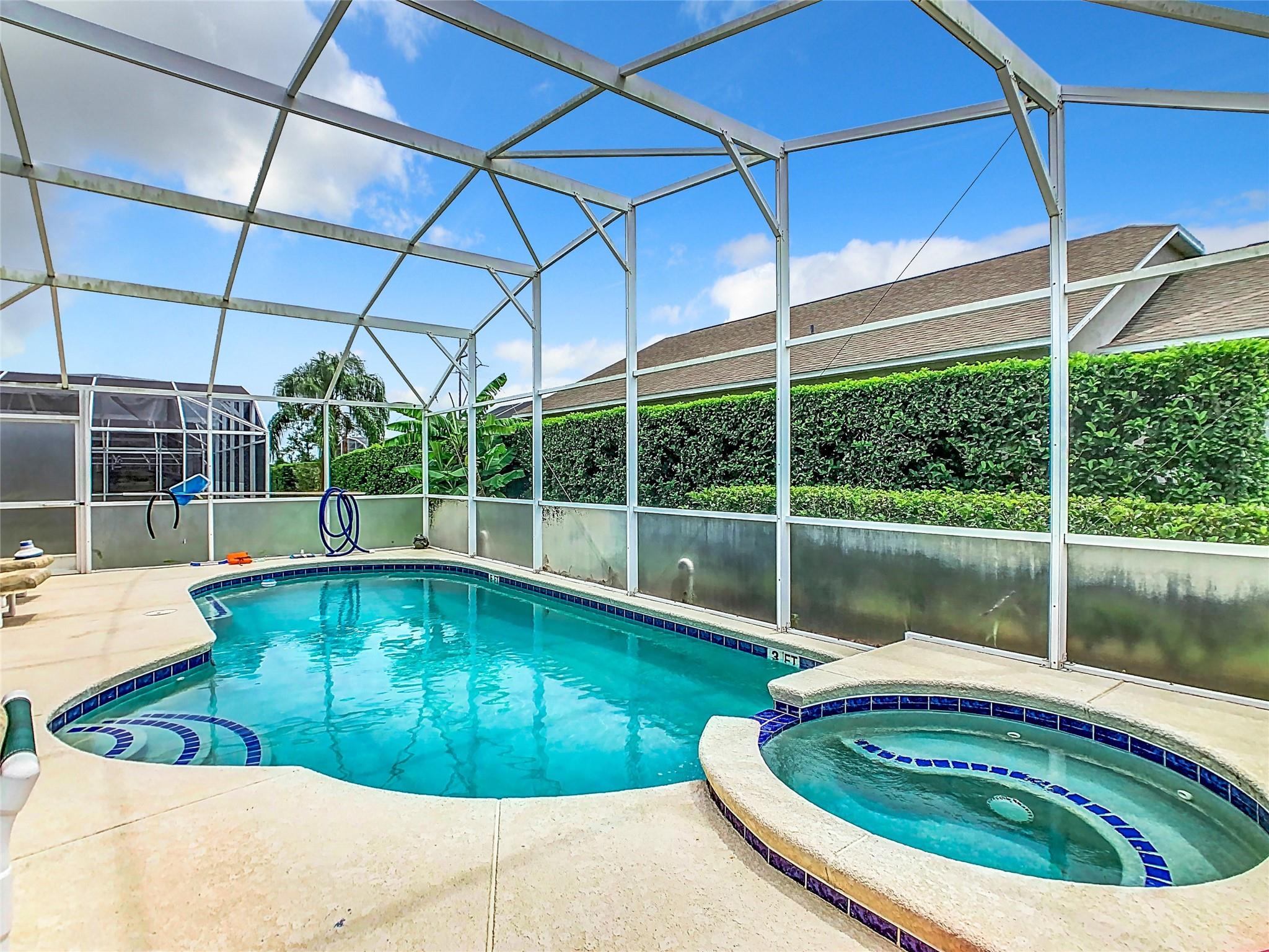Welcome to your pool home! The property sits on a corner lot, featuring 4 Beds and 3 Bath, it includes two master ensuite bedrooms, there are also two bedrooms and a third full bathroom. The open floor plan boasts a spacious living room and a separate dining area, ideal for family gatherings and entertaining. The kitchen offers plenty of space for cooking and storage. Outside, enjoy the inviting pool and ample pool deck. Newer pool heater, Roof (2017), water heater (2023) With its prime location, this property offers everything you need for comfortable living. The community allows short-term rentals, making this property an excellent investment opportunity. Whether you're looking for a primary residence, a vacation home, or an investment property, this home has it all!
