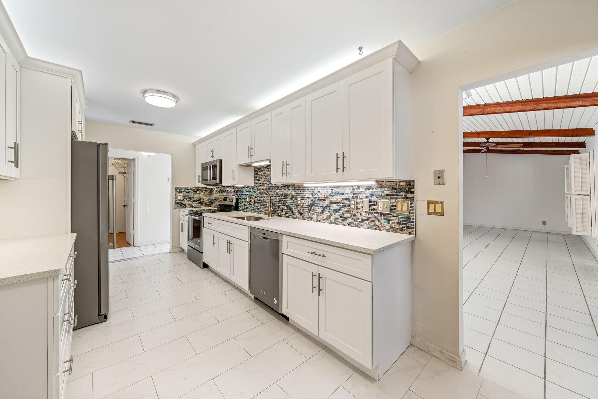 Discover comfort and convenience in this charming 2-bed, 2-bath home, with potential for a 3rd bedroom, on a corner cul-de-sac lot in a vibrant 55+ community.The updated kitchen (2019) features quartz countertops, white shaker cabinets, and stainless steel appliances. Hurricane impact windows (2012), a 2023 AC, 2017 water heater, and 2020 washer/dryer offer peace of mind. The master bathroom is updated, and the enclosed sunroom and screened patio provide versatile spaces.Located in a prime central Boca location, the 62-home Colony Woods community has a heated pool, the HOA fees include basic cable, landscaping, and biannual roof cleaning. is close to I-95, the Turnpike, Town Center Mall, and more--perfect for an active lifestyle.
